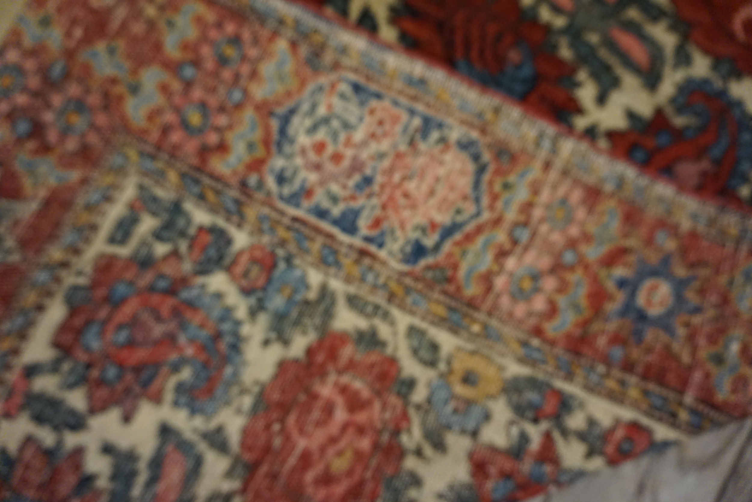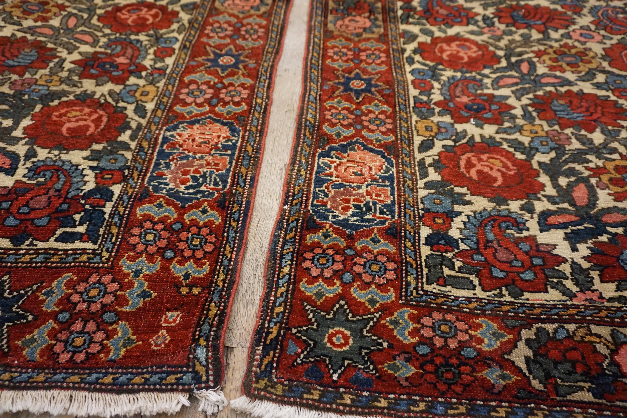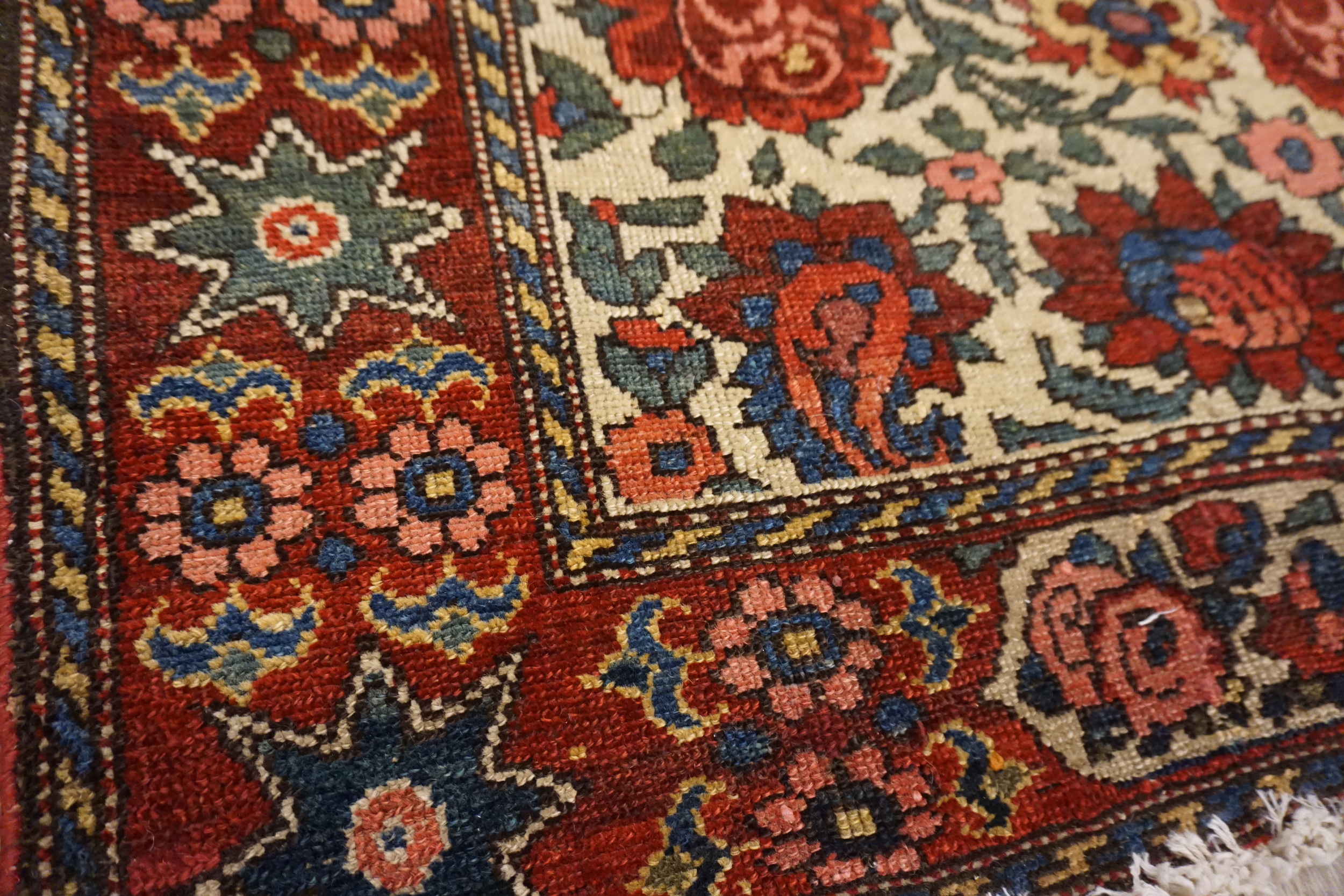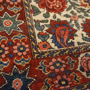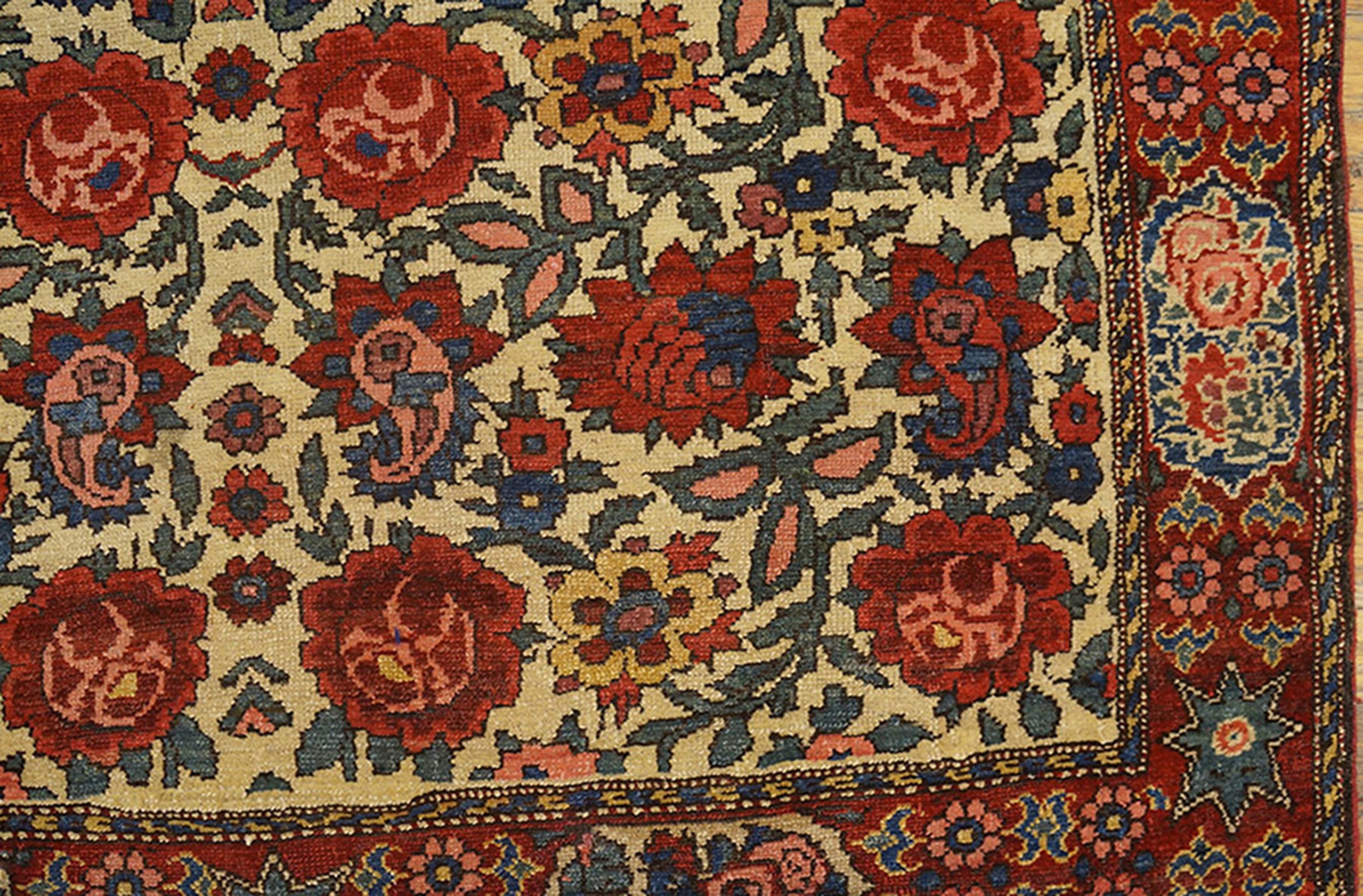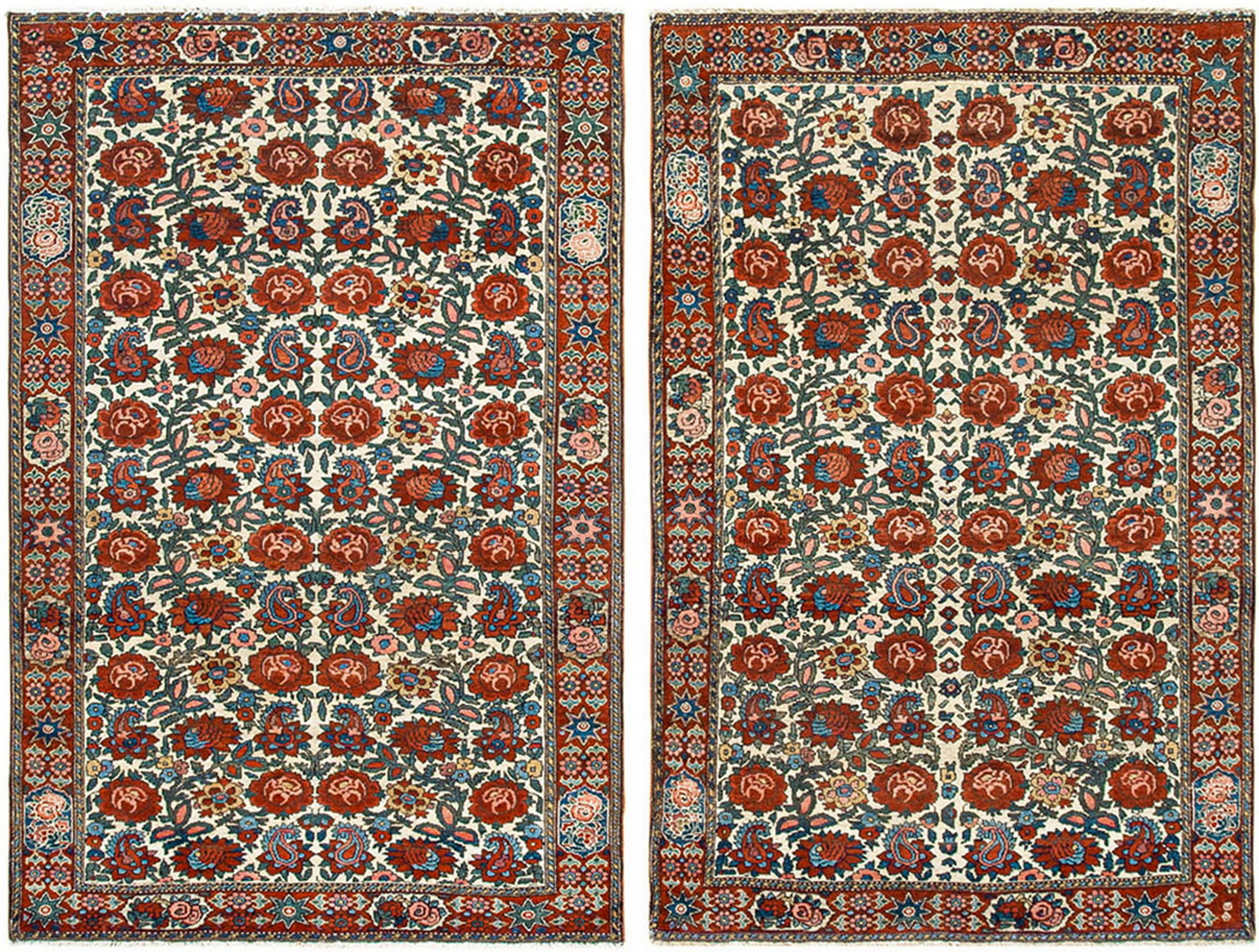 Perfect for entryways, bedside spaces, reading nooks, or layered over larger area rugs, this pair brings pattern, color nuance, and classic appeal to a variety of interior settings. Whether used together to unify multiple zones or individually to punctuate separate areas, these ivory floral Bakhtiari rugs add timeless elegance and decorative character to homes of many styles.