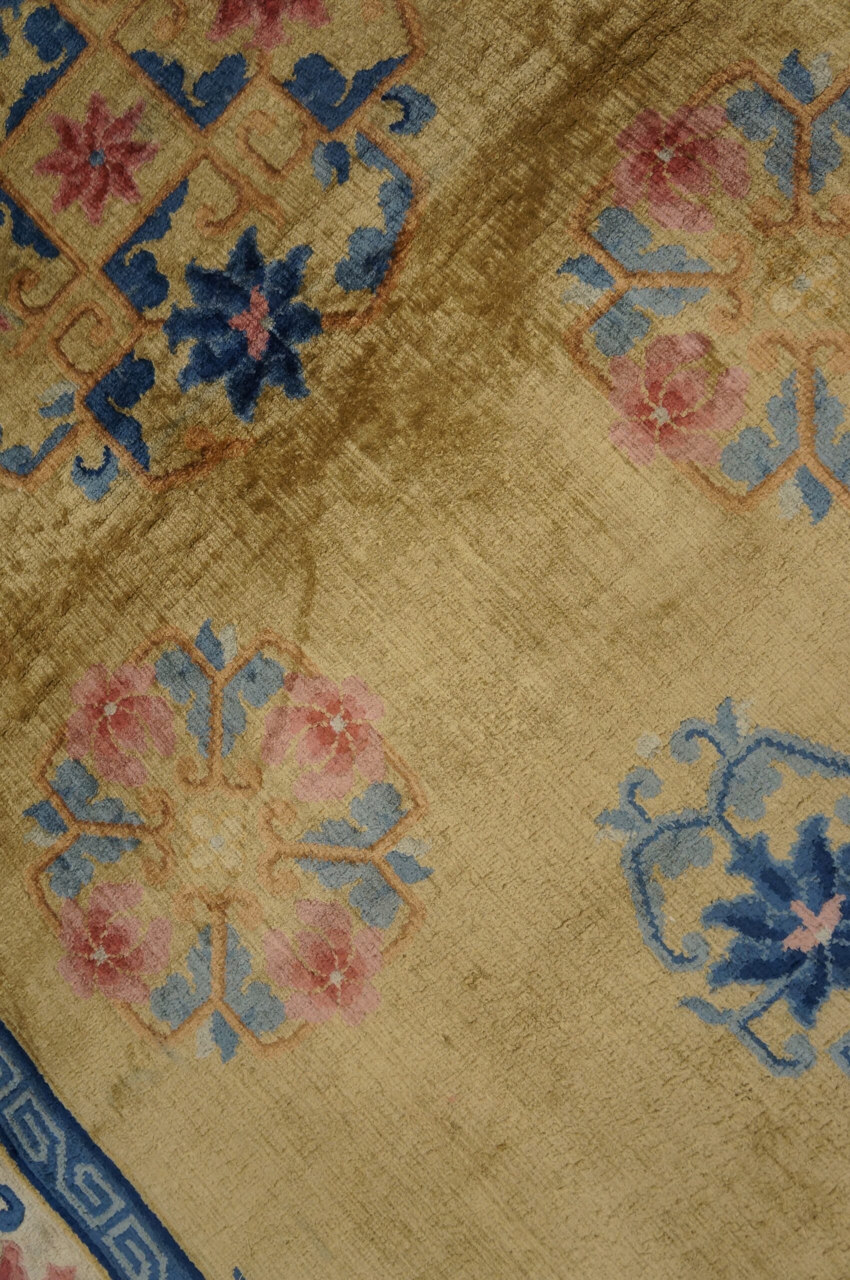Reflecting the transitional design sensibilities of the 1940s, this piece balances traditional East Asian iconography with a slightly simplified, modern palette. The density of the silk knotting ensures both durability and an unparalleled softness underfoot, offering both historical depth and sophisticated visual warmth.