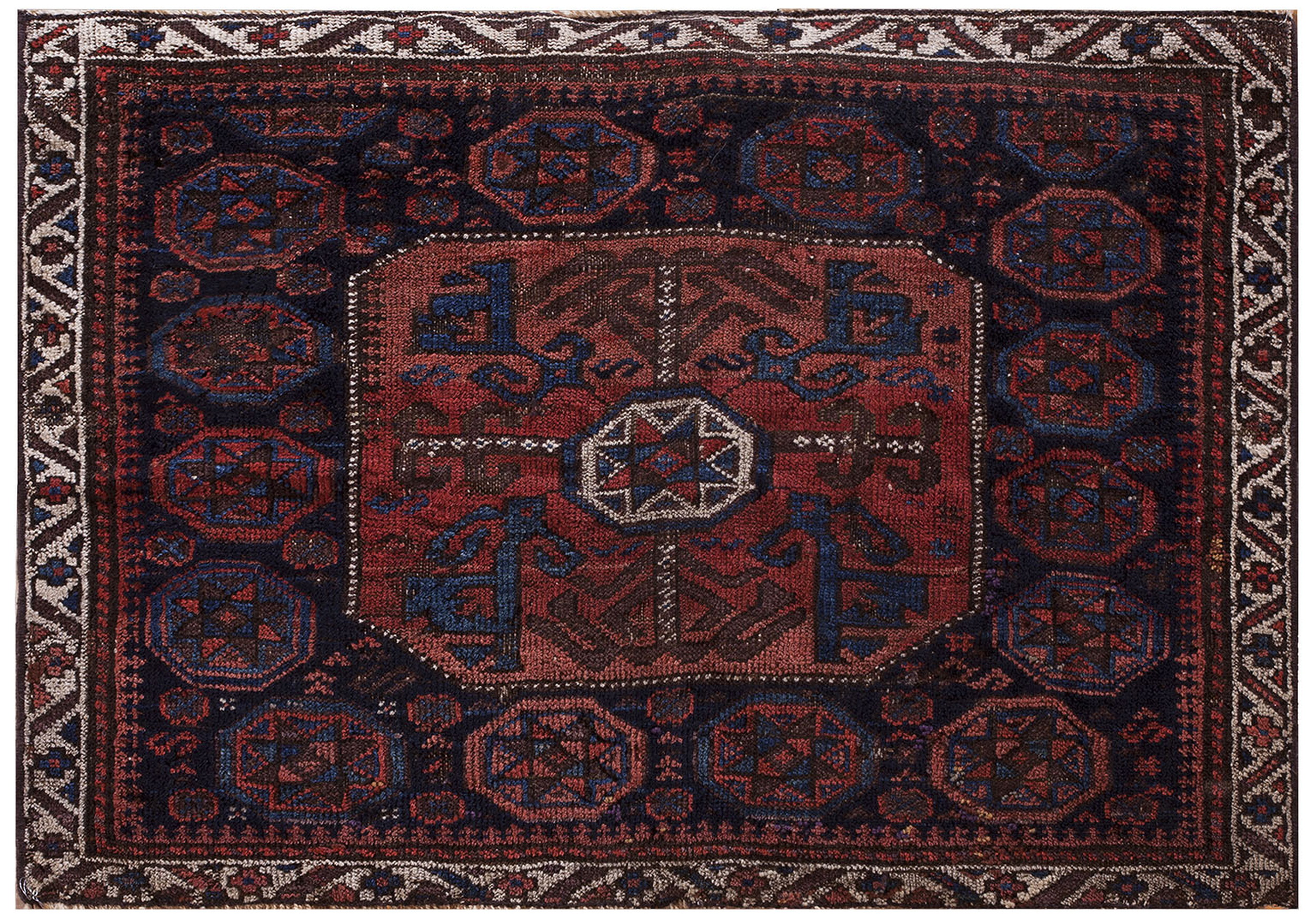 Antique Baluch Persian Blue 1900s Rug, Circa Date: 1900s. This captivating example of nomadic weaving exemplifies the rich tradition of baluch rugs. Woven in the early 20th century, this piece showcases the characteristic deep coloration and tightly knotted structure prized by collectors of tribal textiles.