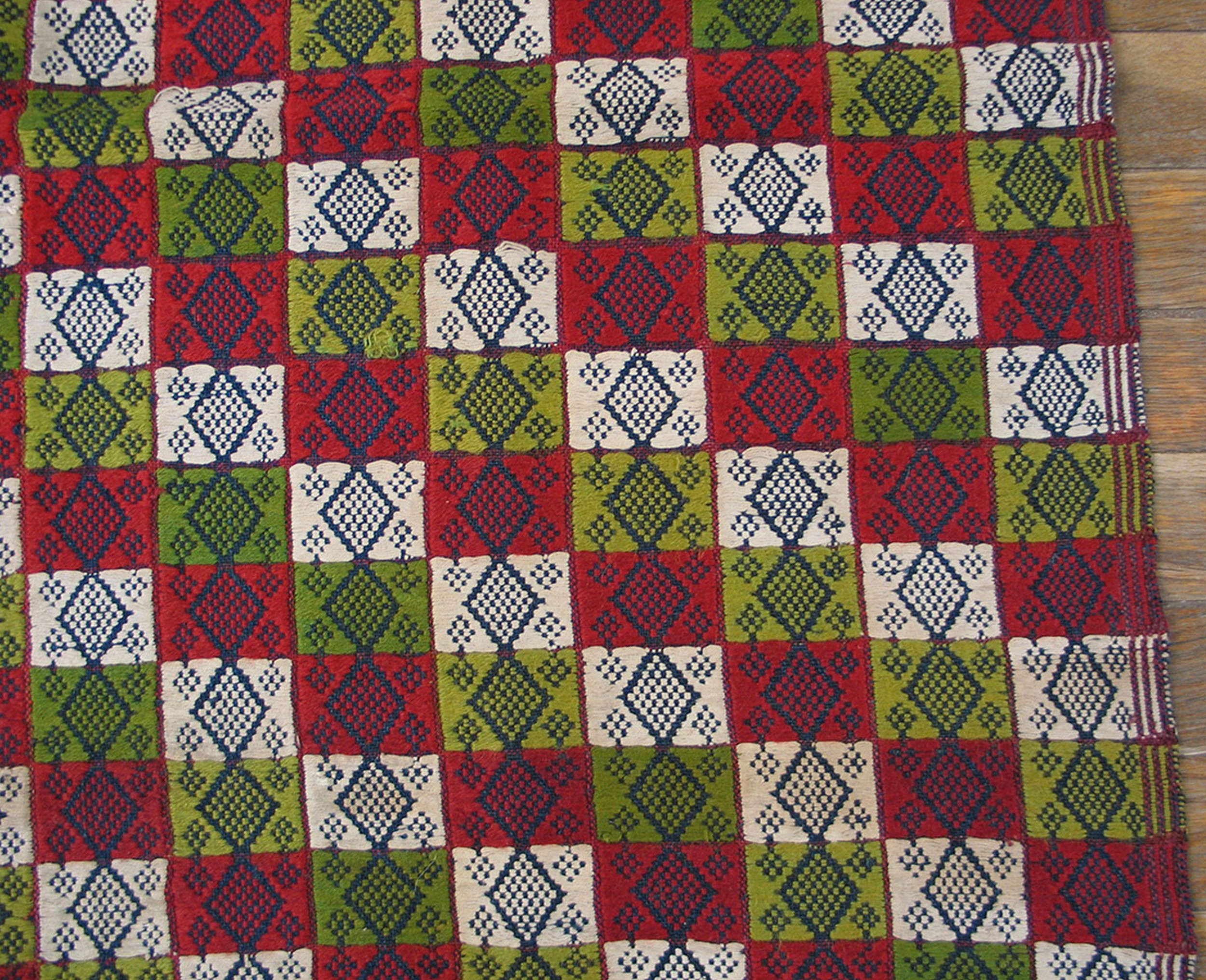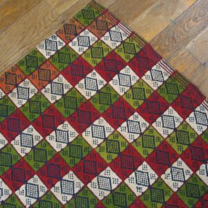Technically, this kilim is a Slit-Weave Flat-weave, characterized by its crisp, reversible surface and lightweight handle. The “slits” are intentional gaps created between different color blocks, which provide the tribal design rug with its sharp, clean geometric definition. The wool is hand-spun and high-altitude, giving the flat weave rug a rugged, organic texture that is both durable and tactile. Unlike modern reproductions, the handle is supple and “cloth-like,” allowing it to be used as a floor covering, a wall hanging, or even a decorative table throw.