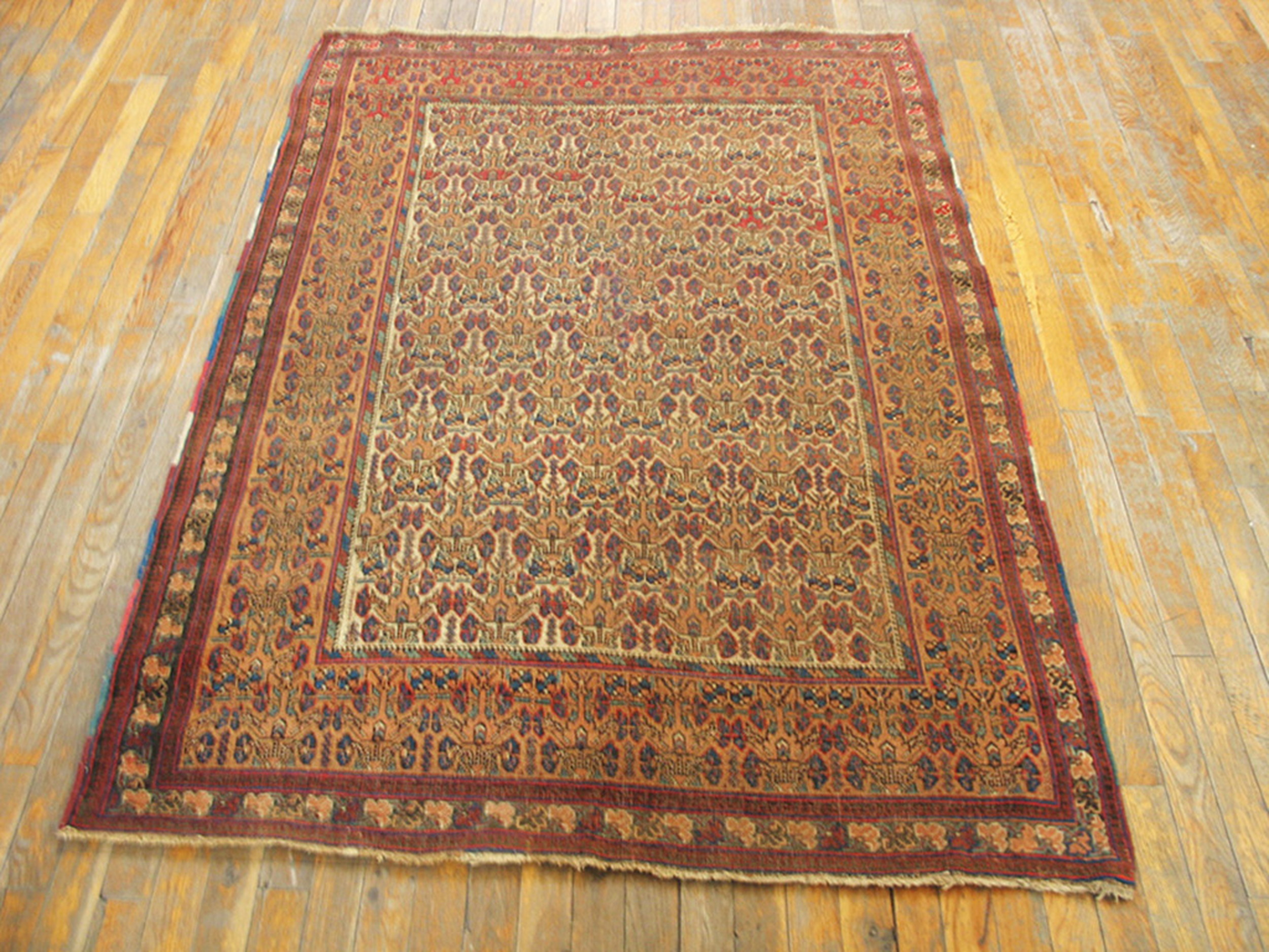 Antique Afshar Persian Ivory 1880s Rug, Circa Date: 1880s. This exceptional Afshar weaving represents the finest tribal artistry from the late Qajar period. Afshar pieces are highly sought after among collectors of antique rugs for their robust construction and distinct, often geometric, design vocabulary.
