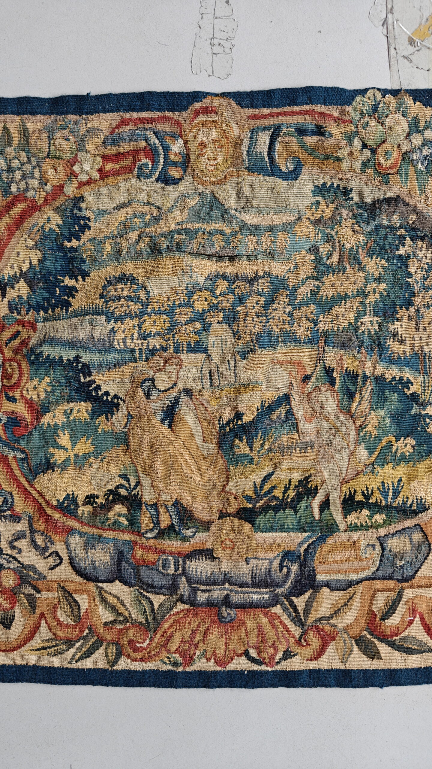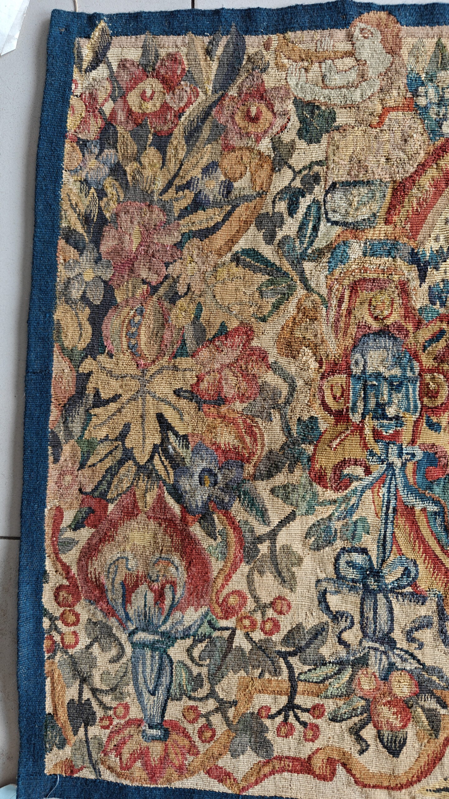 Dating back to the mid-17th century, this tapestry fragment represents an extraordinary survival, retaining remarkable clarity and structure despite its venerable age. Such historically significant textiles are coveted worldwide by collectors seeking authentic European antique rugs that transcend mere decoration to become historical artifacts.