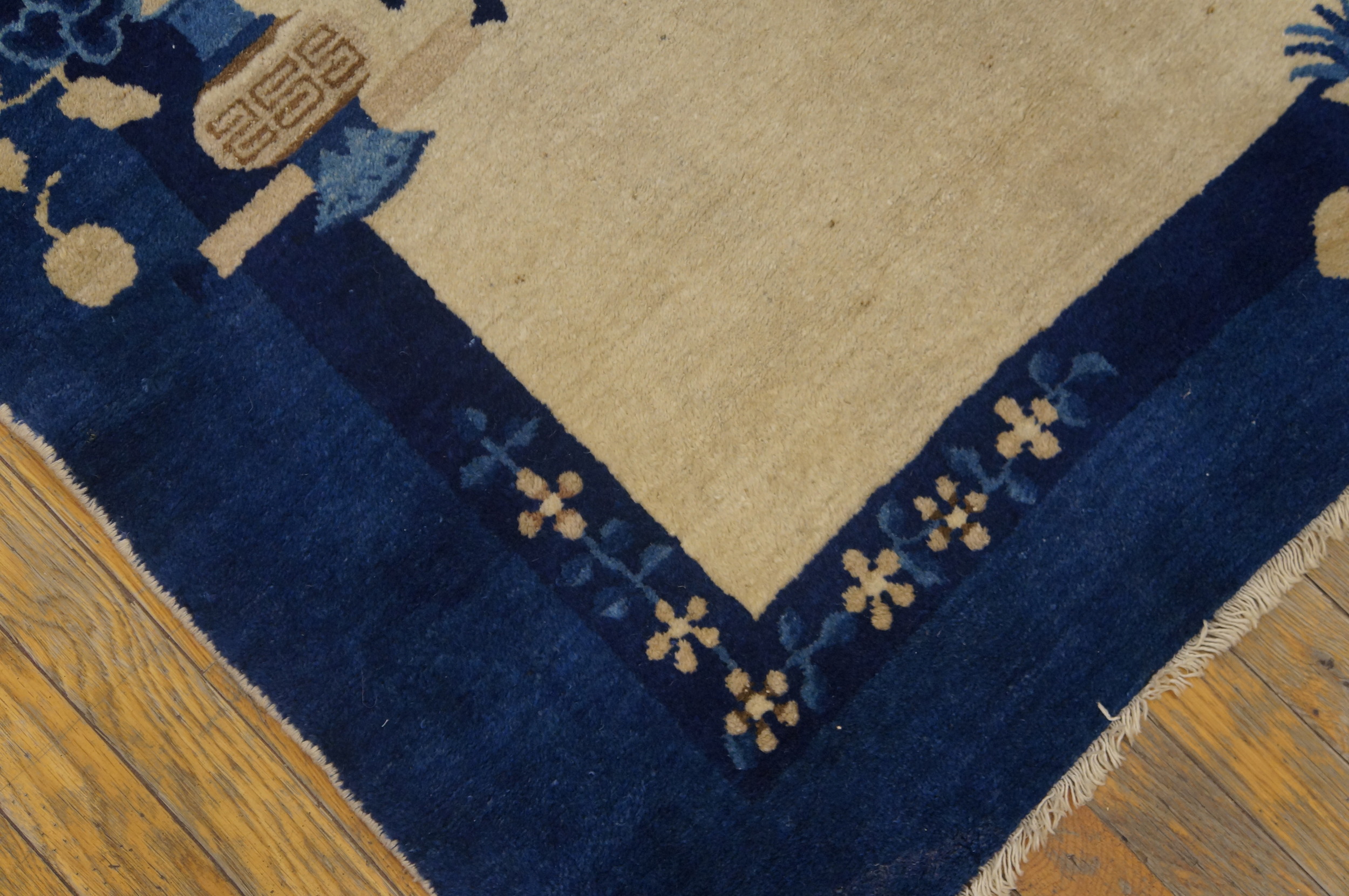 Knotted Antique Small Scatter Size Wool 1900s Ivory Chinese Rectangle – Peking Rug, Country of Origin: China, Circa Date: 1900s. This exquisite piece exemplifies the refined aesthetic of the early 20th century. Characterized by its open field and carefully balanced motifs, this particular example is a classic peking Rug, showcasing the sophisticated weaving traditions of the capital region.