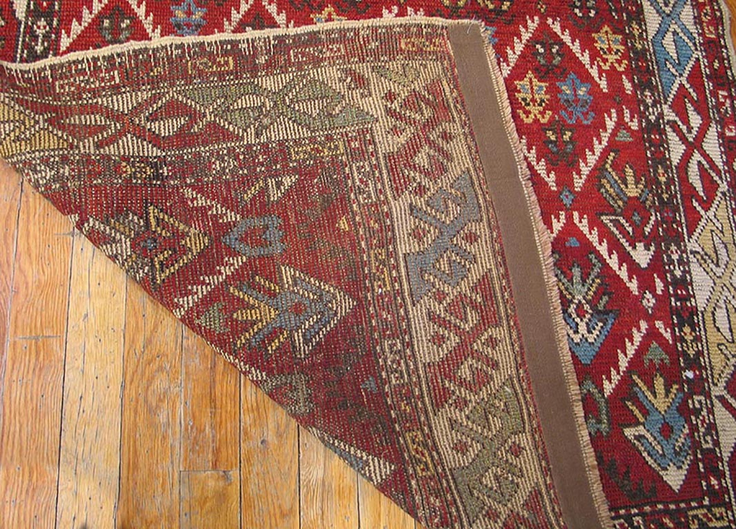 Antique Kurdish Persian Coral 1900s Rug, Circa Date: 1900s. This compelling piece of antique rugs showcases the robust and highly saturated dyes characteristic of early 20th-century tribal production, centered on a deep, rich field of coral color. The intensity of the madder-based palette is balanced by strategic use of ivory, pale blue, and soft yellow highlights.