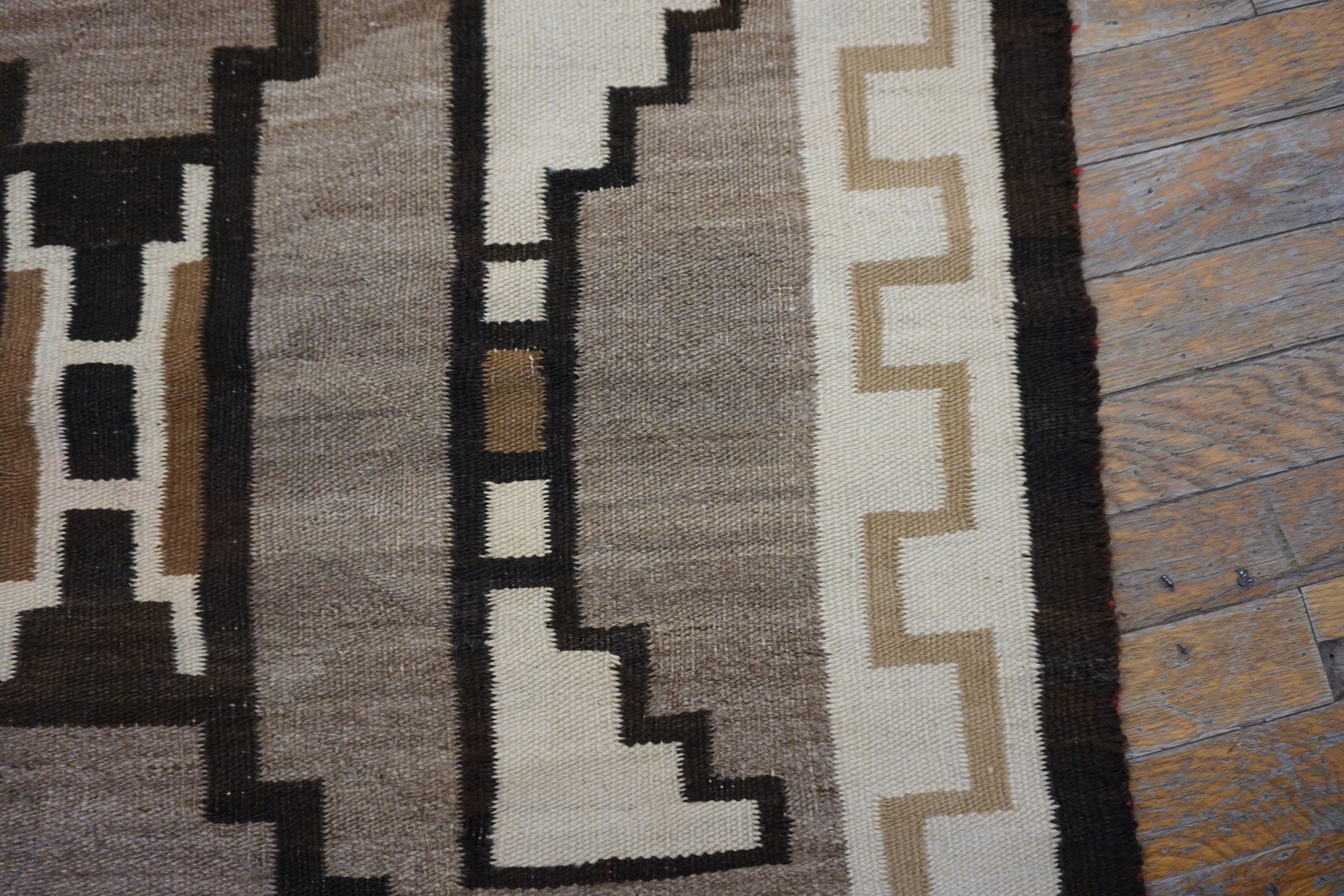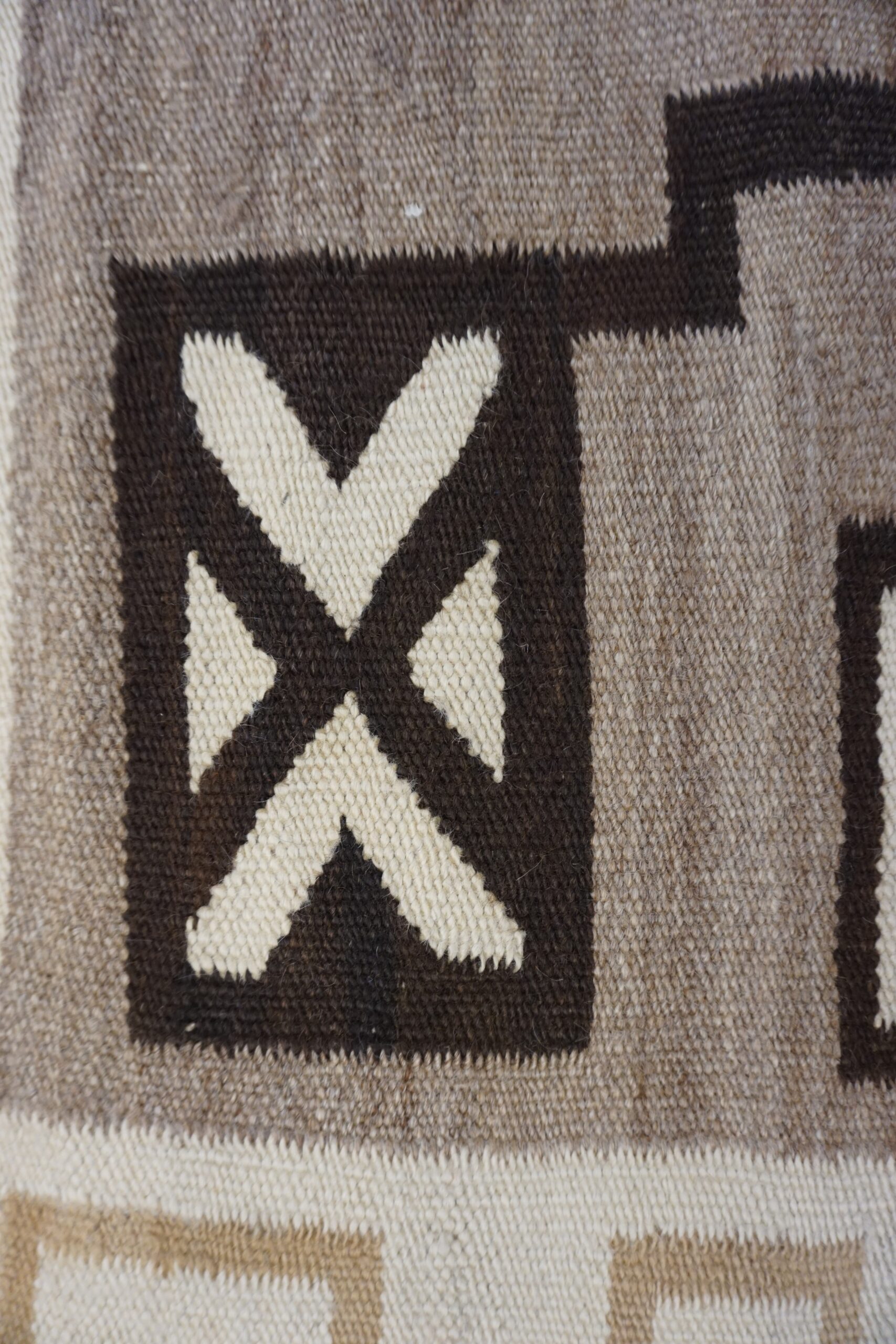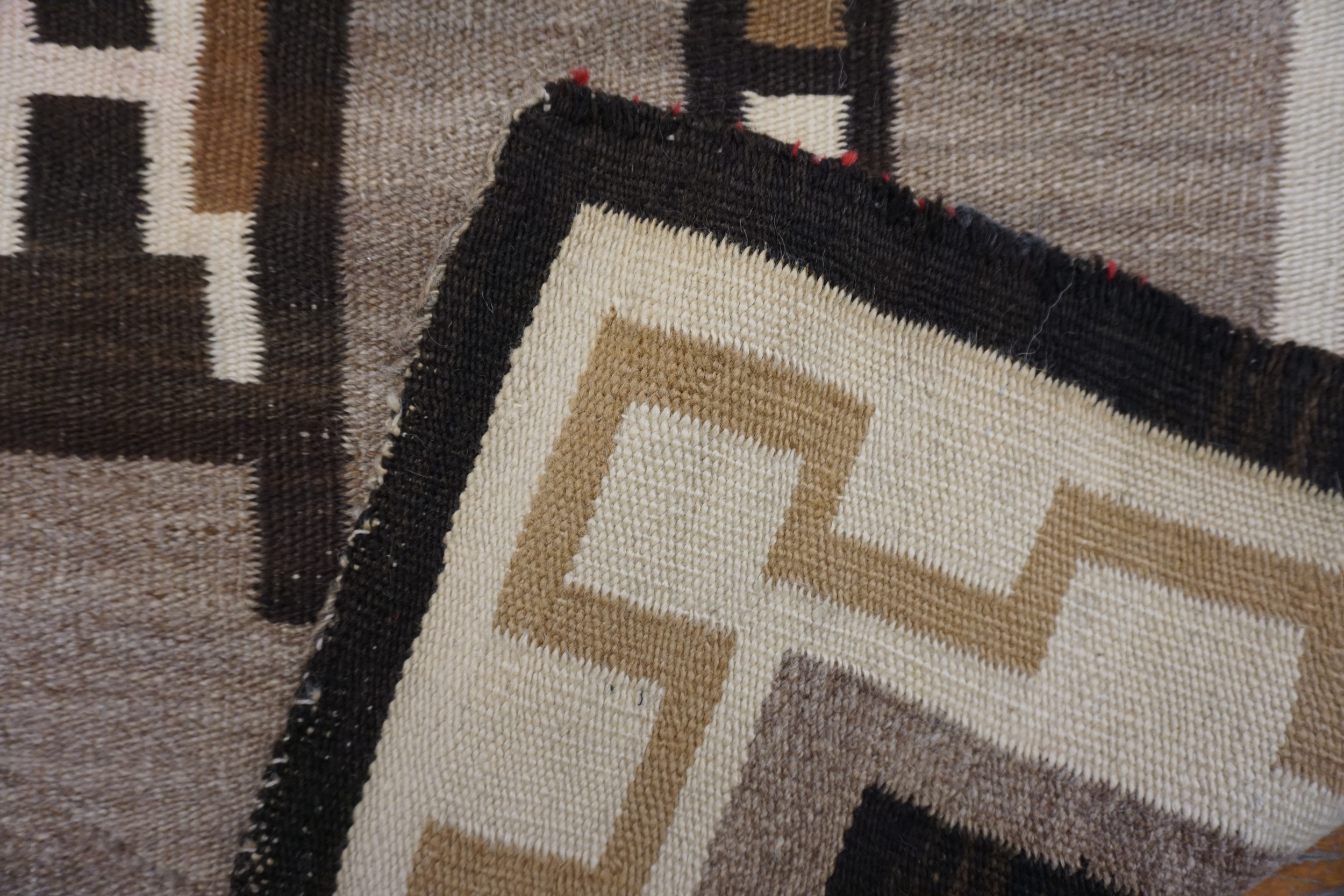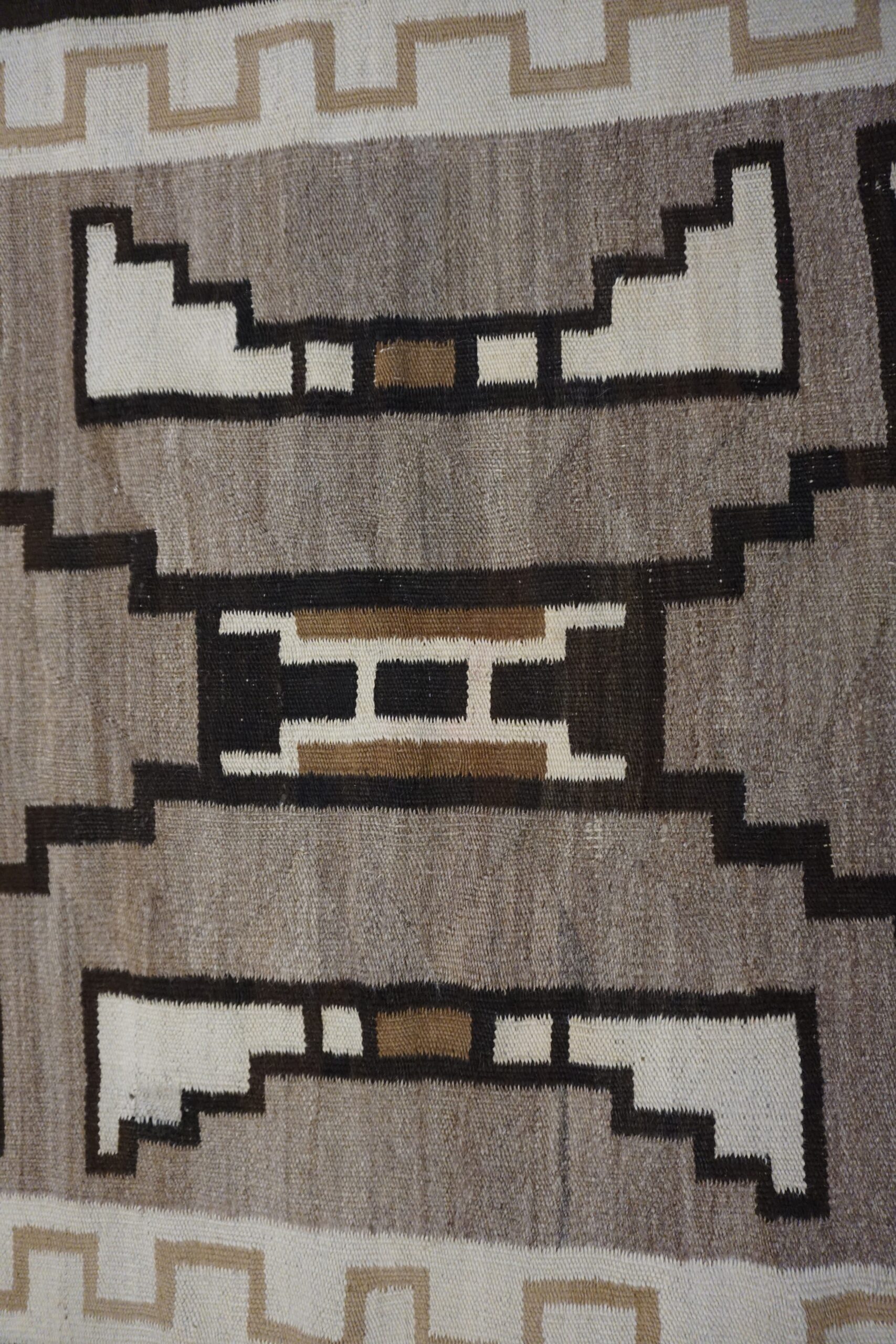 As a genuine artifact of Southwestern weaving history, this Navajo textile offers both decorative impact and cultural significance. Its excellent preservation and strong graphic design ensure it remains a compelling addition to any collection of important antique rugs or folk art.