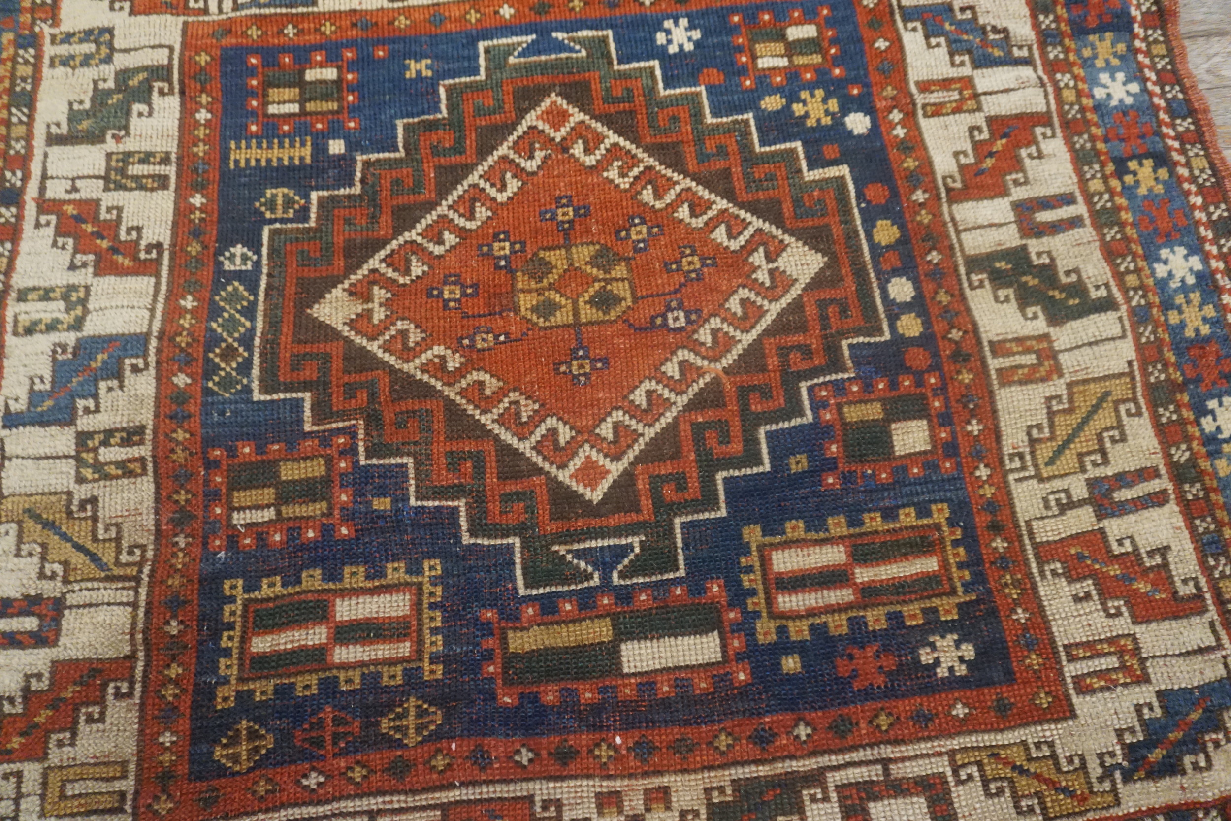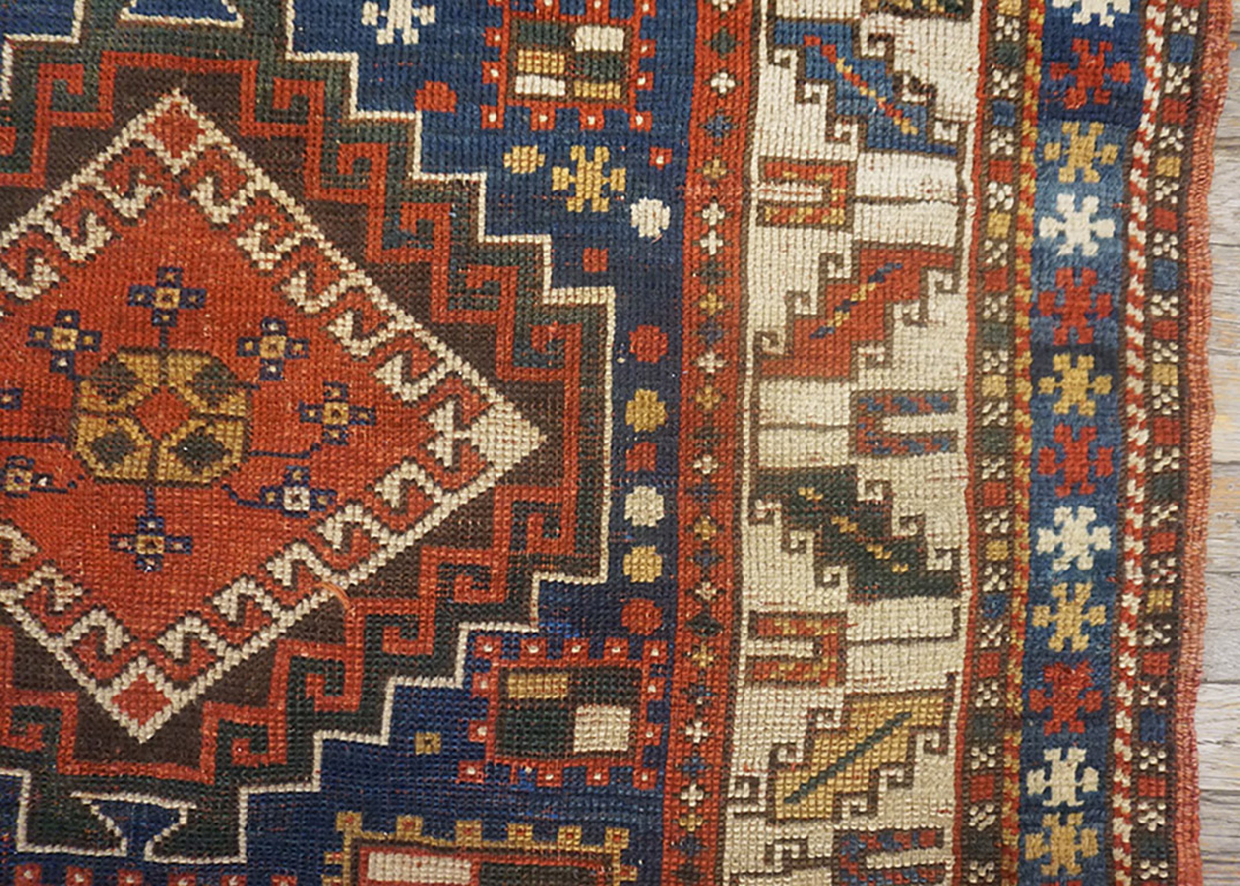 Antique Caucasian Russia Blue 1890s Rug, Circa Date: 1890s. This exceptional piece is a vibrant example of nomadic artistry, representing the finest traditions of antique rugs from the Caucasus region. Its dense knotting and powerful use of natural dyes speak to its enduring quality and historical significance, capturing the rugged, authentic spirit of late 19th-century weaving.