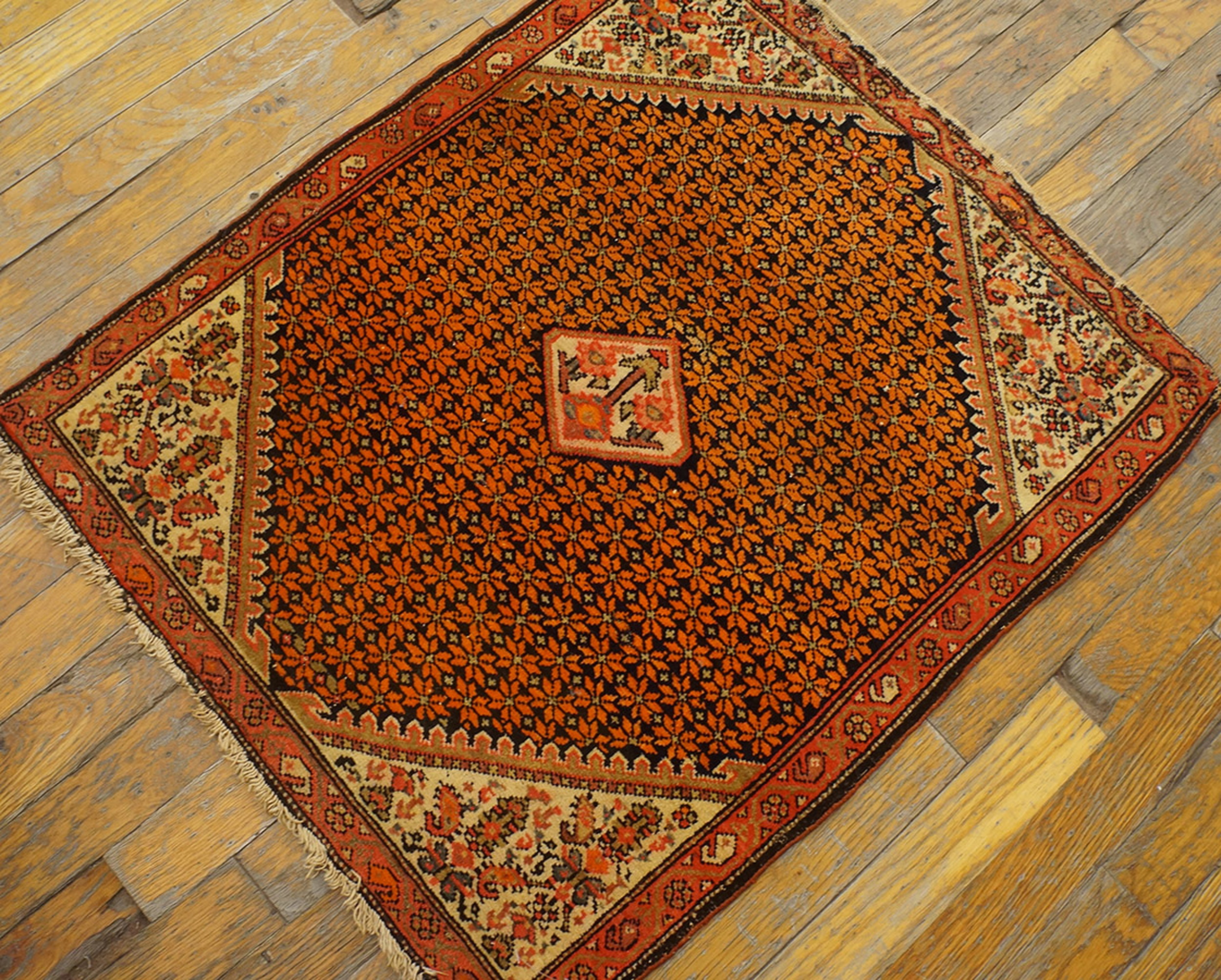 Small Square Shape Antique Persian Malayer Wool Pile Throw Rug