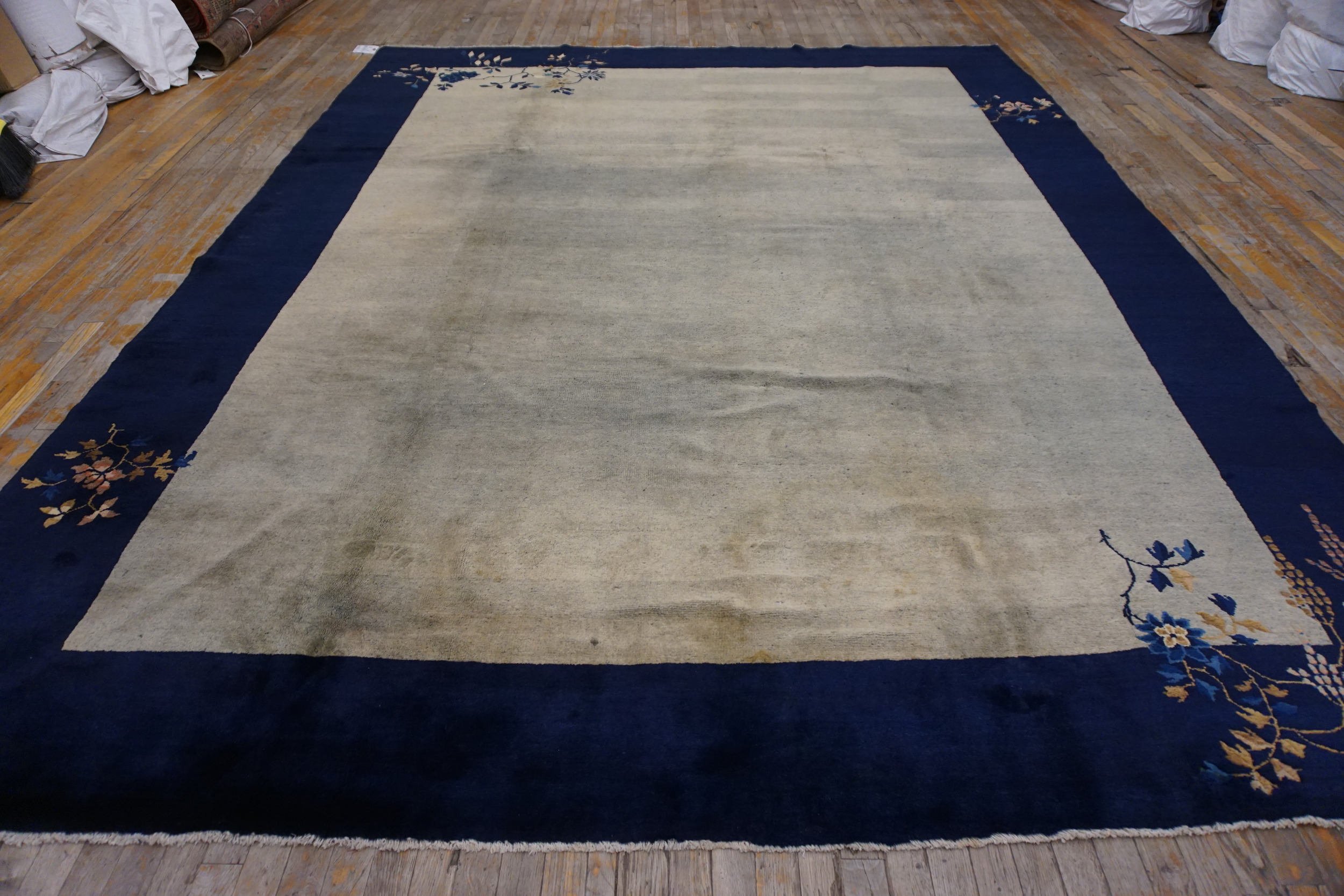 The generous proportions of this piece suggest it was intended for a grand salon or formal dining space, making it an ideal choice among room size rugs for contemporary luxury interiors. Its excellent condition and timeless design ensure it remains a significant decorative asset, embodying the quiet luxury and masterful craftsmanship of 1920s China.