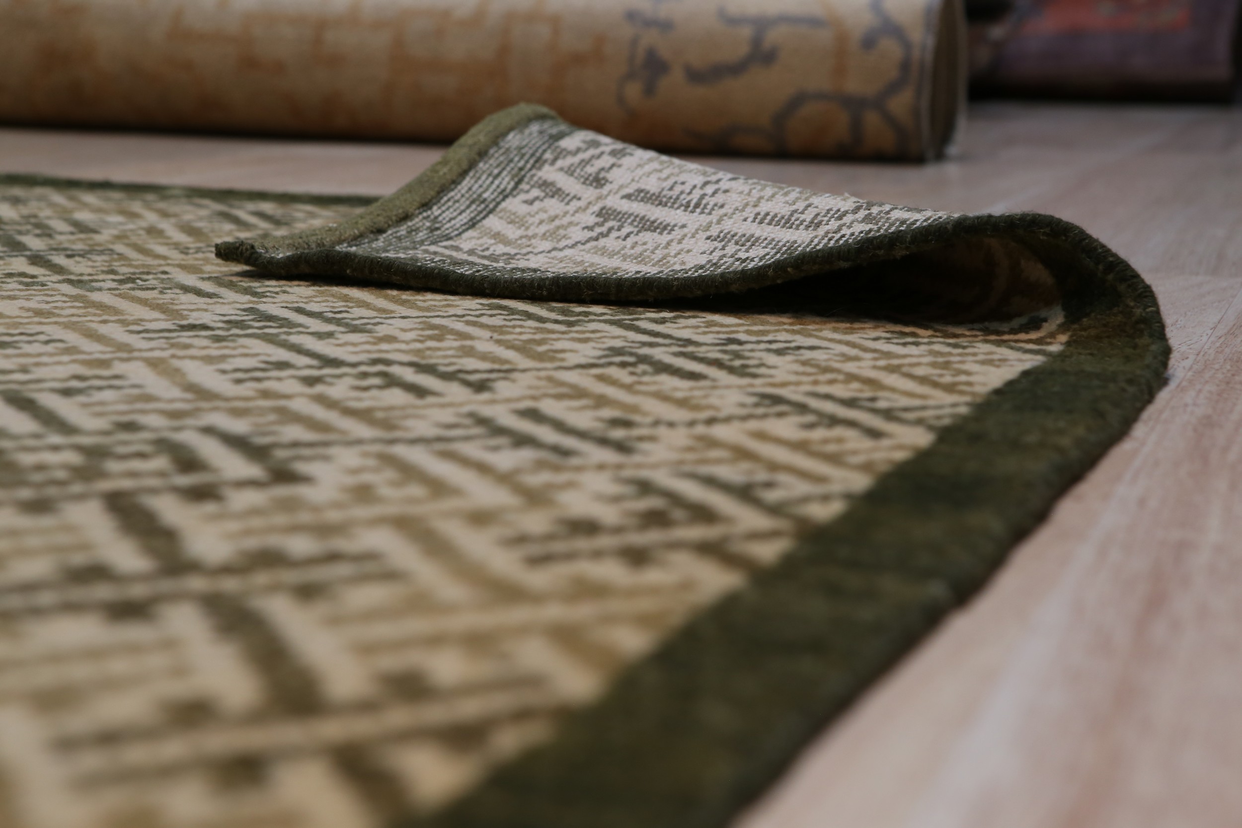 While named for its inherent strength, the palette features a nuanced interplay of warm beige, taupe, and deep olive tones, creating a grounding presence in any interior scheme. The dense, interlocking fretwork design provides visual movement without overwhelming the space, offering a subtle nod to transitional style. Explore our full collection of black color rugs for pieces that anchor a room with dramatic depth.