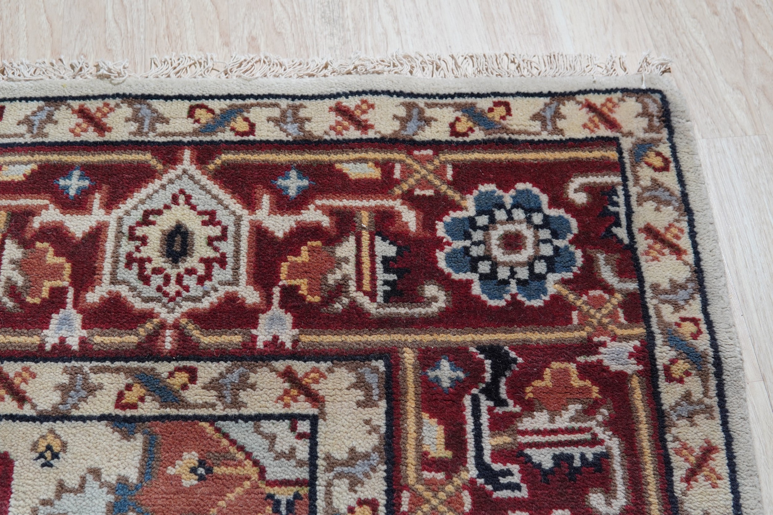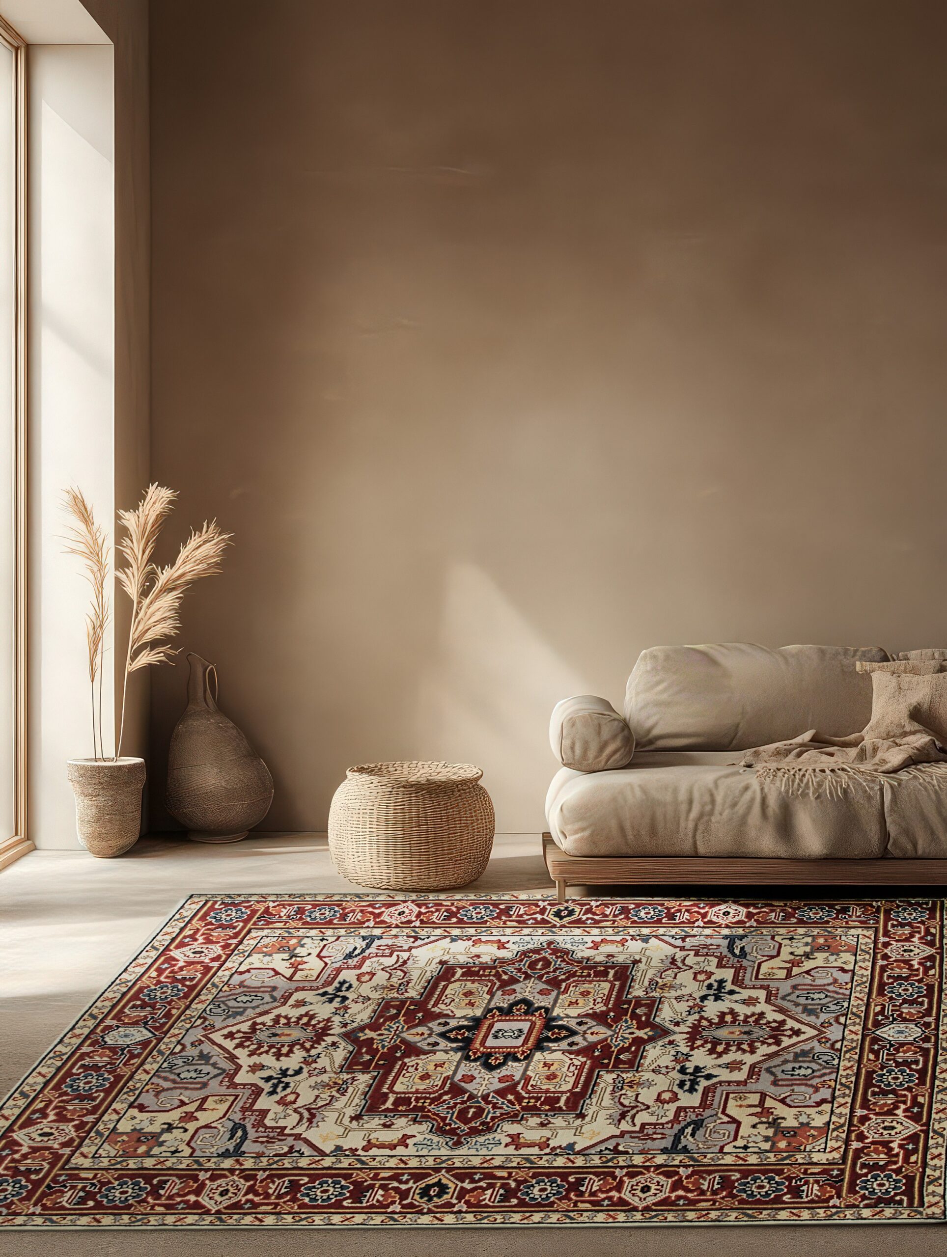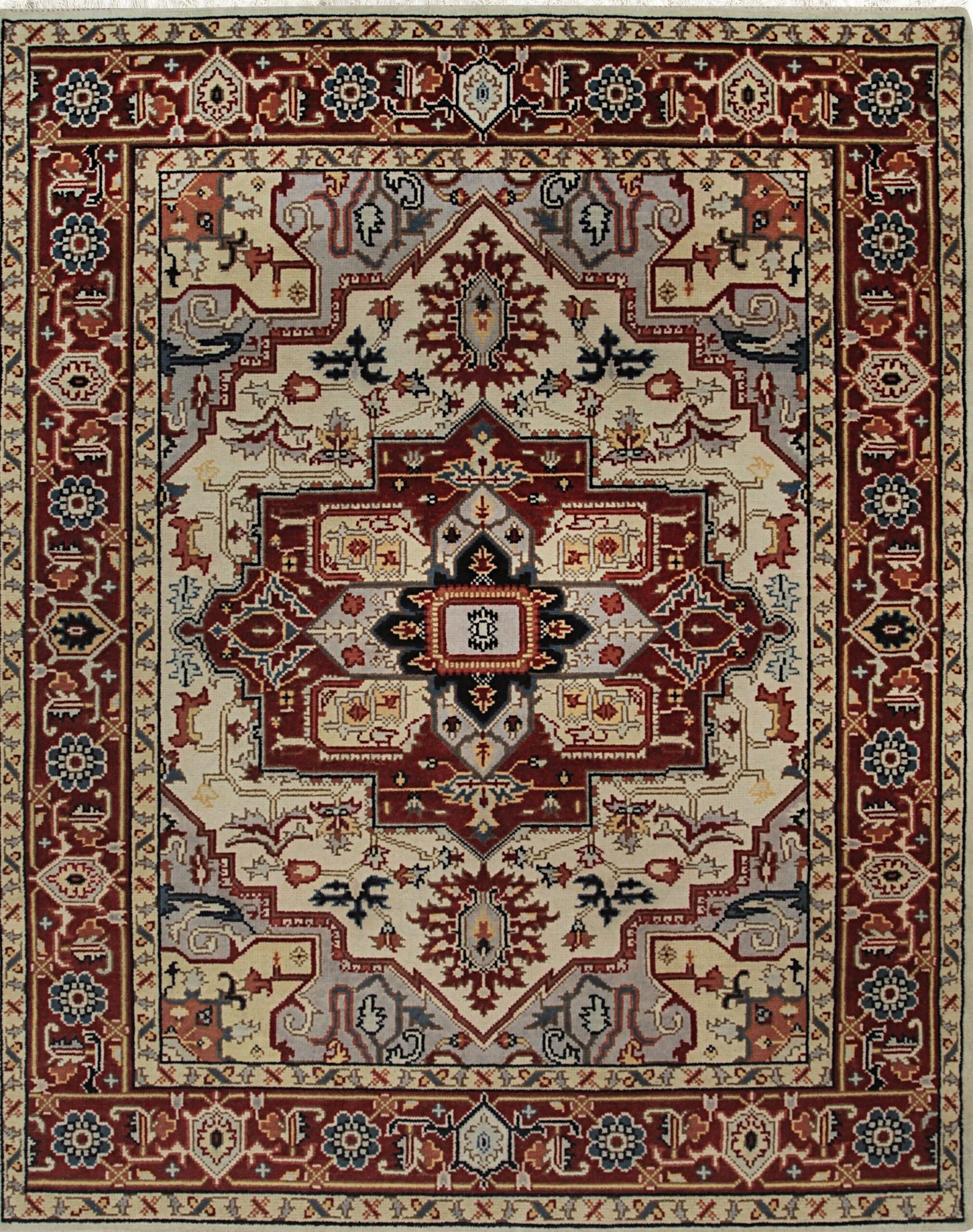 The central medallion features a complex geometric structure, framed by rich terracotta reds and subtle slate greys. The dominant field color is a luminous, creamy ivory color rugs, providing a perfect neutral ground that allows the traditional motifs to truly radiate. This balanced palette ensures seamless integration into both classic and transitional settings.