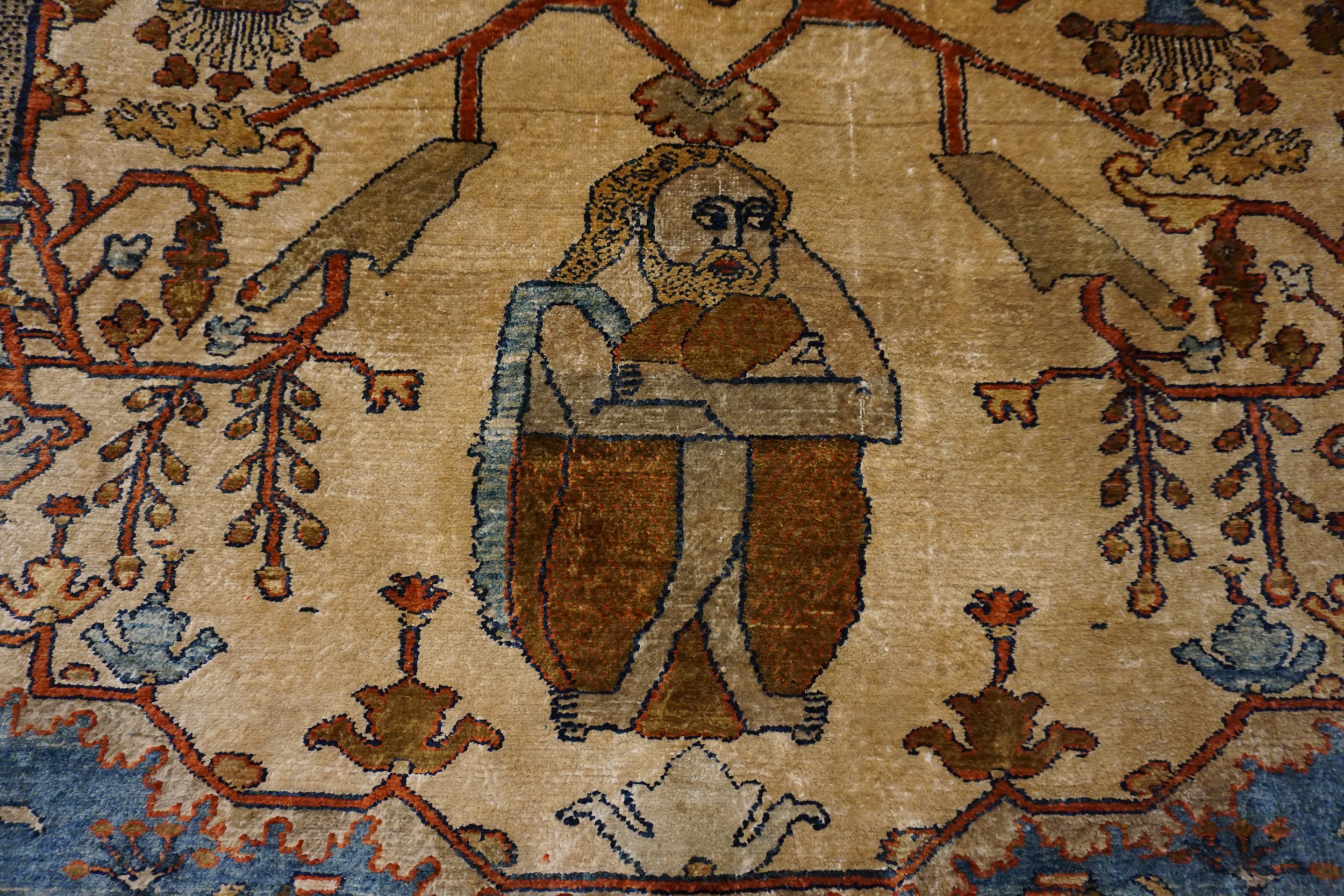Antique Heriz Silk Persian Allover Floral Knotted Rug, Circa Date: 1850s. This exceptional piece from the mid-19th century represents a highly unusual departure from the typical geometric style associated with the Heriz weaving region. Crafted entirely of fine silk, its luxurious texture and precise knotting elevate it far beyond standard village productions, placing it among the most coveted antique rugs of the period.