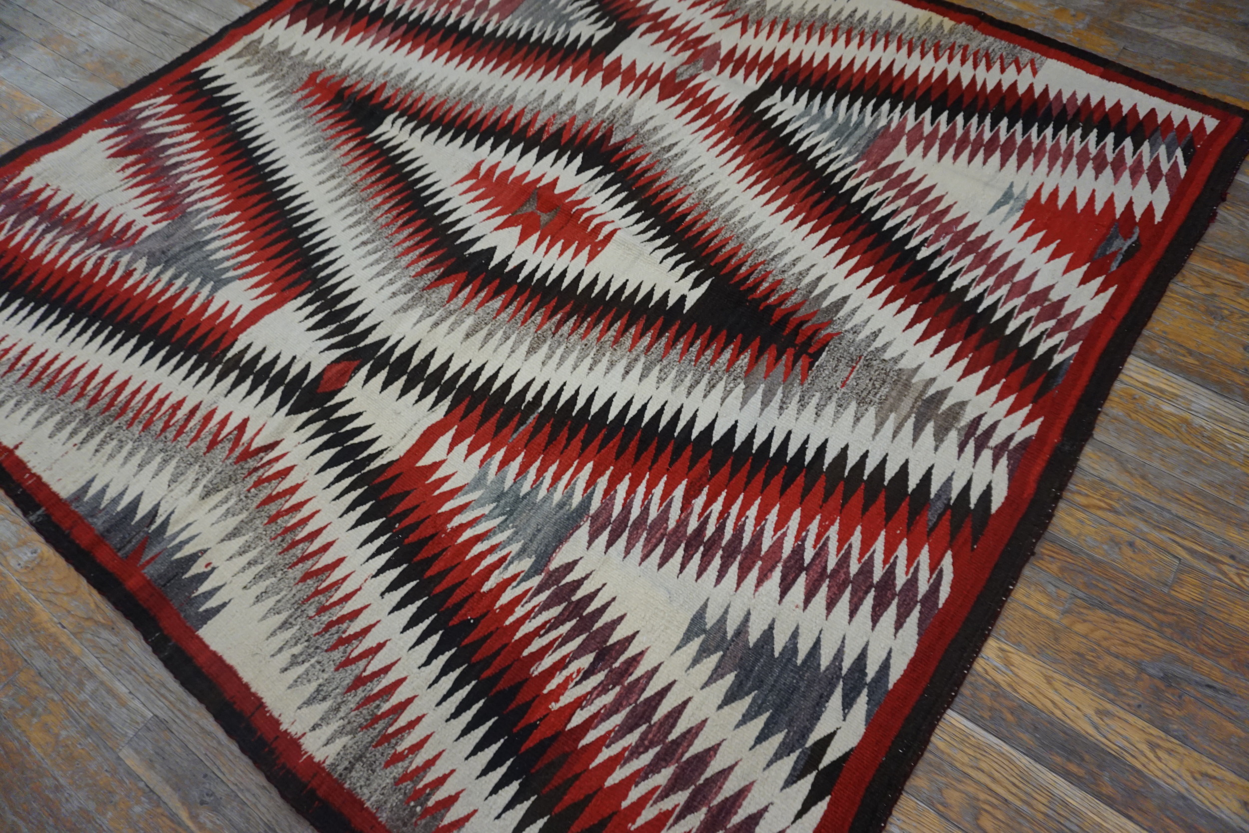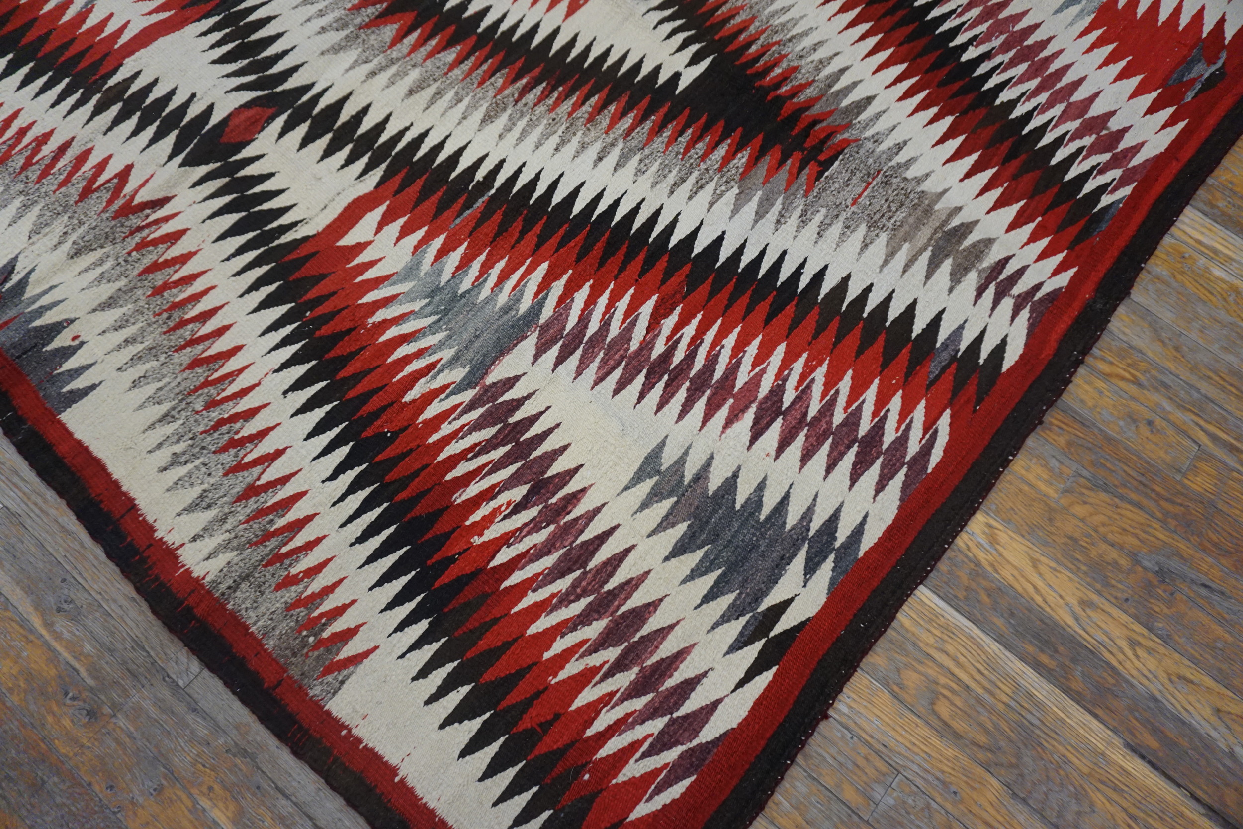 Antique Navajo American Usa Geometric Medallion Flat Weave Rug, Country of Origin: American USA Rugs, Circa Date: 1920s. This striking textile exemplifies the powerful aesthetic of navajo rugs, featuring a commanding central diamond motif rendered in sharp, serrated lines. Woven in the American USA Rugs tradition, this piece captures the dynamism of early 20th-century Southwestern design.