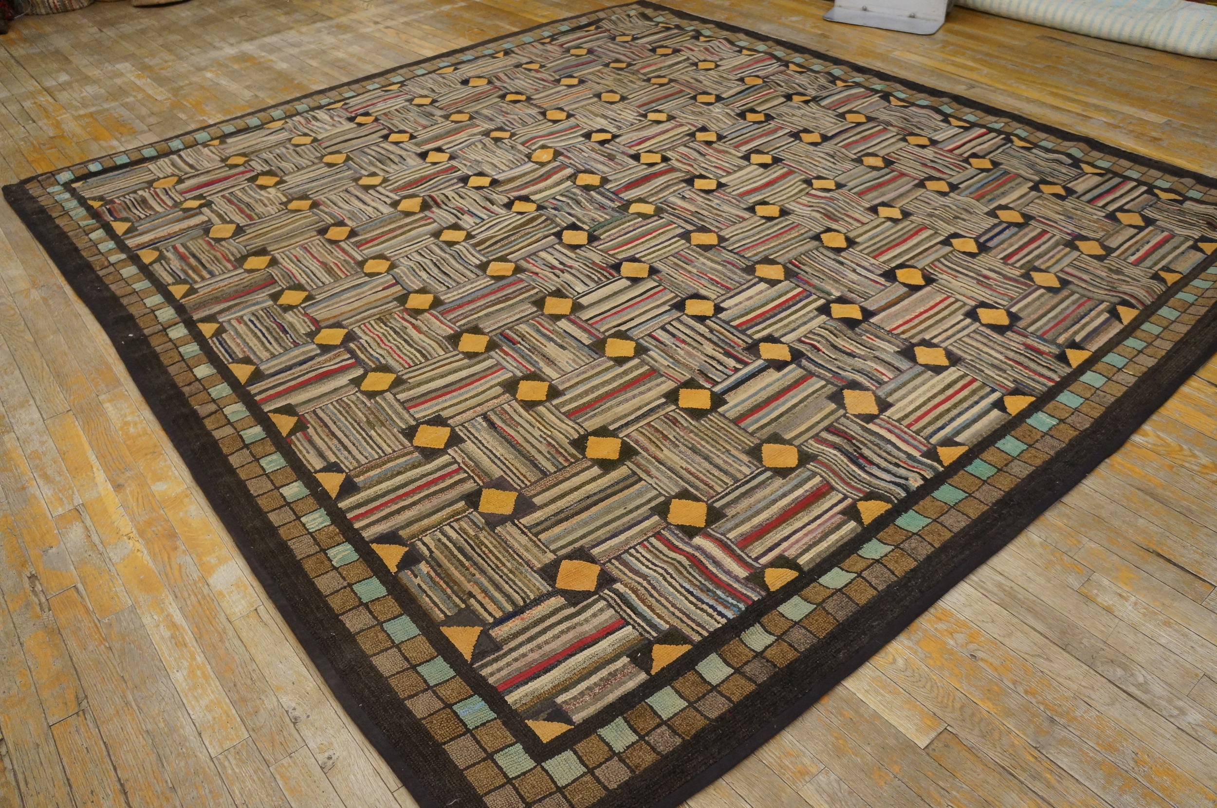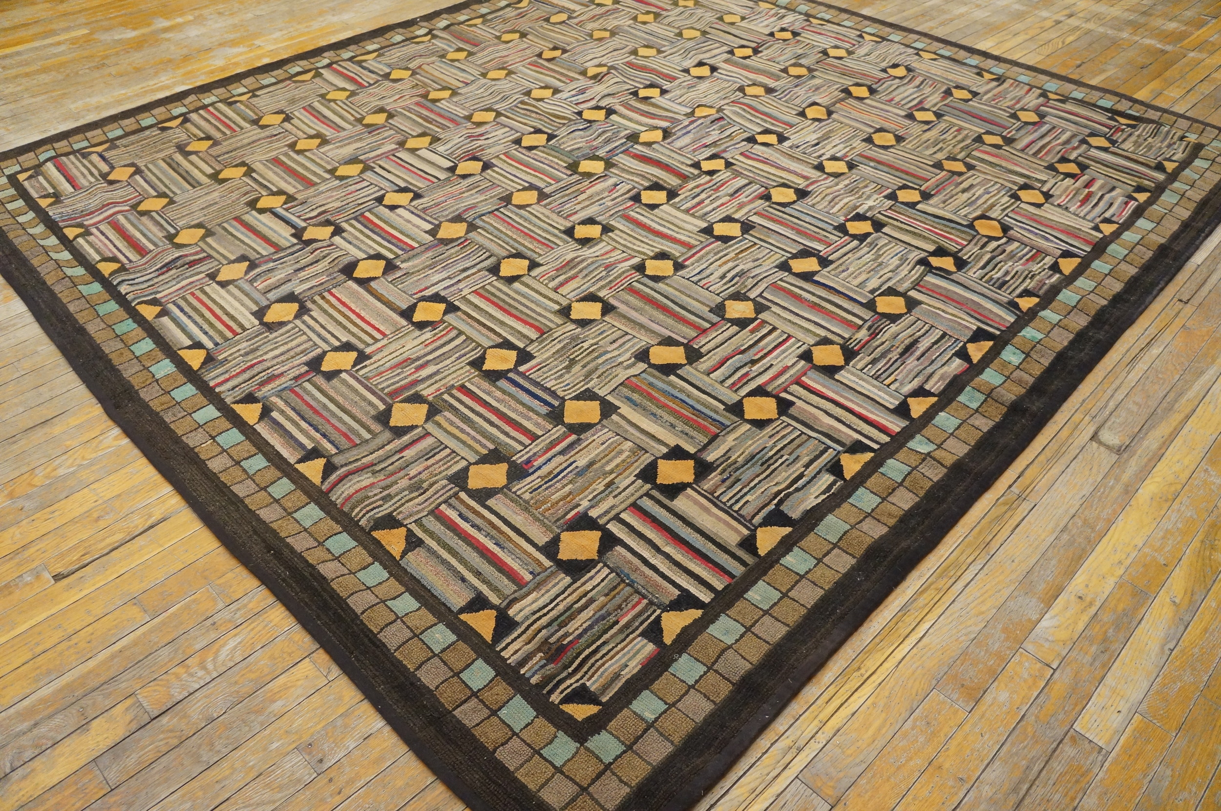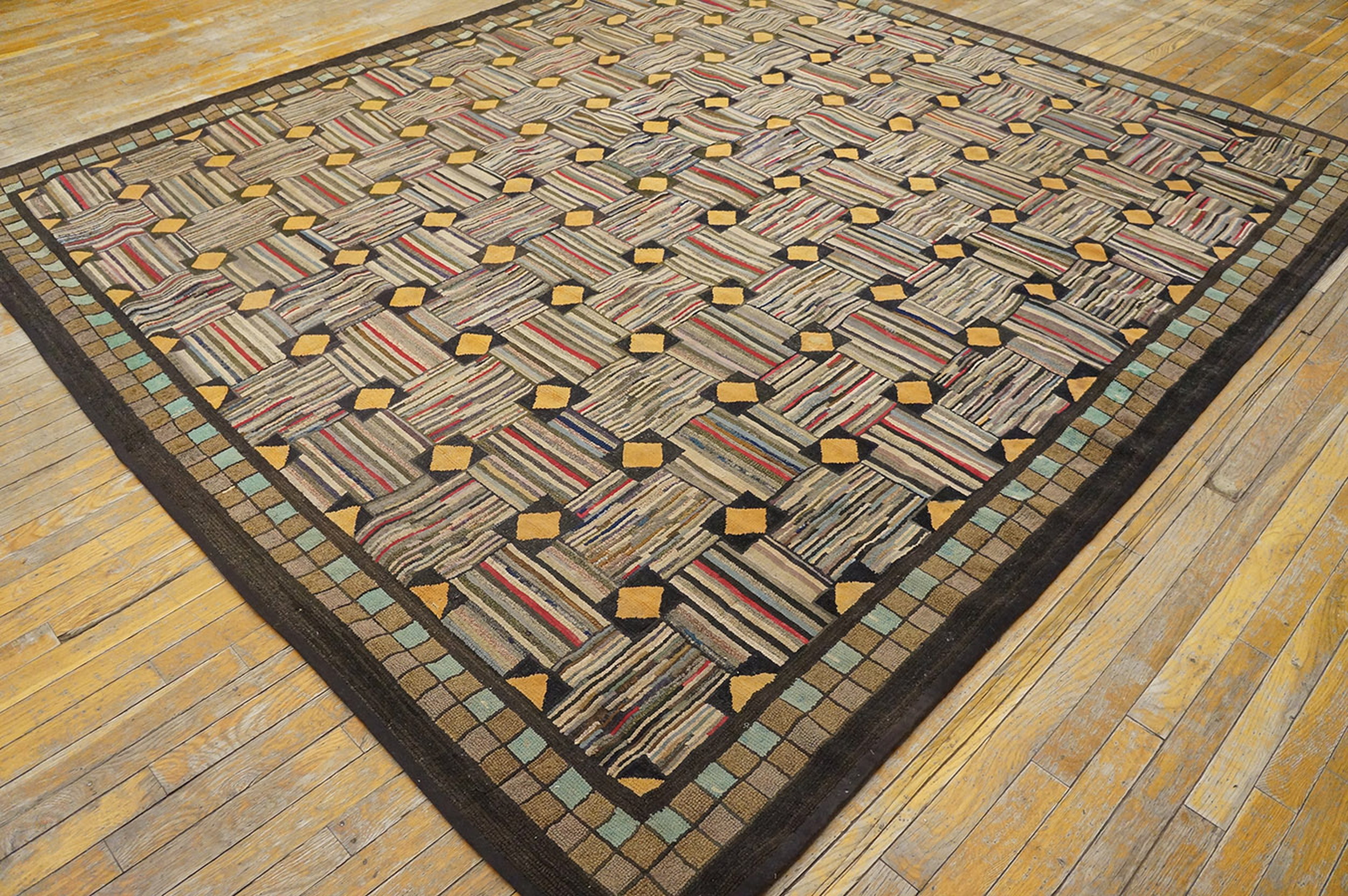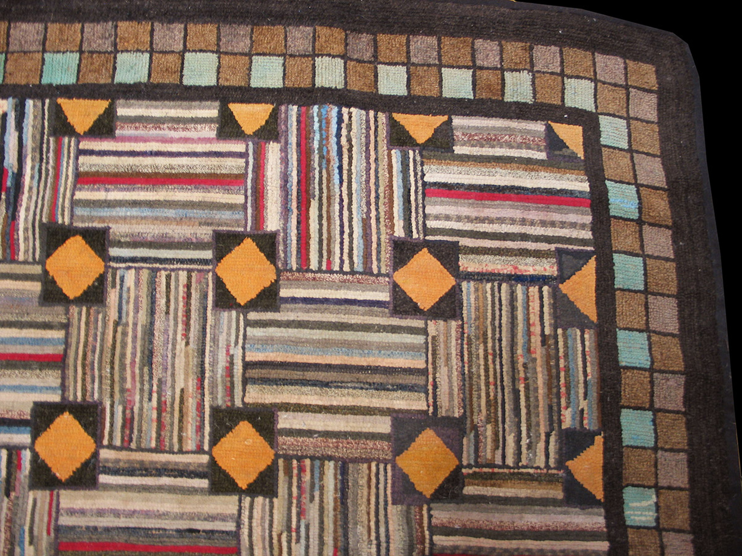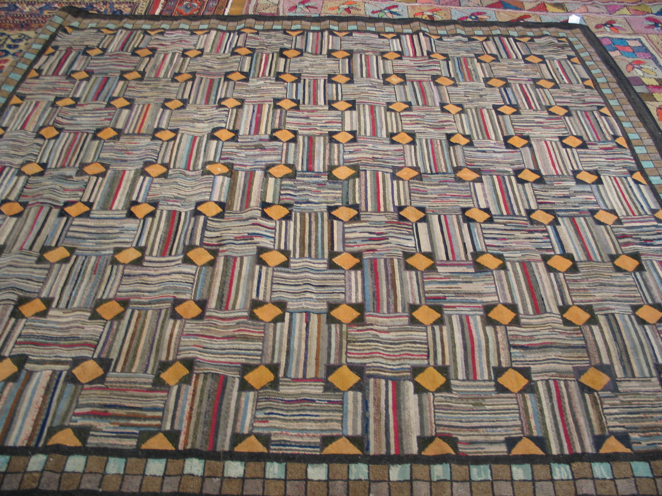 This rug stands as a testament to the enduring appeal of early American textile craftsmanship. Its striking modernism, achieved through traditional techniques, makes it a highly desirable acquisition among discerning collectors of antique rugs and 20th-century design history.
