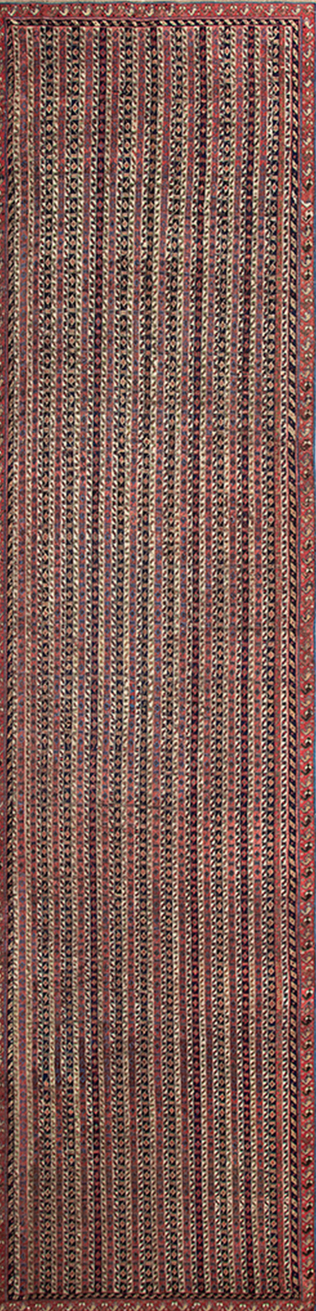 Having survived nearly two centuries, this Afshar runner remains in remarkable condition, displaying the beautiful patina and softening of color that only age can bestow. It serves not merely as floor covering, but as a tangible piece of history, representing the enduring artistry and technical skill of the 1850s weavers who crafted it.