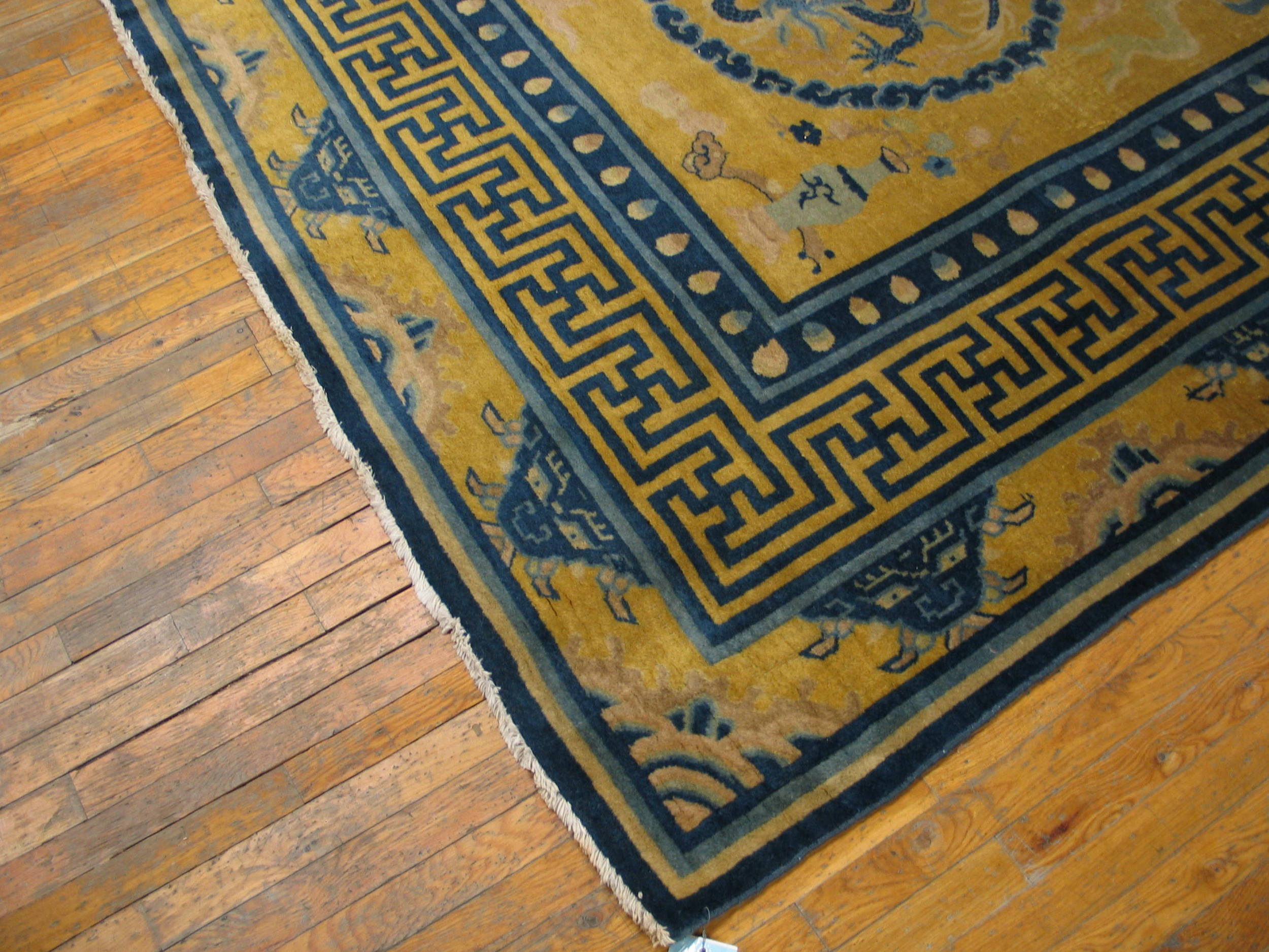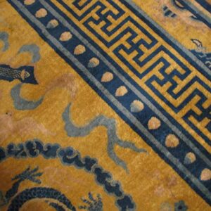 Whether paired with traditional décor or used to introduce a bold cultural accent in modern interiors, this antique Chinese dragon, bird of paradise, tiger border rug offers a unique blend of historical significance, decorative presence, and symbolic artistry.