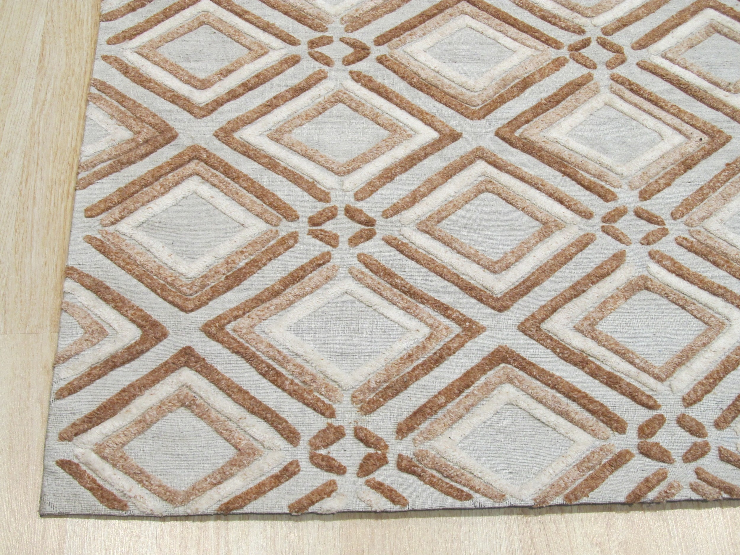Sumptuous Diamond Brown Hand Knotted Wool Rug. This contemporary piece offers a refined interpretation of classic geometric design, utilizing a repeating diamond motif to create visual depth. The construction is robust, ensuring this rug will serve as a foundational element in any modern interior design scheme, perfect for those seeking new area rugs.