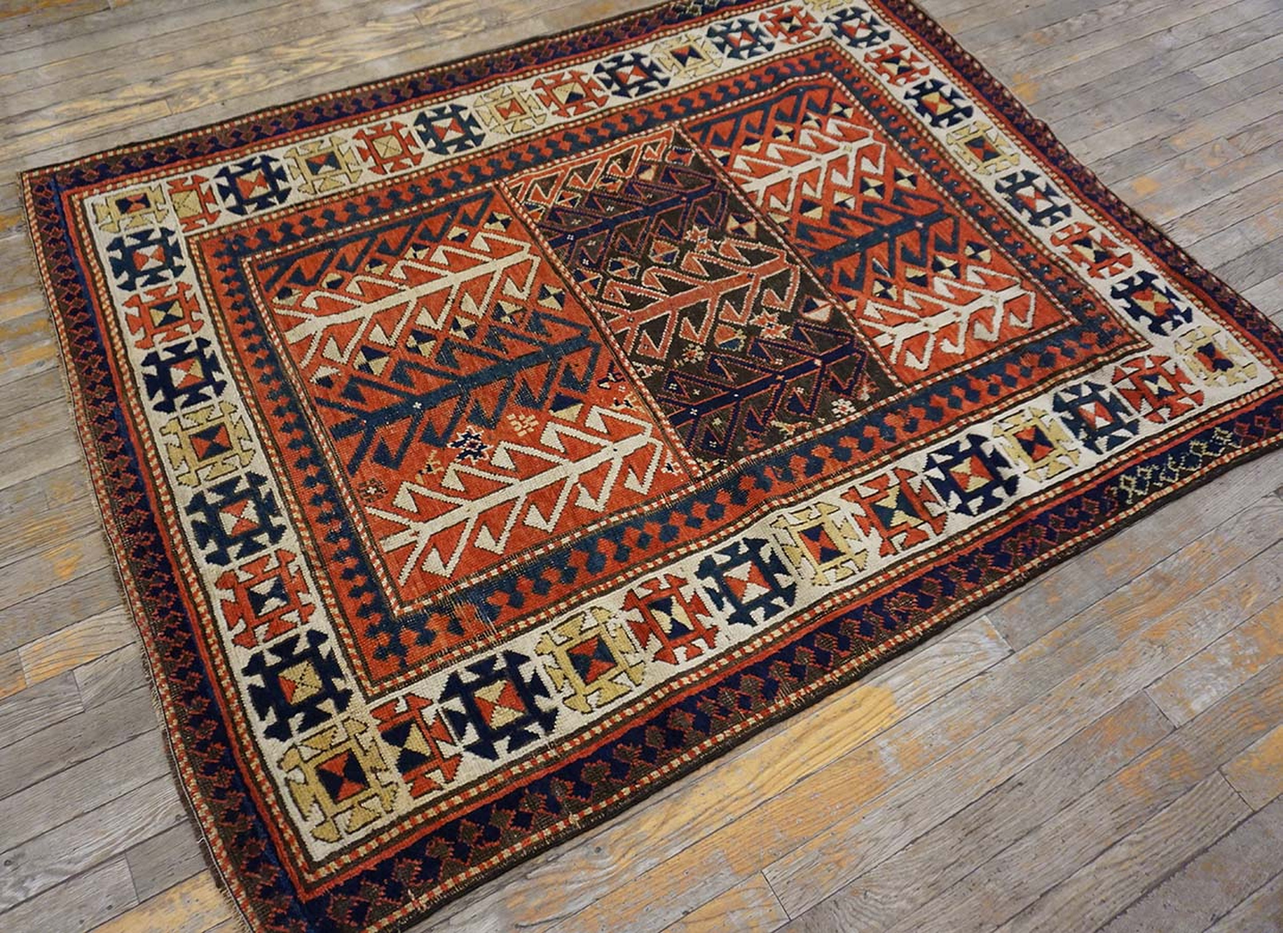 Antique Caucasian Russia Coral 1880s Rug, Circa Date: 1880s. This exceptional example of nomadic weaving artistry offers a powerful visual narrative, characteristic of the finest antique rugs produced in the mountainous regions of the Caucasus during the late 19th century.