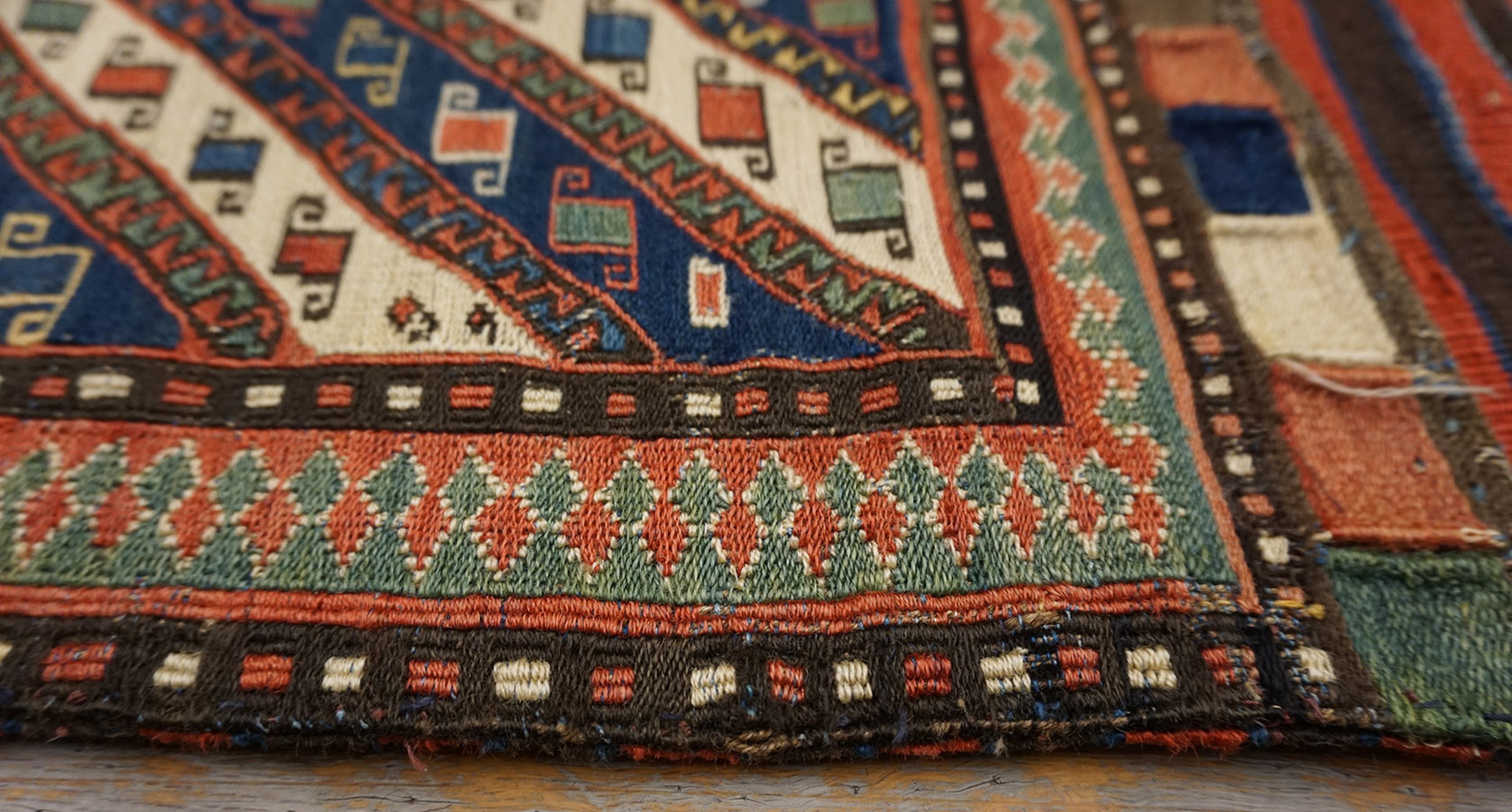 This Sumak textile is a superb example of tribal artistry, demonstrating both technical mastery and a powerful command of traditional iconography. Pieces of this age and condition are increasingly rare, offering collectors a tangible link to the weaving heritage of the Caucasus and standing out among general antique rugs for their unique flat-woven construction.