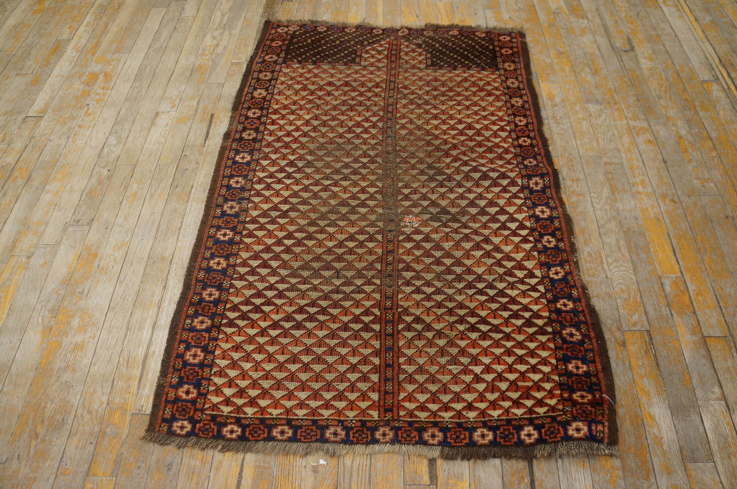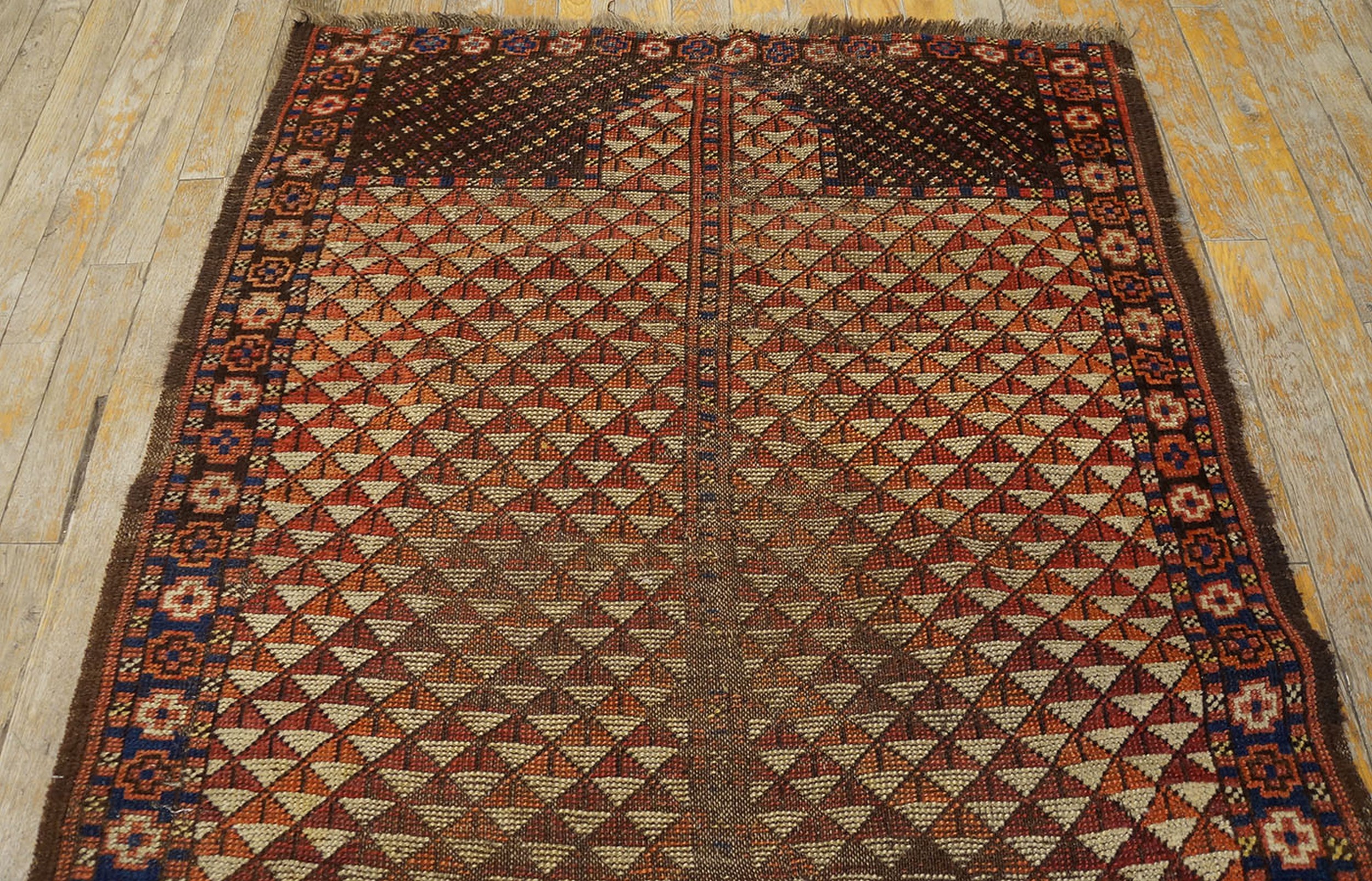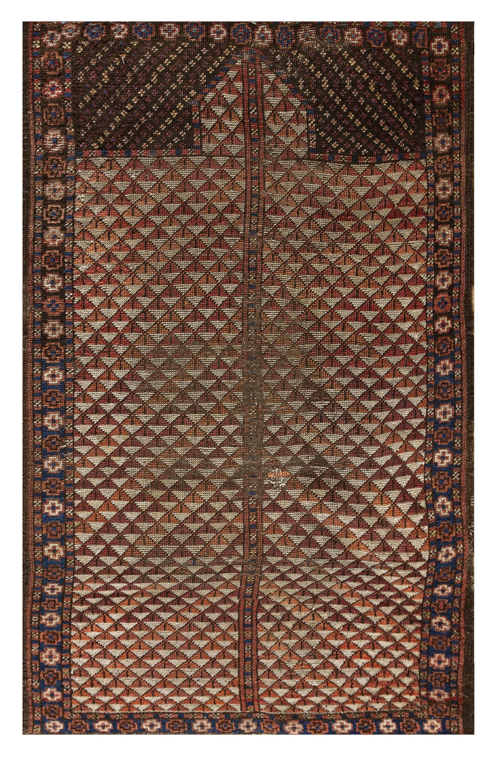 Tribal Geometric Antique Small Scatter Size Wool Ersari Beshir Muslim Prayer Rug