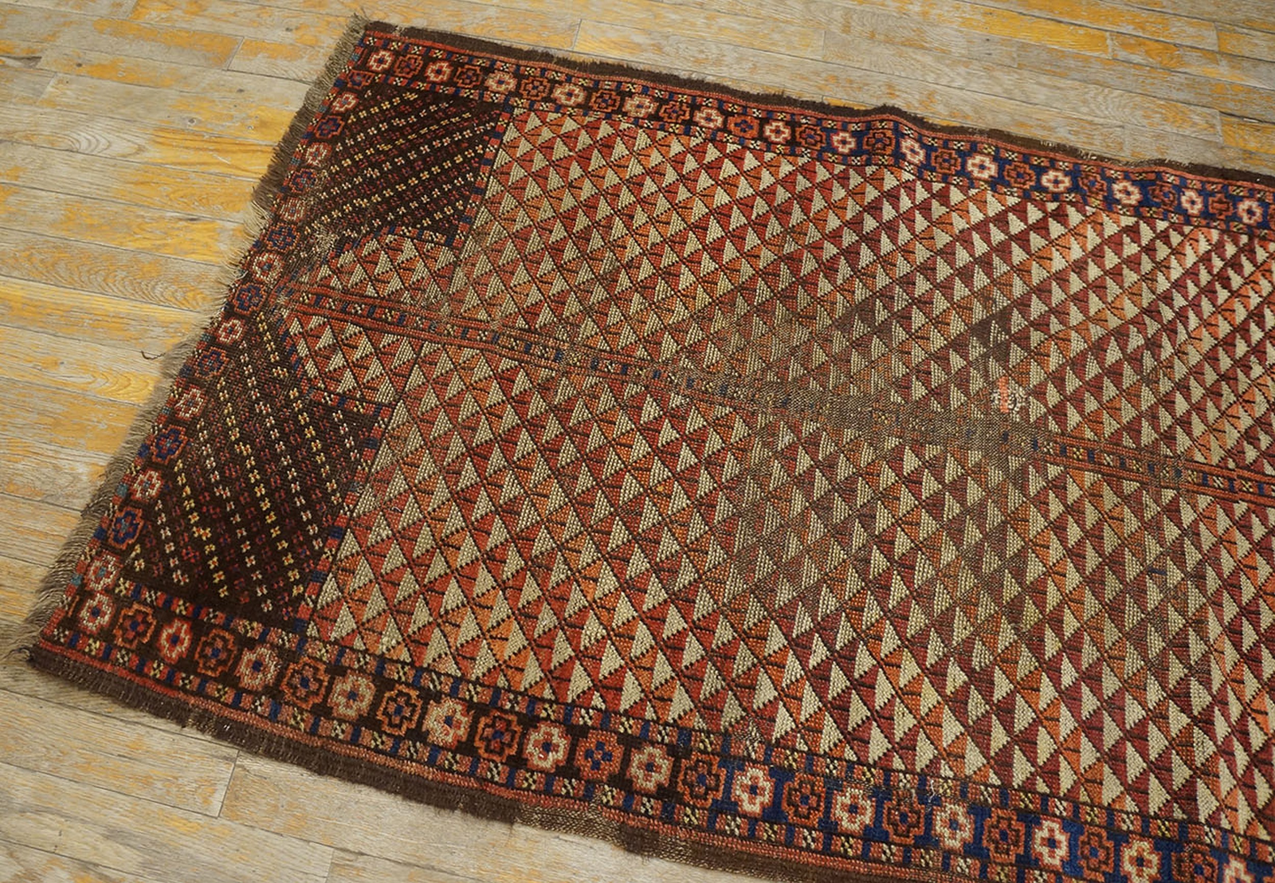 A testament to enduring tribal artistry, this rug offers both historical significance and robust decorative appeal. Its authenticity and age mark it as a fine acquisition for collectors of antique rugs, offering a sophisticated, understated texture that complements both traditional and modern interiors.