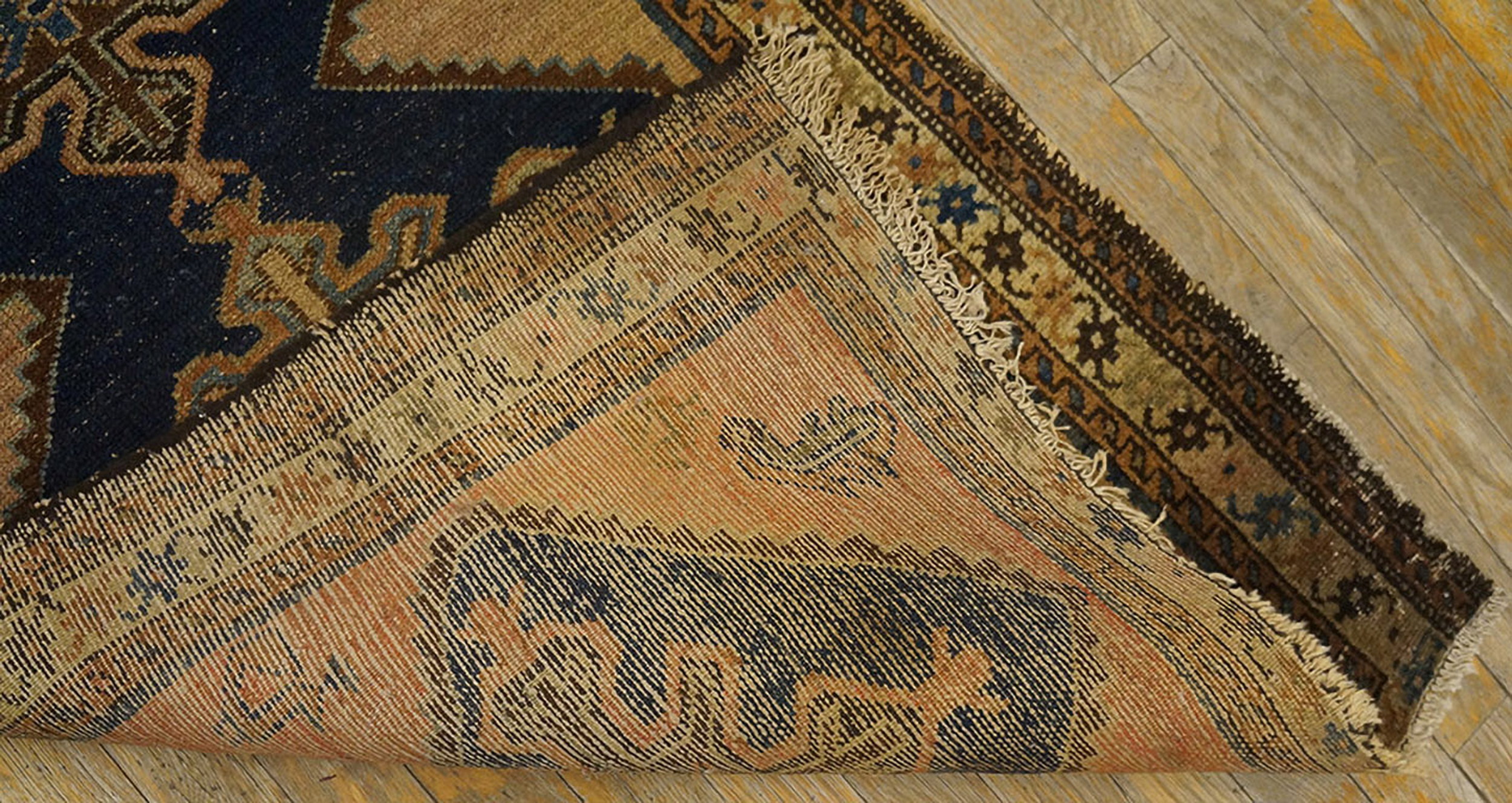 While possessing the gravitas of a larger piece, this Malayer is sized perfectly as a small scatter size, ideal for adding definition to a hallway entrance, a study, or a bedside area. The palette—dominated by earth tones and saturated navy—ensures versatility, allowing it to integrate seamlessly into both modern minimalist interiors and classically furnished spaces. The sturdy knotting speaks to its longevity, a testament to 1920s craftsmanship.
