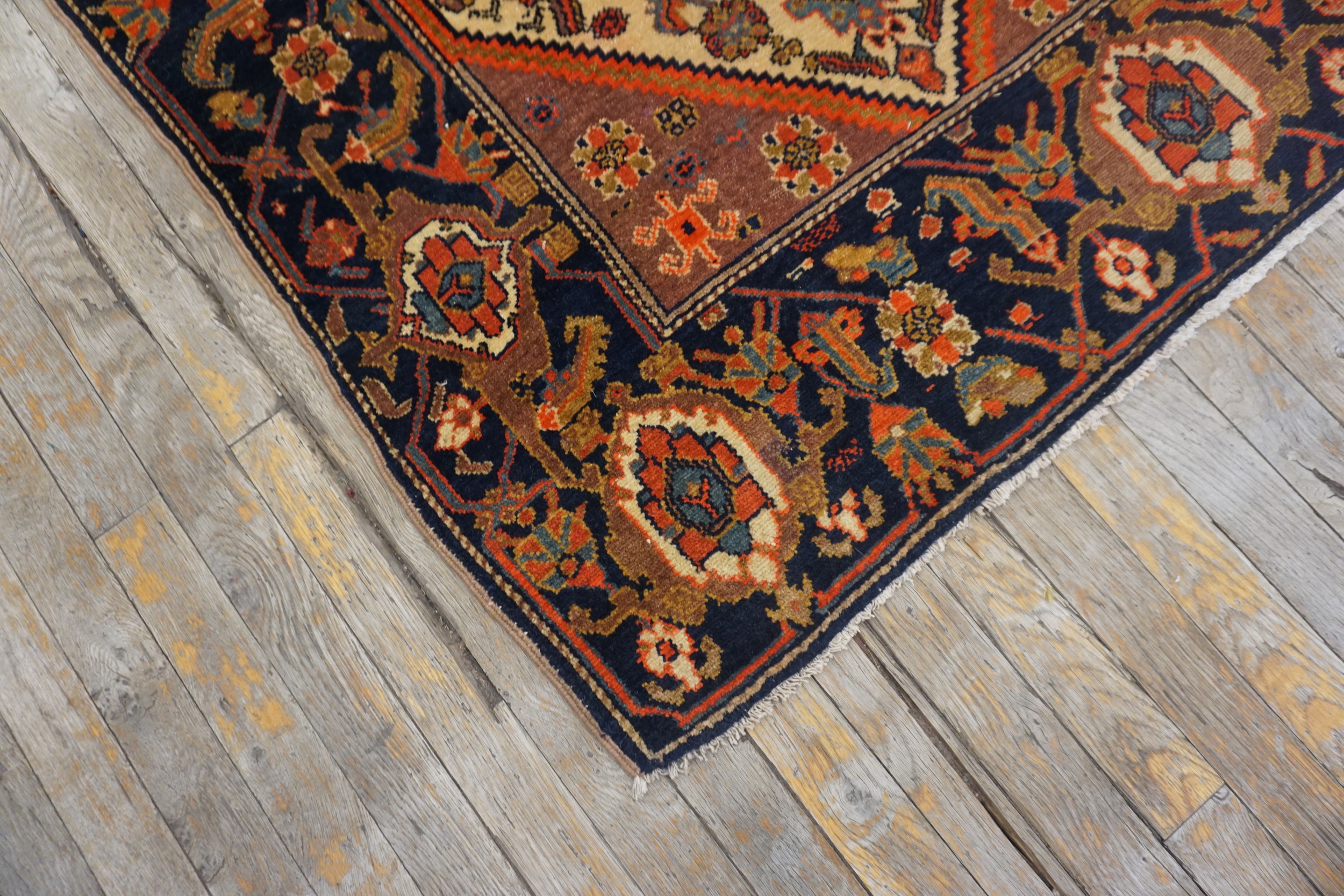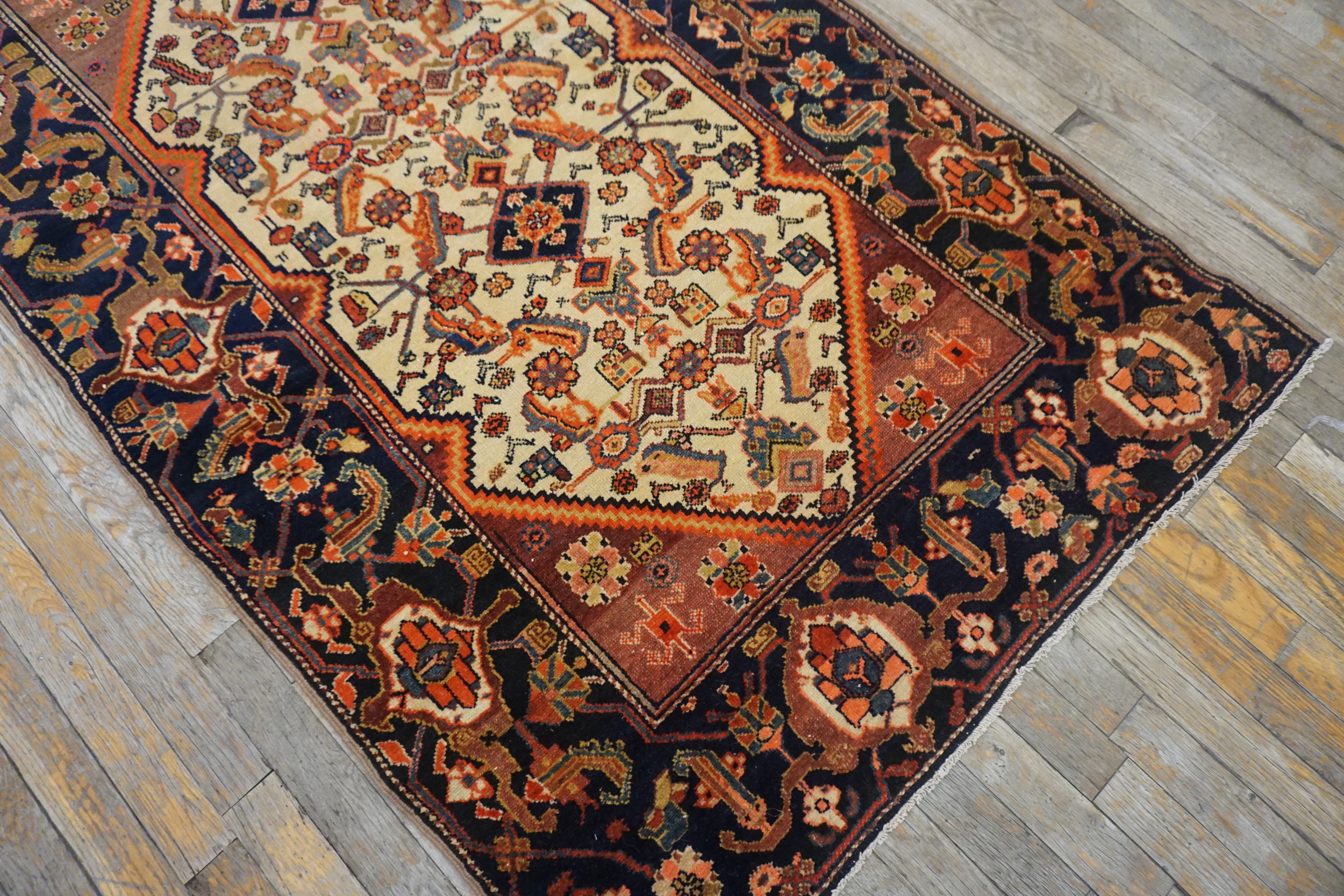 The rich secondary colors—including madder red, ochre, and deep indigo—are derived from natural dyes, lending the rug an incomparable depth and patina. This Malayer is a superb acquisition for collectors seeking authentic, well-preserved antique rugs that define the late Qajar era aesthetic.