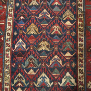 Dating to the late 19th century, the rug exhibits the authentic patina and enduring quality expected of pieces from this era. It remains a superb collector’s item, representing the enduring legacy of antique rugs crafted with exceptional tribal artistry.