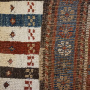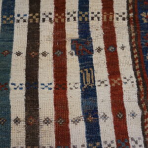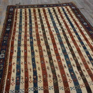 Antique Caucasian Caucasian Ivory 1890s Rug, Circa Date: 1890s. This striking textile is a superb example of traditional Caucasian weaving, characterized by its bold, linear design and vibrant, natural dyes. The structure suggests a tribal or village origin, prioritizing graphic impact over intricate detail and reflecting the robust aesthetic typical of the region’s nomadic artistry.
