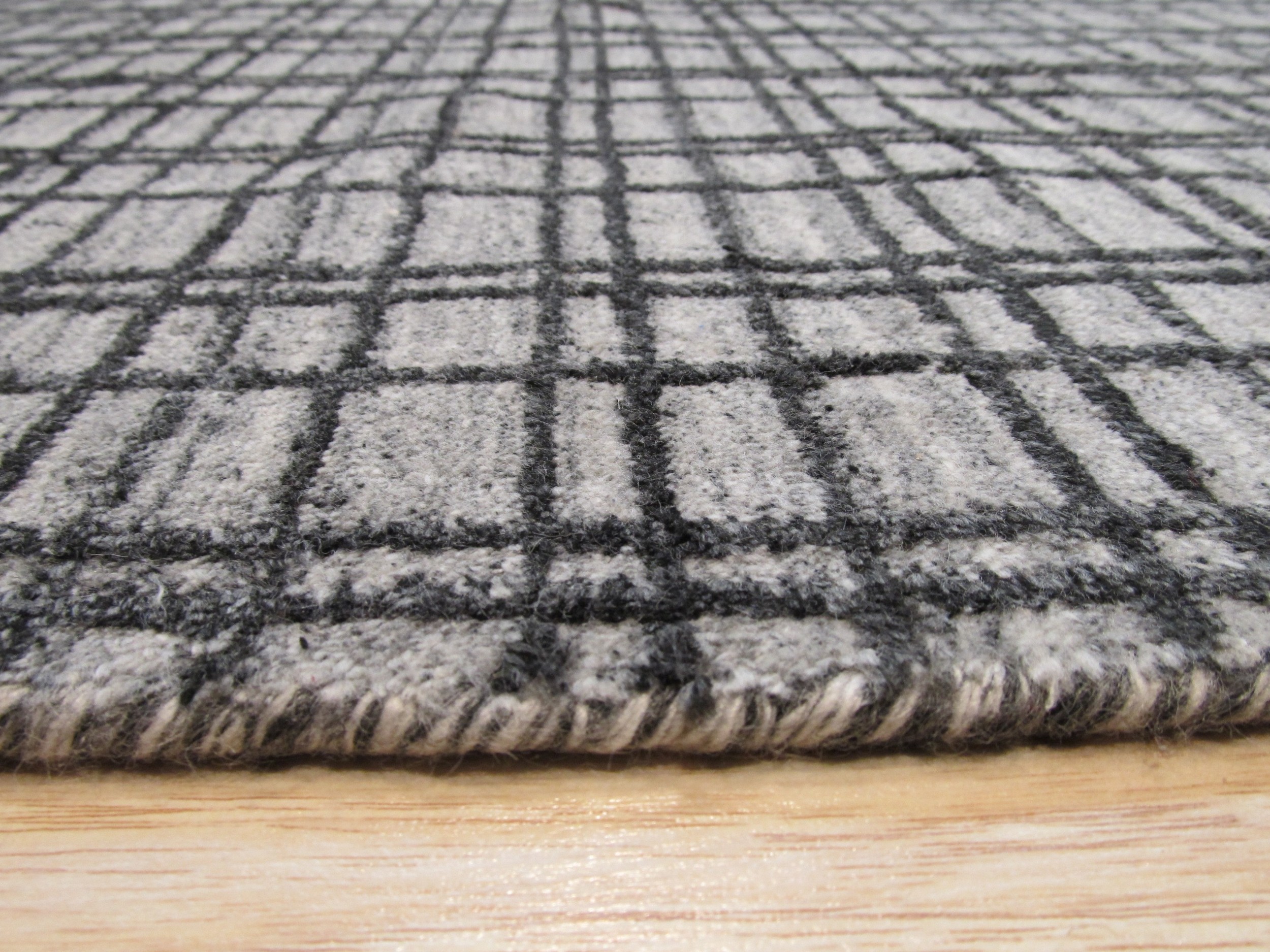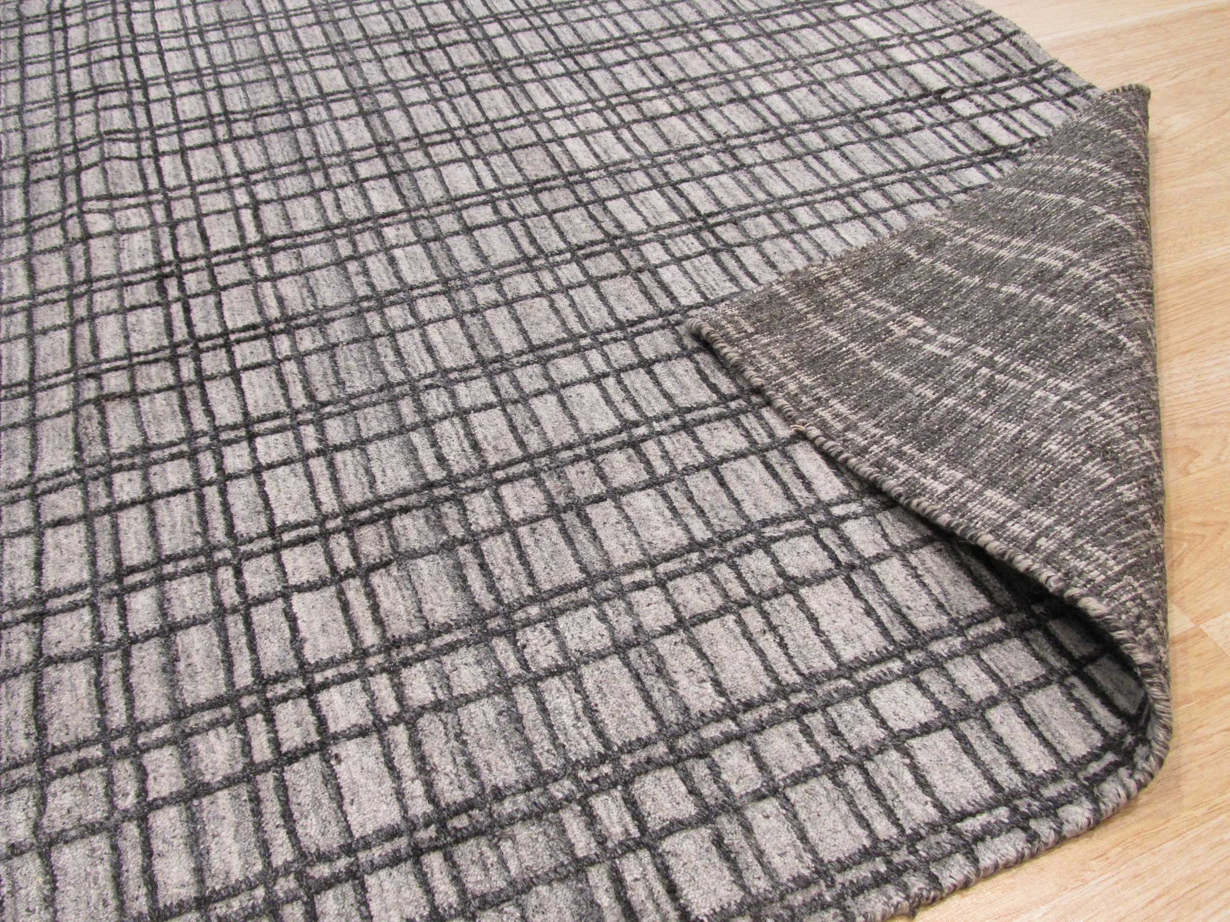 The design utilizes a subtle, hand-drawn grid motif, where charcoal lines intersect across a field of soft silver. This sophisticated palette anchors the piece firmly within the desirable category of gray color rugs, ensuring versatility across various interior styles from transitional to strictly modern.