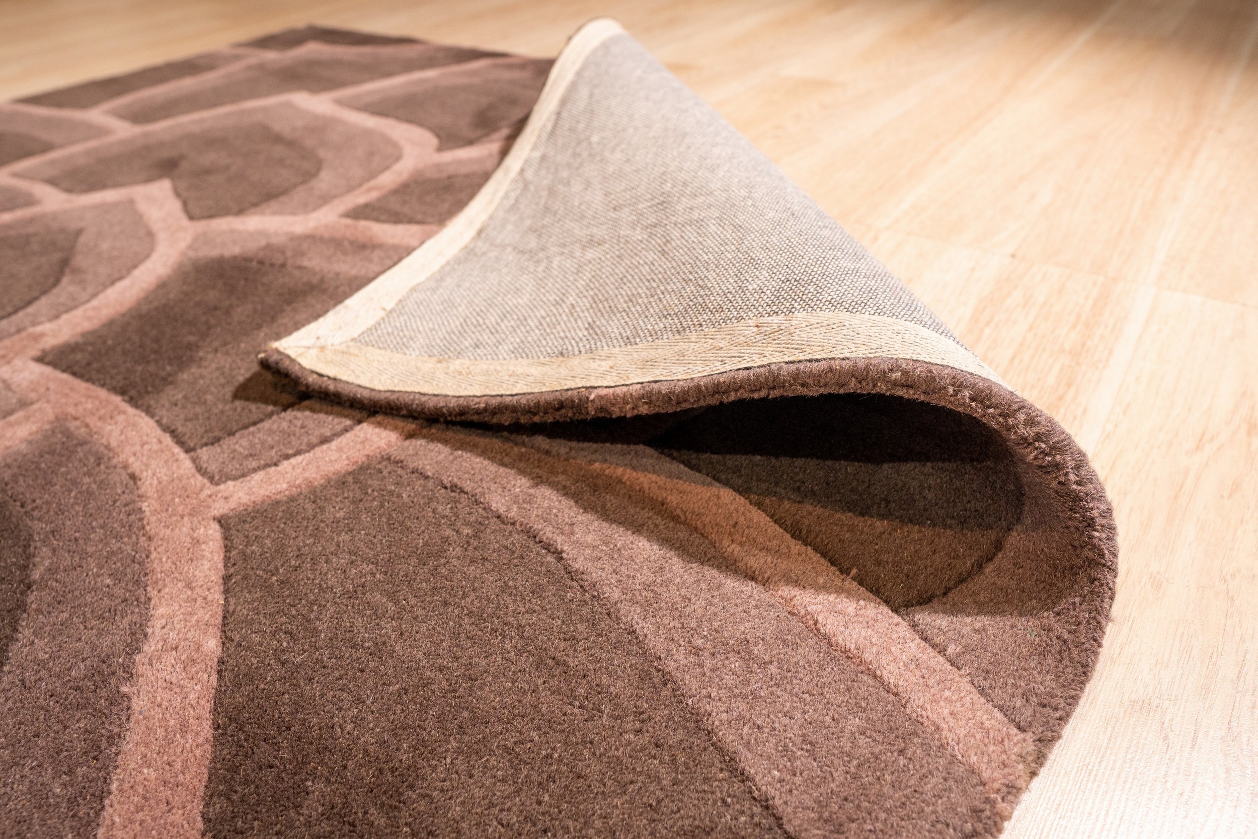 The Kira rug utilizes a sophisticated, monochromatic palette, featuring deep chocolate and cocoa hues. This rich application of brown earth tone provides a grounding foundation for any interior space, offering warmth without sacrificing modern elegance. The subtle variations in shade emphasize the sculpted nature of the pile.