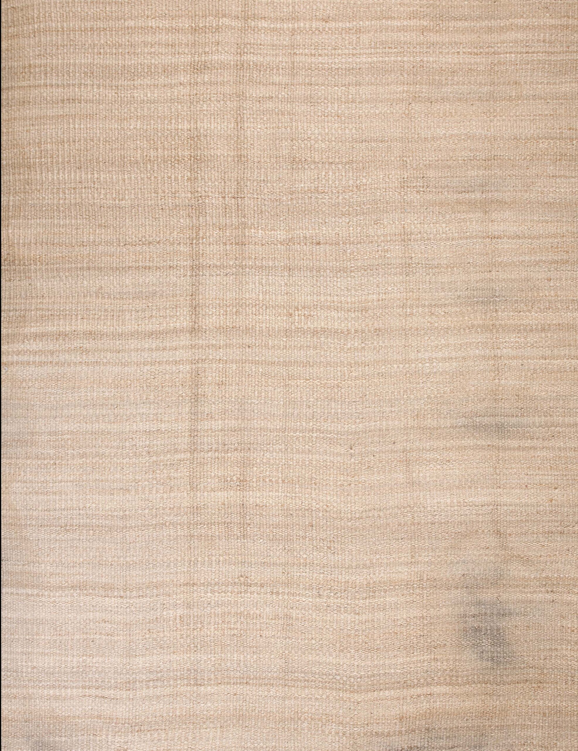 Vintage Reed Room Size Wool Ivory Rug, Circa Date: 1950s. This exceptional piece belongs to our curated collection of vintage area rugs, offering mid-century simplicity and texture. Woven entirely of wool, it presents a sophisticated yet understated foundation suitable for contemporary and transitional interiors.