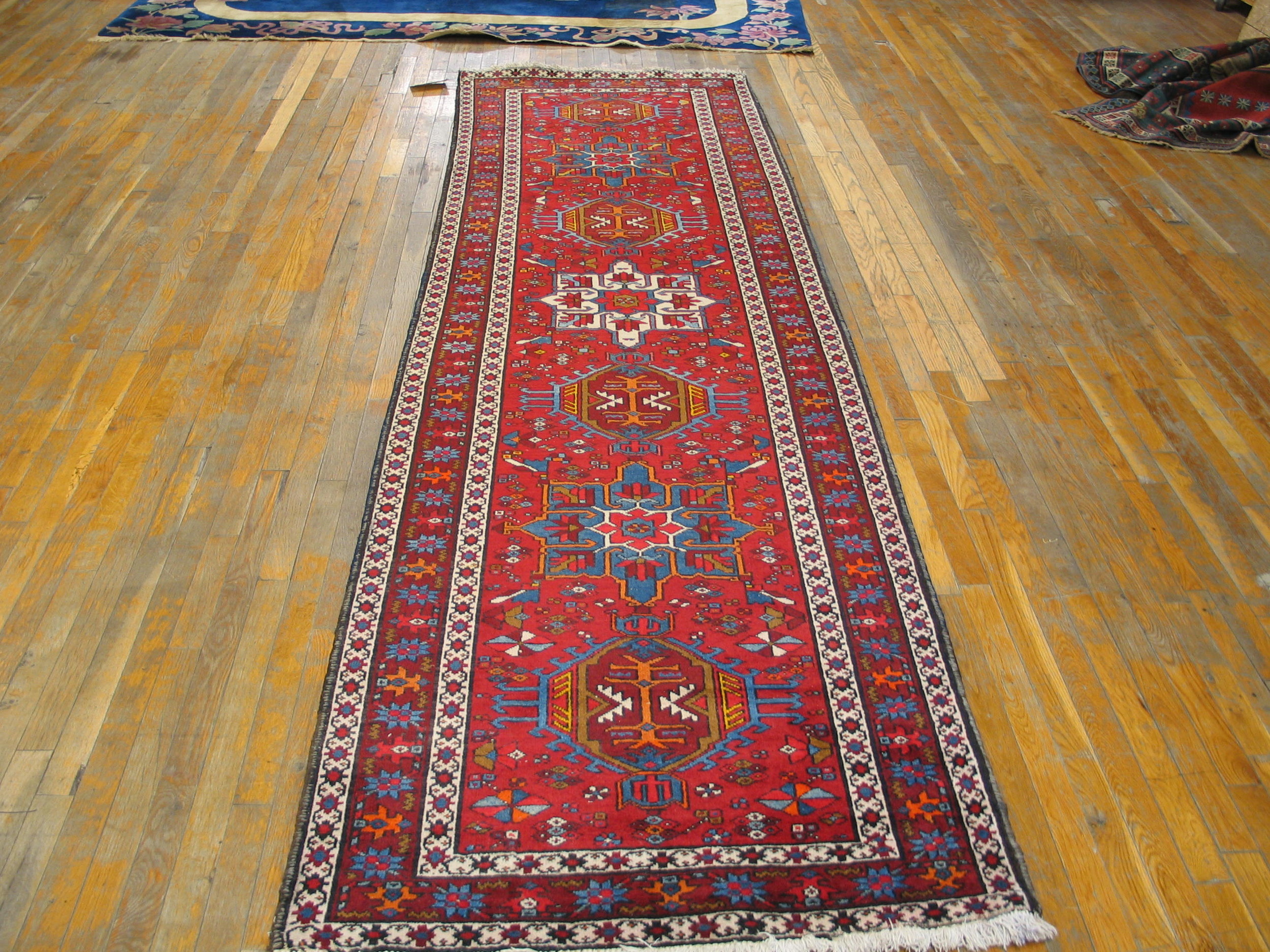 Perfectly suited for defining long corridors or entryways, this finely knotted textile functions excellently as one of the specialized hallway runner rugs. Its narrow format and deep, saturated palette allow it to anchor a space, offering both exceptional visual interest and a practical, durable foundation that retains the charm and authenticity of its mid-century origin.