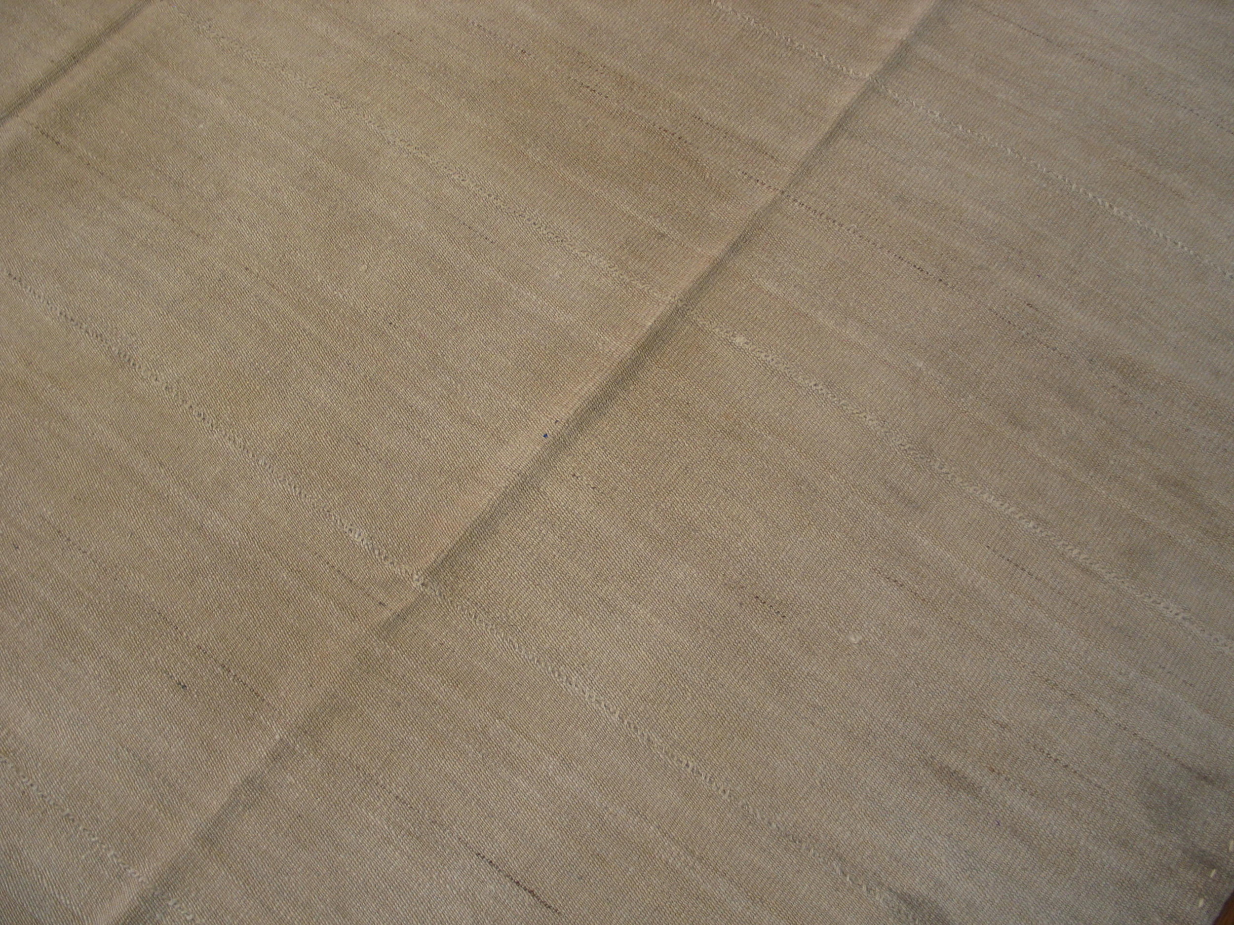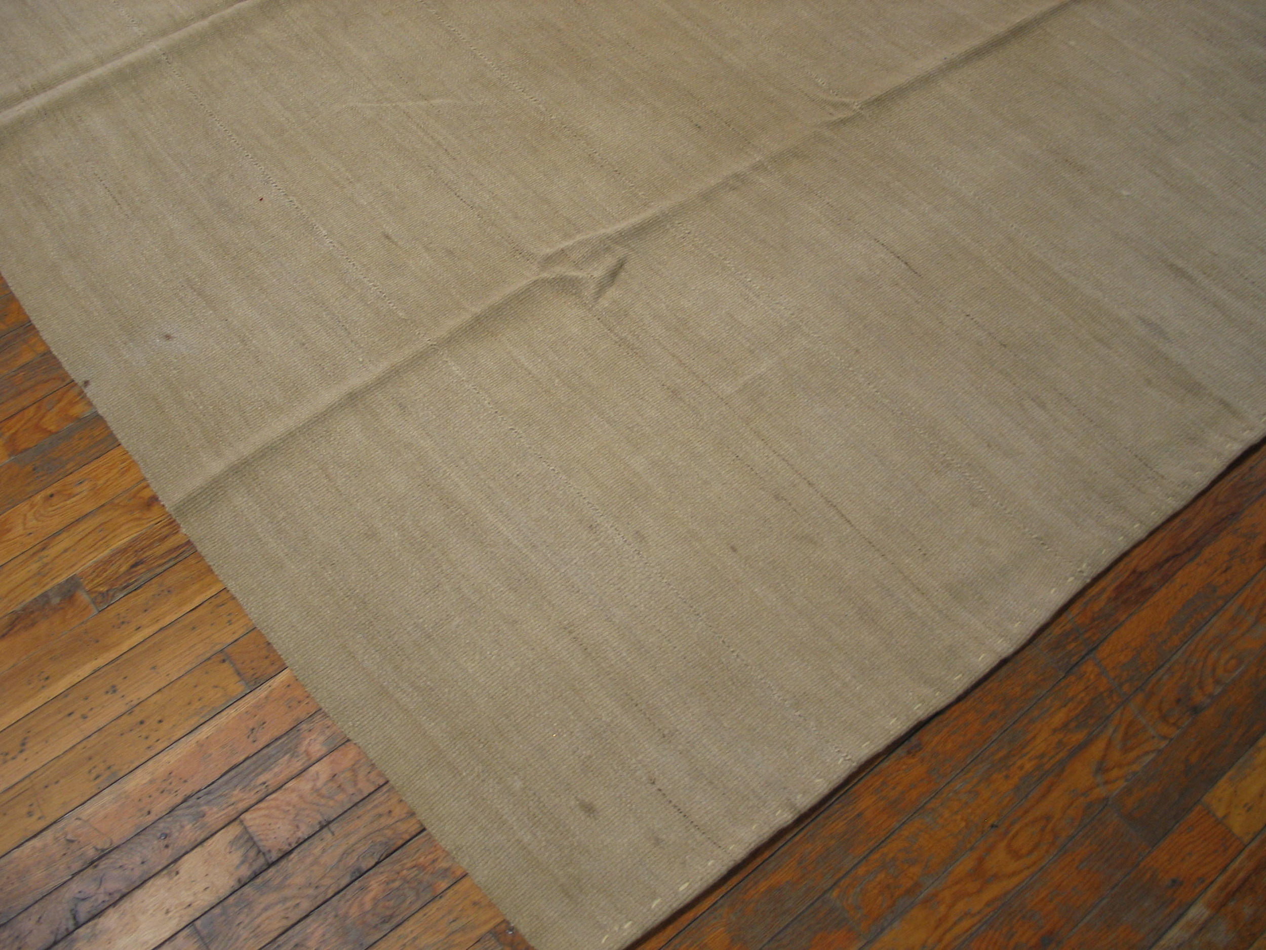 Vintage Flat Woven Kilim Allover Hand Knotted Pile Rug, Circa Date: 1950s. This exceptional piece from the mid-20th century represents a sophisticated evolution of the traditional flat woven Kilim structure, blending the textural lightness of a kilim with the durability of a hand-knotted foundation. The resulting textile is a study in subtle craftsmanship, designed to provide a foundational layer of quiet luxury.