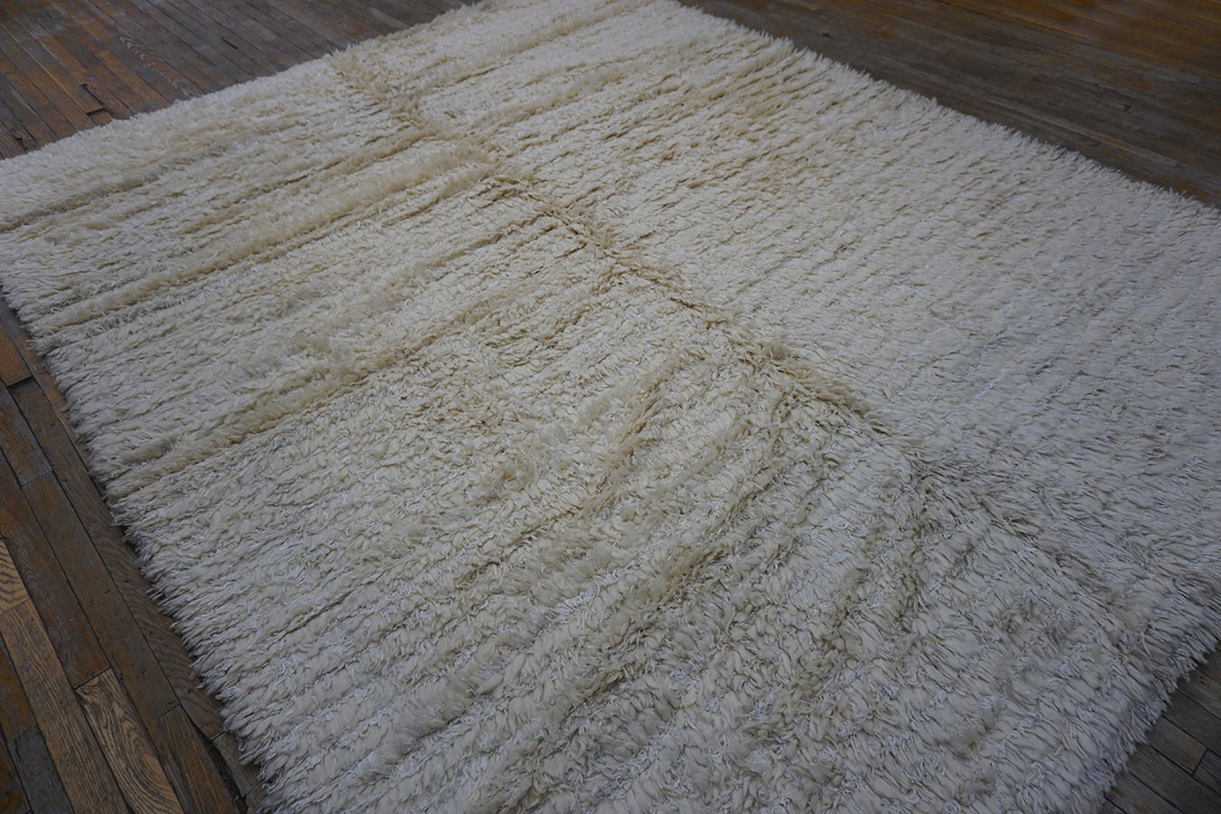Vintage Rabat Allover Geometric Hand Knotted Pile Berber Carpet, Circa Date: 1970s. This exceptional Moroccan piece is a prime example of vintage area rugs from the mid-century period, characterized by its luxurious, shaggy texture and inherently minimalist design approach.