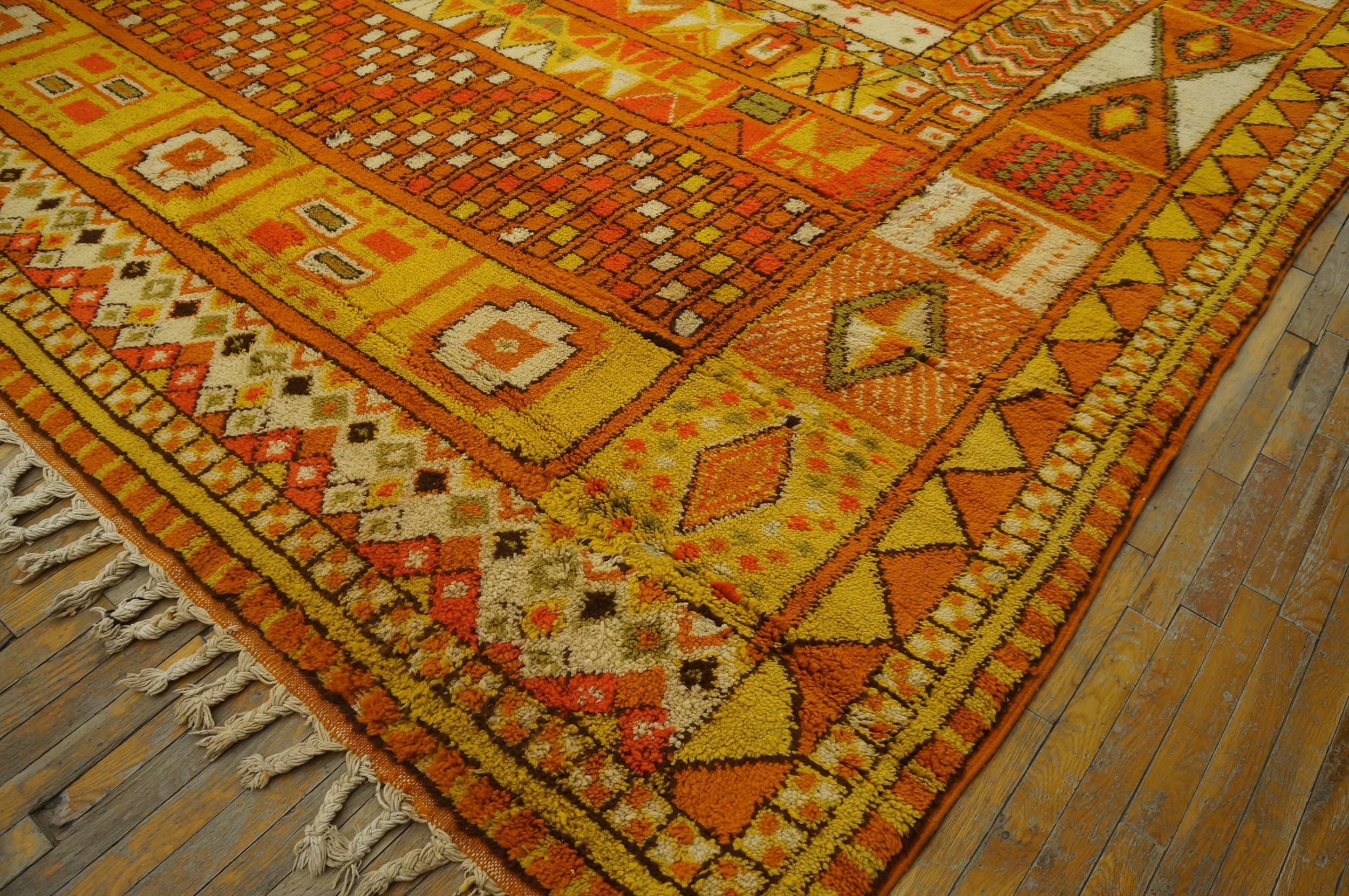 Vintage Large Moroccan – Rabat Moroccan Knotted Rug, Circa Date: 1970s. This exceptional example of mid-century North African weaving captures the bold, expressive aesthetic of the era. Its construction, featuring a thick, sumptuous pile, speaks to the traditional craftsmanship of Rabat, while the vibrant palette marks it as a highly desirable piece among vintage area rugs.