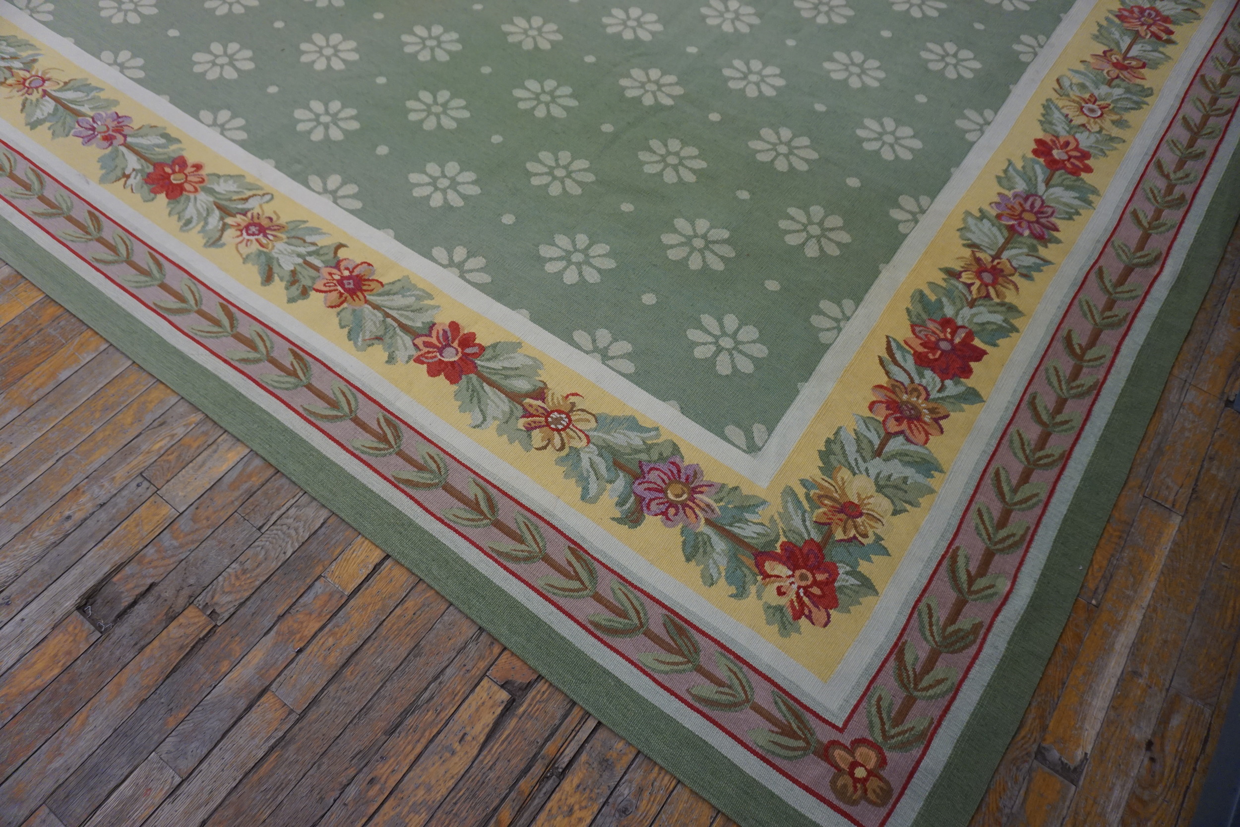 Vintage Large Aubusson Chinese Knotted Rug, Circa Date: 1980s. This impressive piece merges the neoclassical elegance of French Aubusson design with the robust knotting techniques characteristic of Chinese production. Its substantial dimensions make it a truly large oversized rug, ideal for anchoring a grand living space or formal dining room.