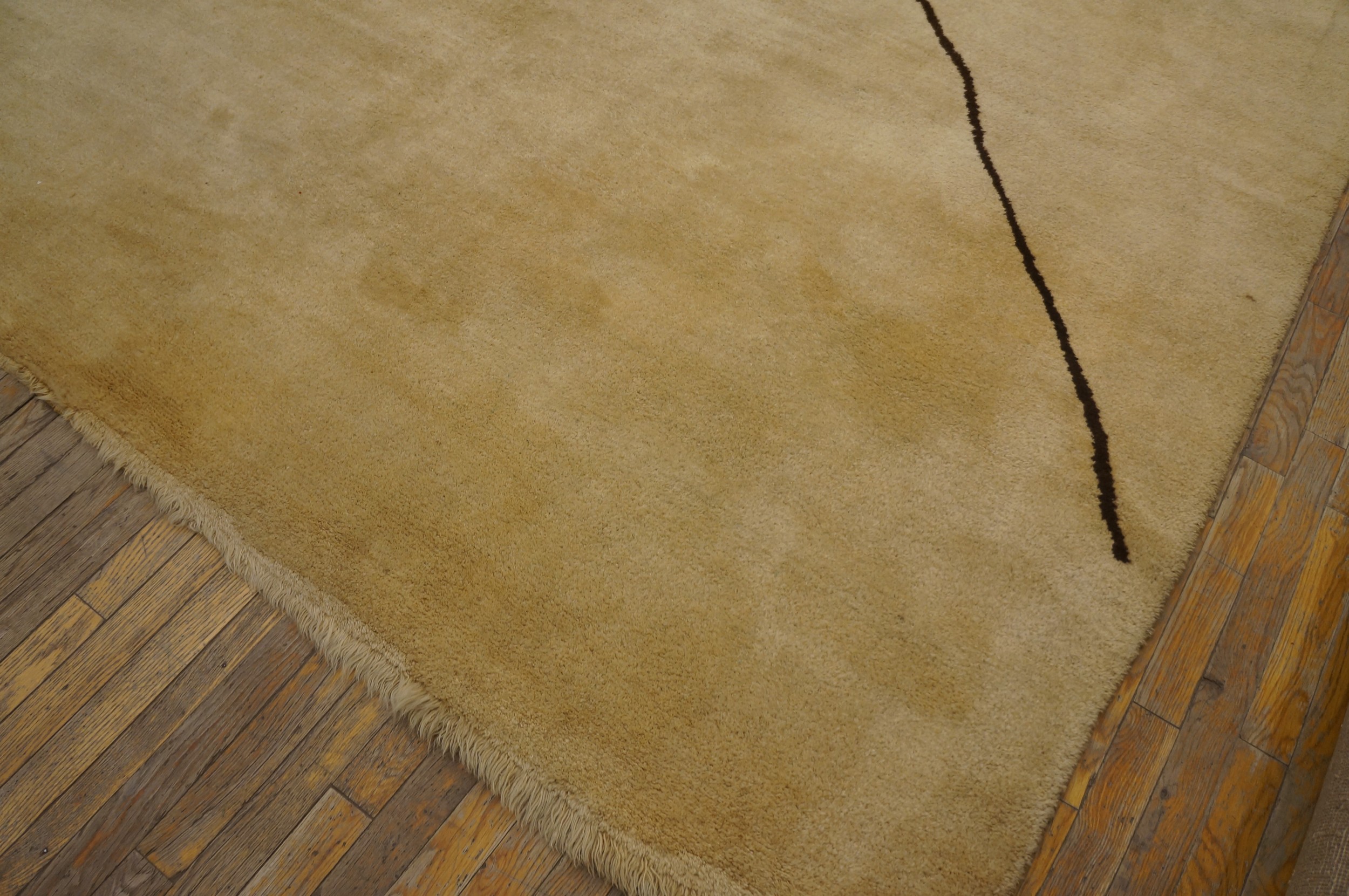Vintage Large Ecuadorian Ecuador Allover Knotted Rug, Circa Date: 1960s. This exceptional piece embodies the bold, minimalist spirit of mid-century design. Its substantial dimensions qualify it as a truly large oversized rug, offering an expansive canvas for its abstract artistry.
