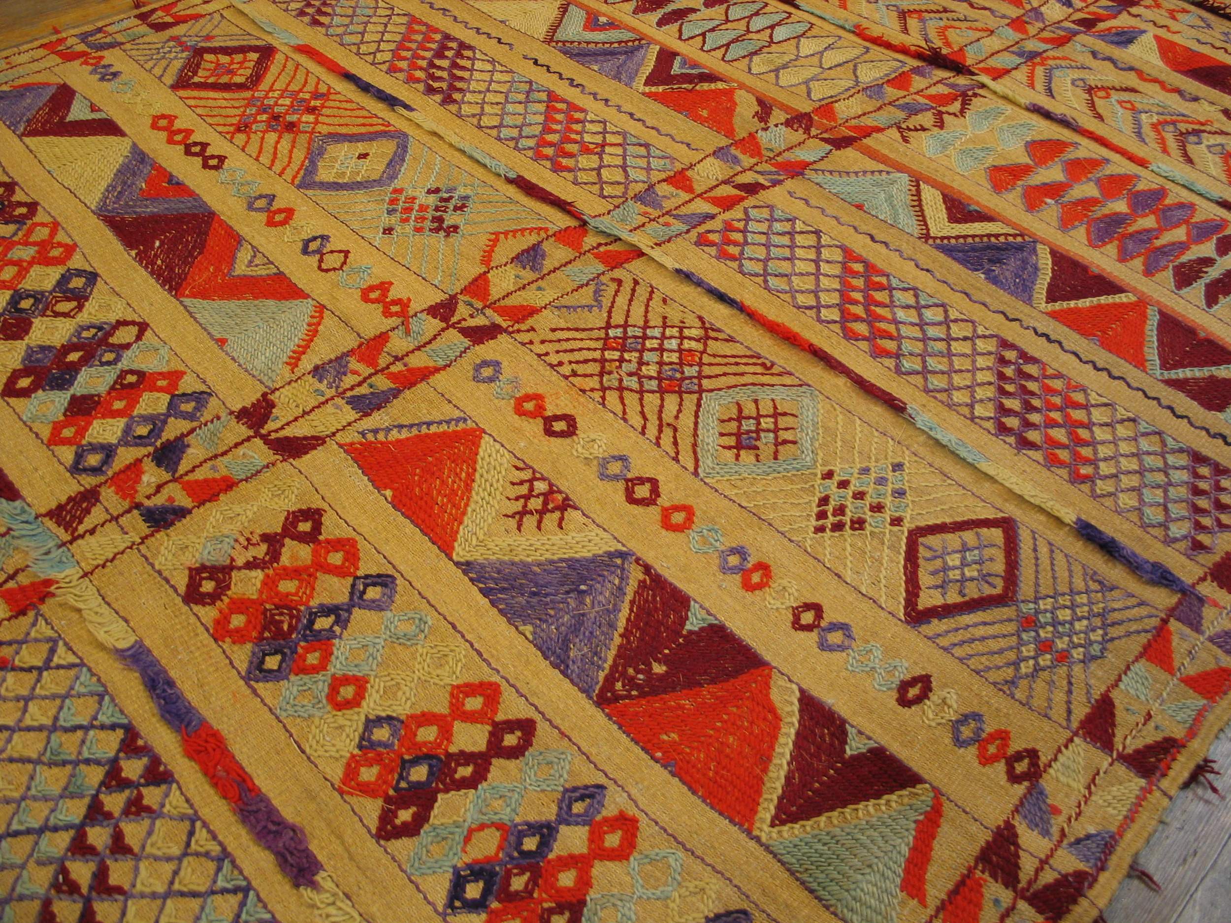 Reflecting the unique weaving traditions of the High Atlas region, this vintage textile captures the essence of Morocco rugs. The unrefined, spontaneous quality of the knotting and embroidery techniques speaks to its authentic, nomadic heritage, offering a powerful statement piece for contemporary interiors.