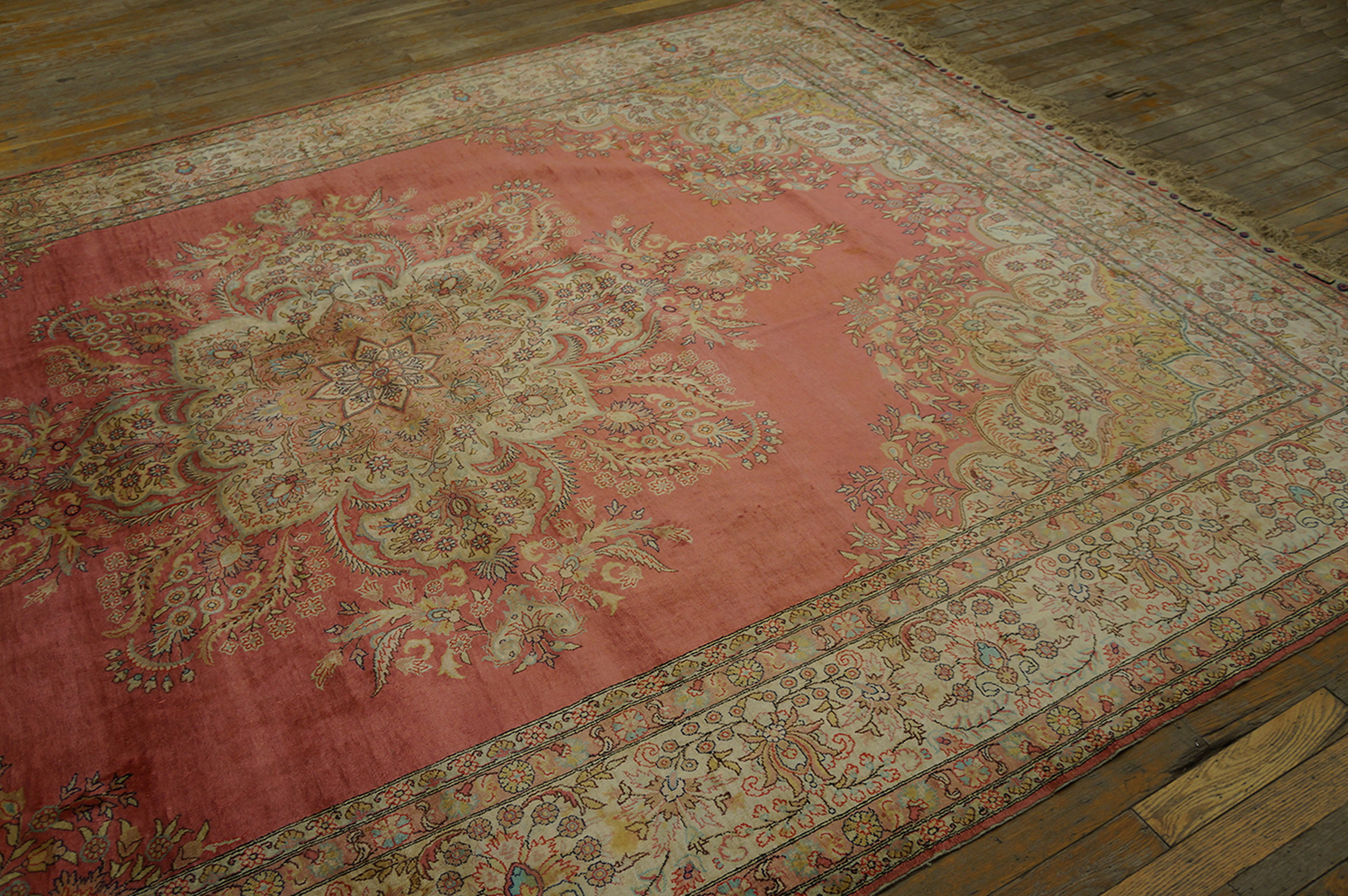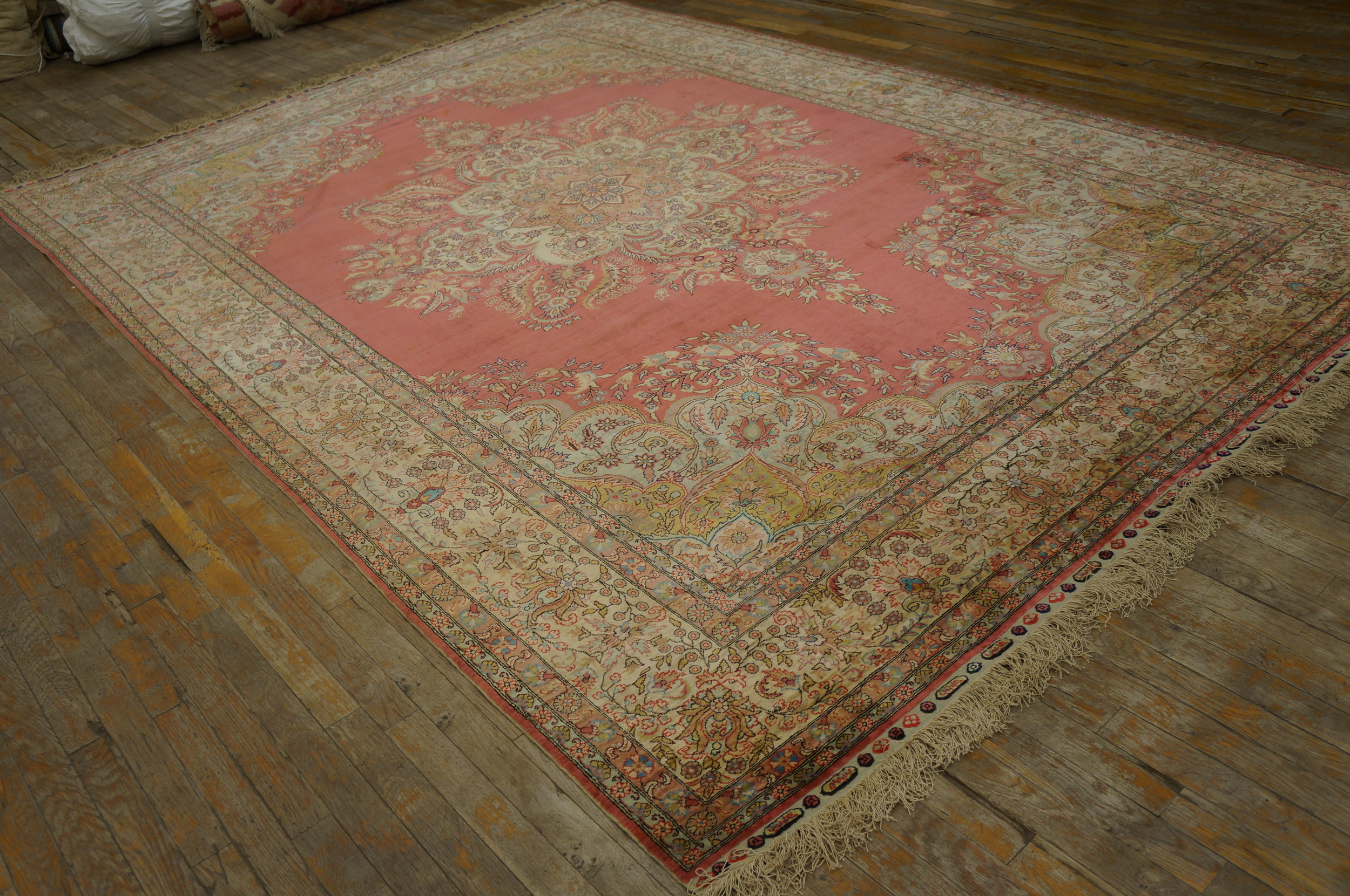 Characteristic of high-quality Kayseri production, the density of the knotting allows for exceptional precision in the rendering of the motifs. Every element, from the delicate vine scrolls to the stylized palmettes, contributes to a dense, harmonious display of traditional floral patterns that fill the main field and multiple guard borders.