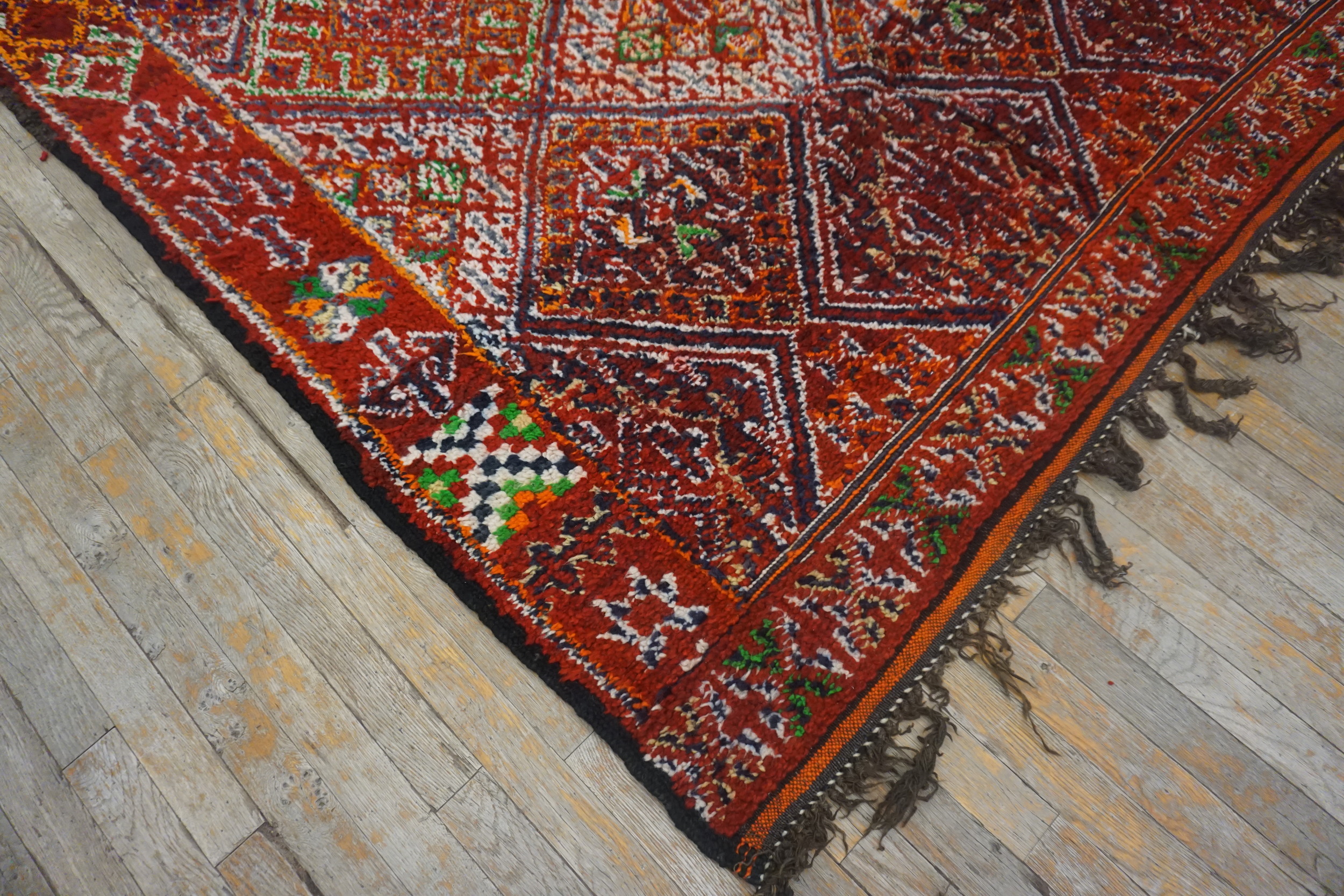 Woven during a period of significant cultural transition in North Africa, this piece captures the enduring artistry of the Rabat weavers. It represents a sophisticated acquisition for collectors seeking authentic, well-preserved antique rugs that blend tribal vitality with urban refinement.