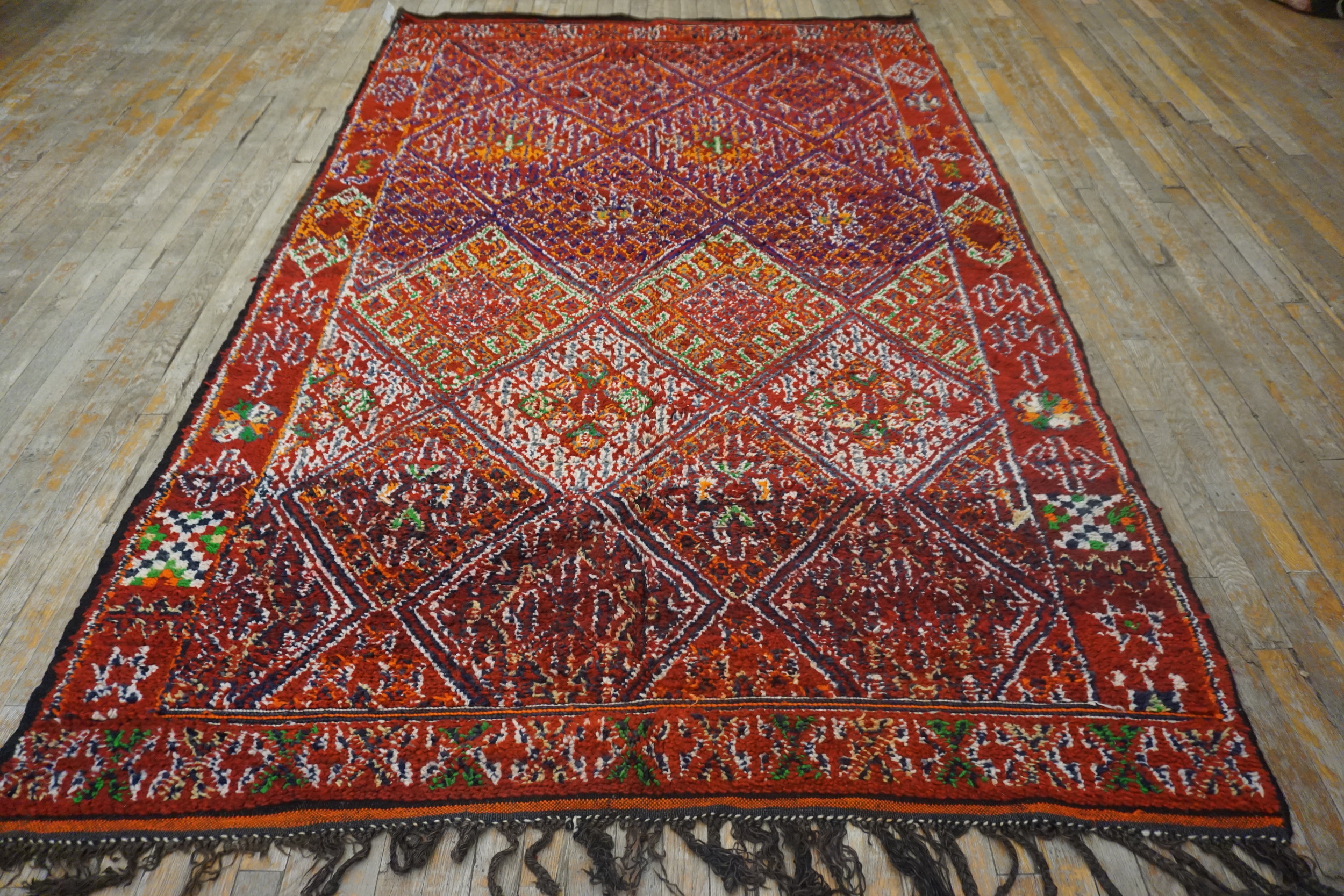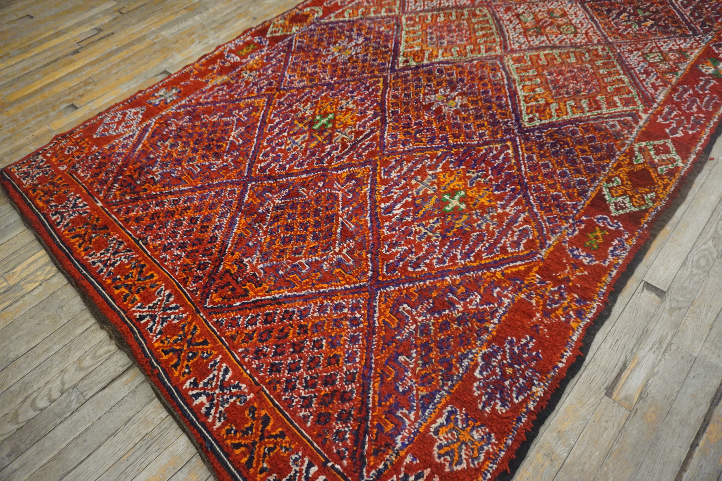 Vintage Moroccan Hand Knotted Purple Color Tribal Wool Pile Berber Carpet, Country of Origin: Morocco, Circa Date: 1940s. This exceptional example of North African weaving tradition hails from the urban workshops of rabat, showcasing the refined knotting techniques typical of the region’s mid-century production.