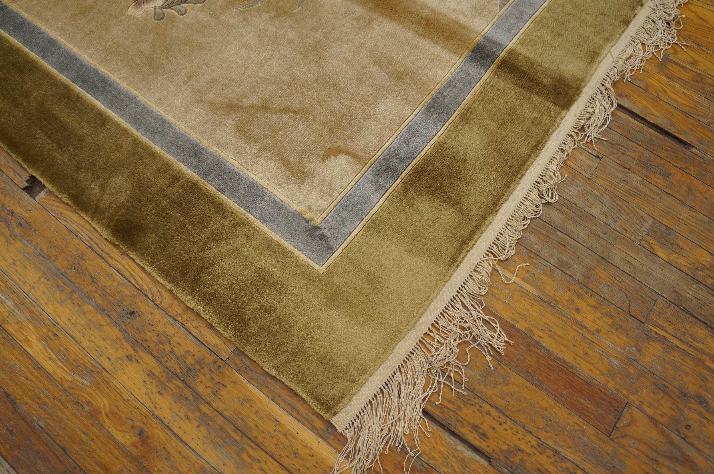 Vintage Chinese – Silk Room Size Silk Rug, Country of Origin: China, Circa Date: 1980s. This exceptional silk weaving presents a magnificent room size rug format, offering a vast, luminous field ideal for anchoring a primary living space. The luxurious silk pile captures light beautifully, showcasing the subtle shift in tones characteristic of high-quality production from this period.