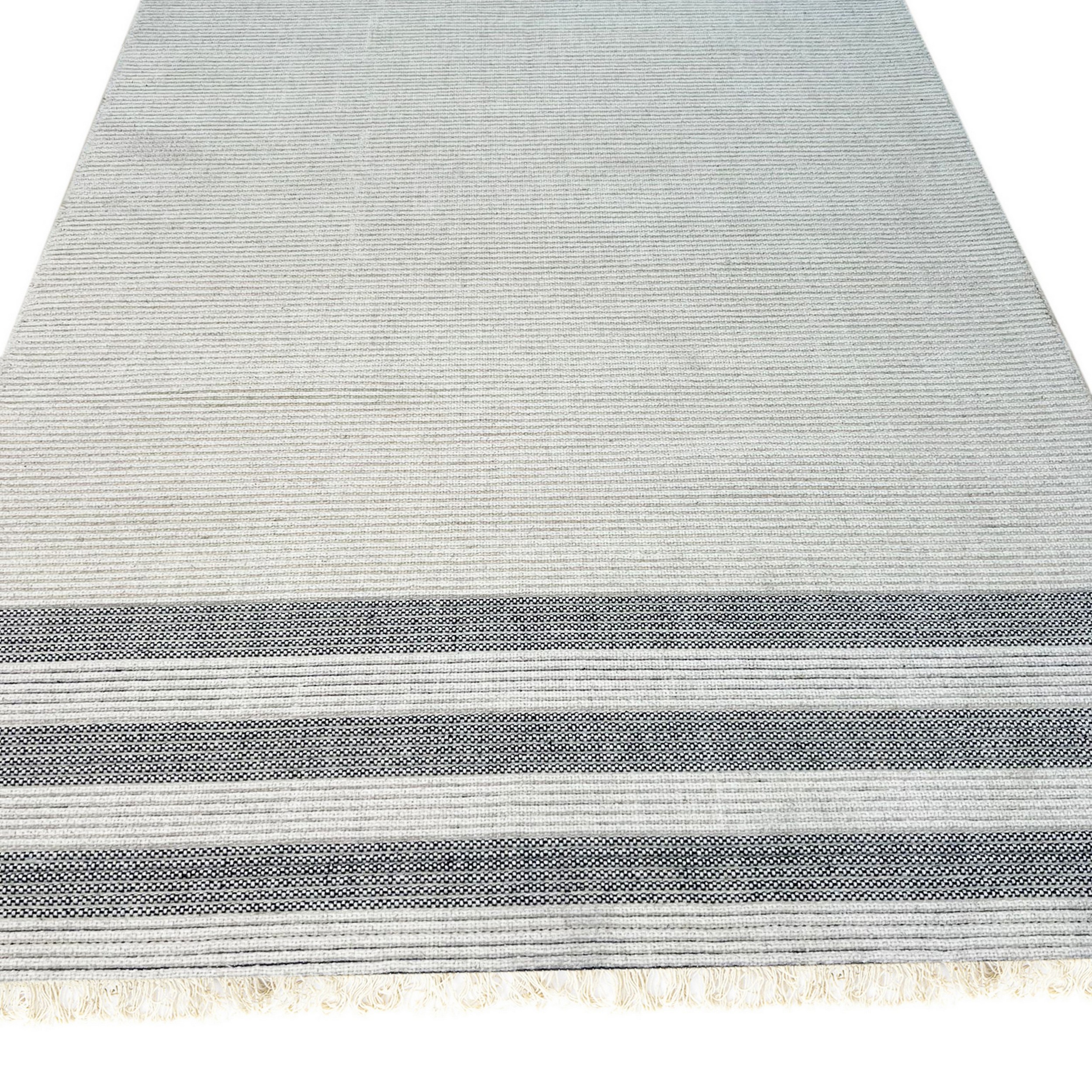 Violet Quinn White Handmade Wool Rug, Country of Origin: India. This piece exemplifies minimalist elegance, utilizing a flat-woven structure to achieve a clean, textural surface. The weaving traditions of Indian rugs are evident in the high quality of the natural fibers and the precise execution of the contemporary design.