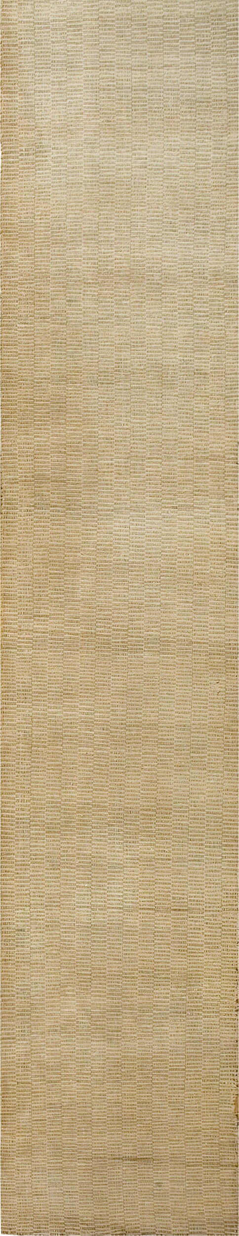 While seemingly simple, the construction employs a sophisticated, repeating bar pattern achieved through the interplay of warp and weft. This subtle, textural design covers the entire field, classifying it as an allover pattern that avoids the need for borders or centralized medallions, allowing the inherent quality of the textile and its nuanced color variations to dominate the composition.