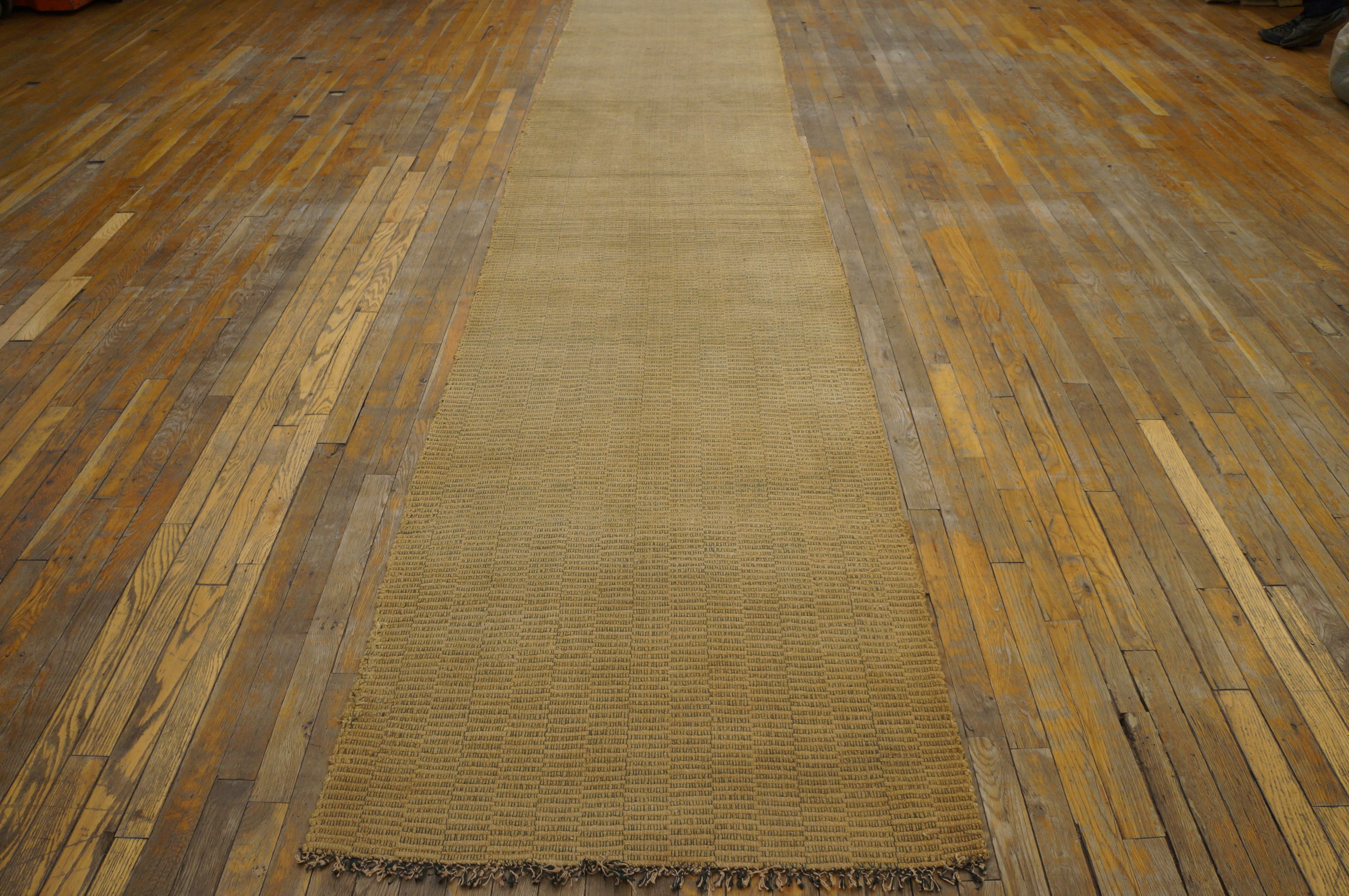 Dating from the 1870s, this textile is not merely floor covering but a significant piece of Americana, demonstrating enduring quality and a timeless, understated elegance that transcends decorative trends. Given its extended dimensions, this oversized flat weave functions beautifully as a long area piece or a grand hallway runner rug, anchoring any space with historical integrity.