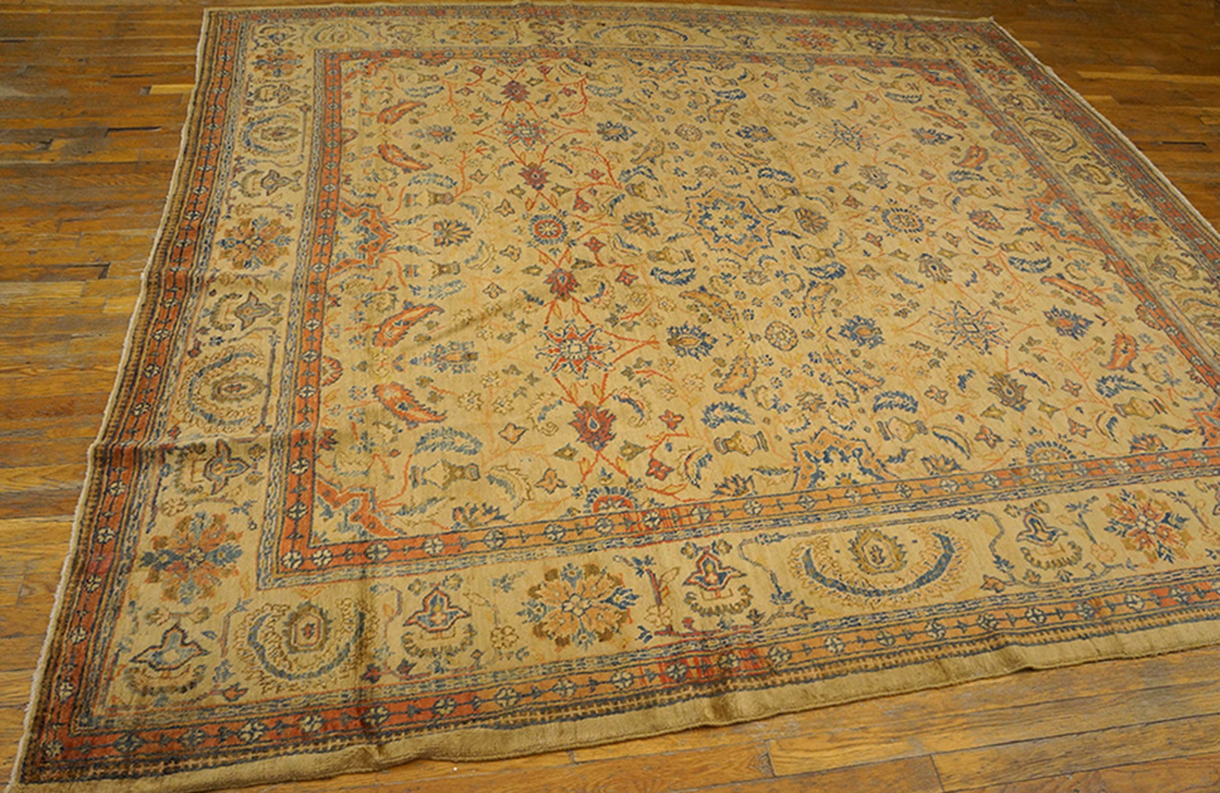 Woven in the 1890s, this piece represents the pinnacle of late Qajar dynasty weaving from Iranian Persian rugs. The generous dimensions place it firmly within the category of room size rugs, making it perfectly suited for defining a major living space or formal dining area while retaining a balanced and harmonious overall design.