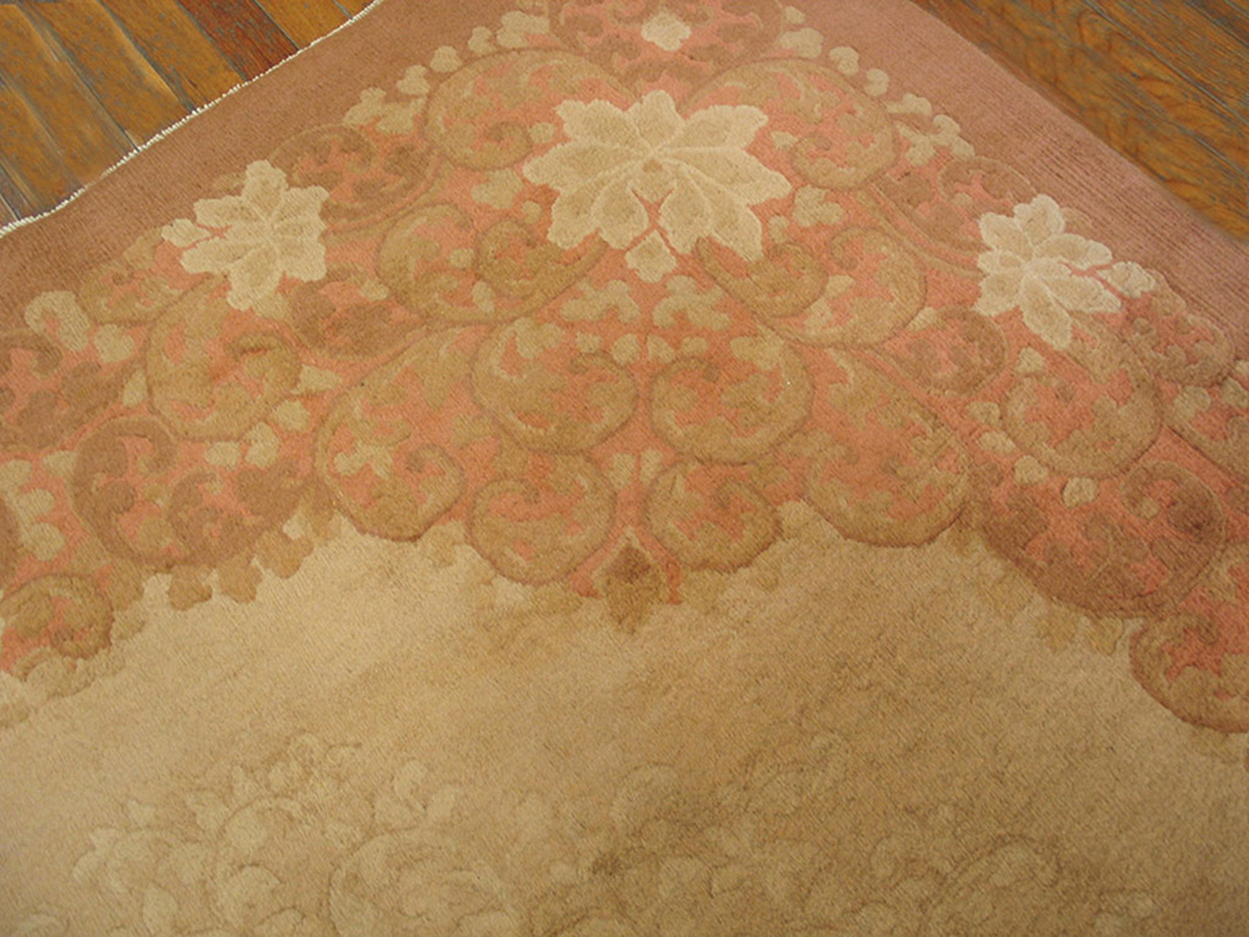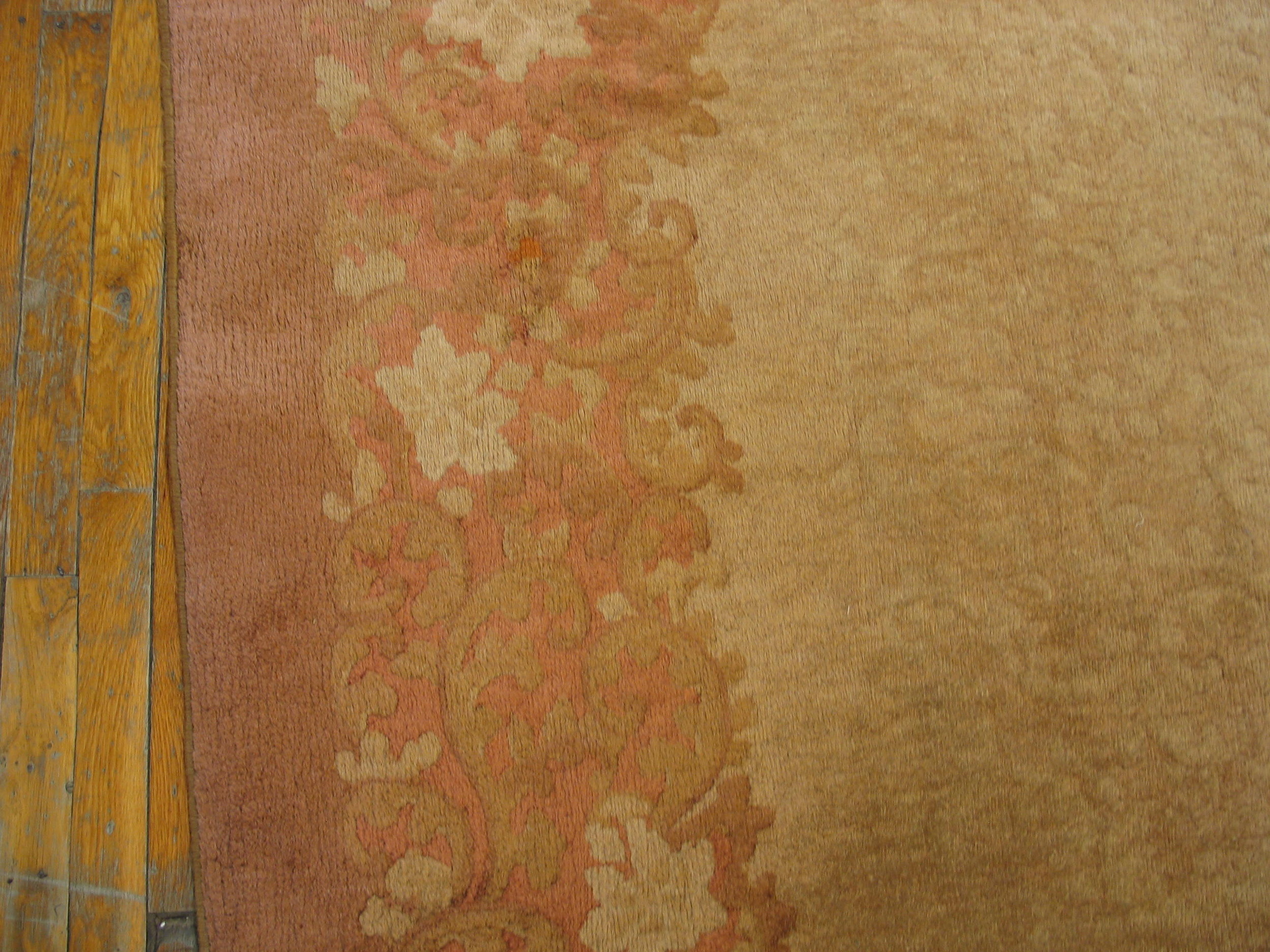 Antique Chinese – Art Deco Chinese Yellow 1920s Yellow Rug, Circa Date: 1920s. This exceptional example of Art Deco Chinese weaving belongs firmly within the category of antique rugs from the Republican Era. The design emphasizes negative space and soft transitions, characteristic of the period’s move away from dense traditional patterning.
