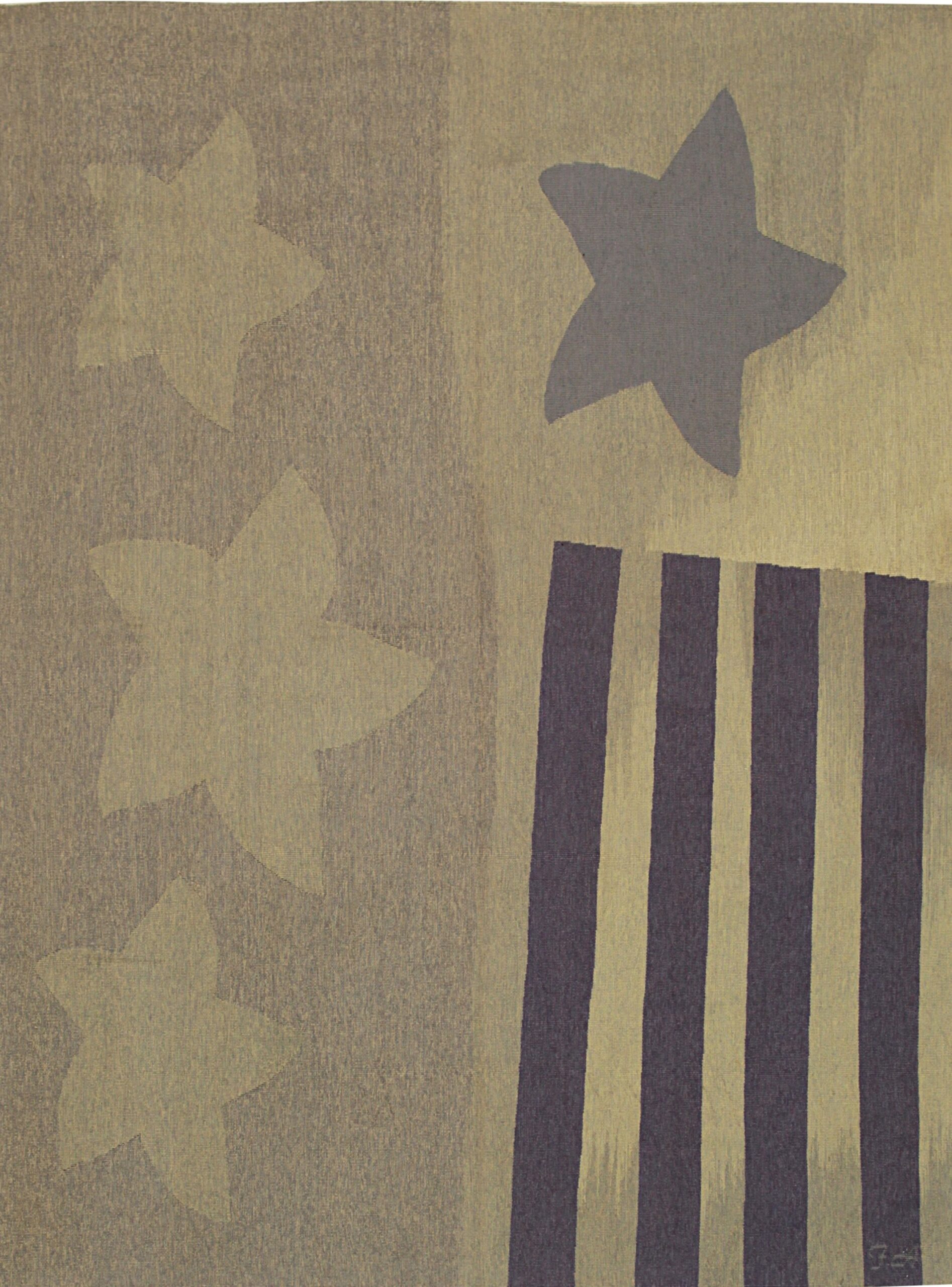 The graphic composition utilizes bold, oversized motifs—including stylized stars and robust vertical striping—divided across the field. This high-contrast, asymmetrical design lends itself well to defining zones in open-plan spaces or adding visual length, particularly when utilized as one of our specialized hallway runner rugs.