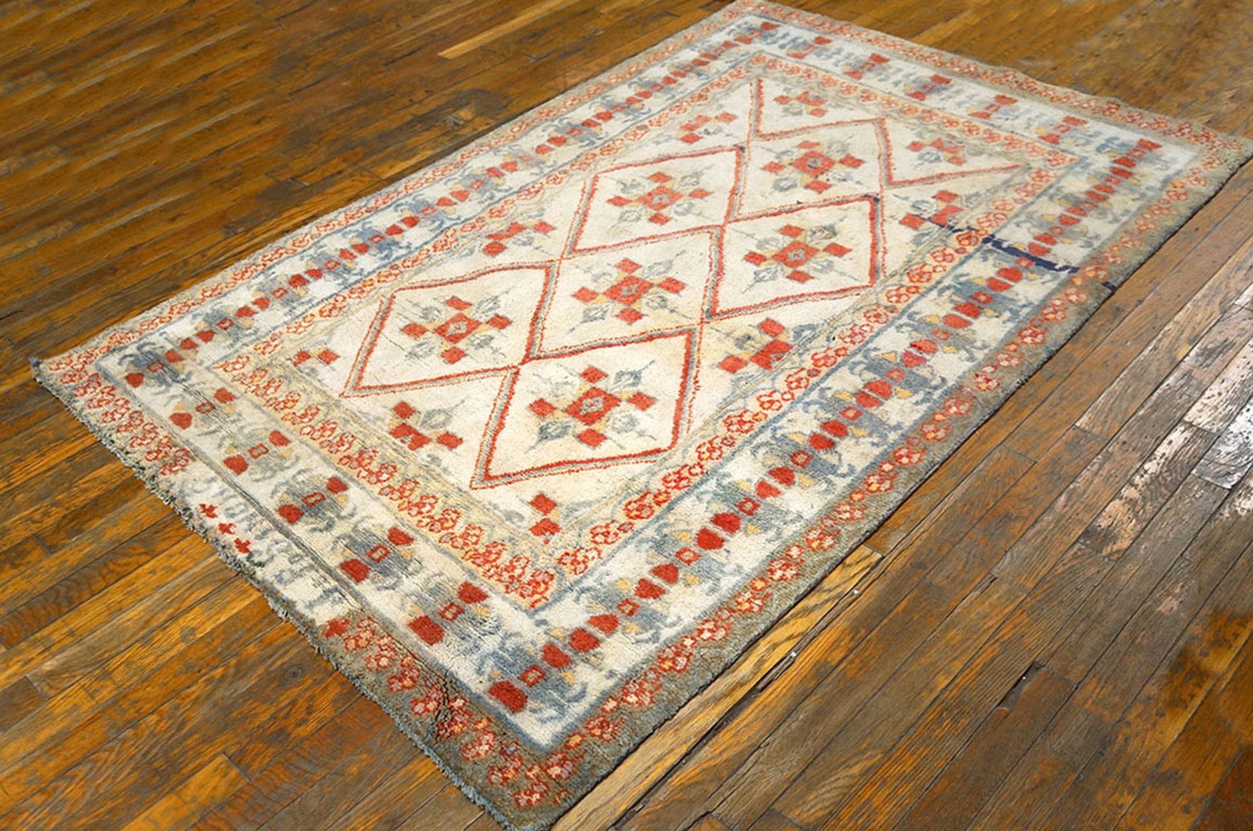 Dating to the 1920s, this piece possesses the desirable patina and gentle wear characteristic of true antique rugs. The age of the carpet has softened the original vibrancy of the secondary colors, lending the reds and blues a sophisticated, muted quality that integrates seamlessly into contemporary or historically-minded interiors.