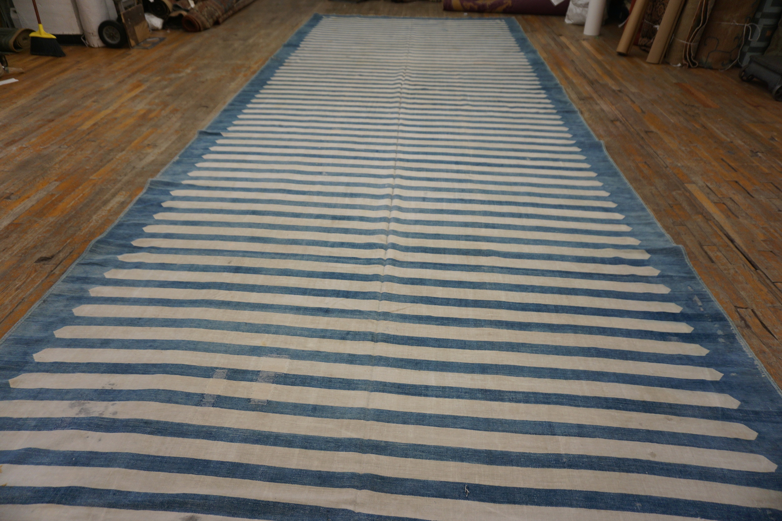 Antique Oversized Dhurrie Indian Knotted Rug, Country of Origin: India, Circa Date: 1930s. This exceptional piece represents a striking departure from traditional antique rugs, showcasing the innovative design capabilities emerging from Indian rugs during the Art Deco era. Its bold, graphic simplicity makes it a timeless statement piece.